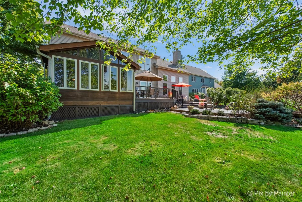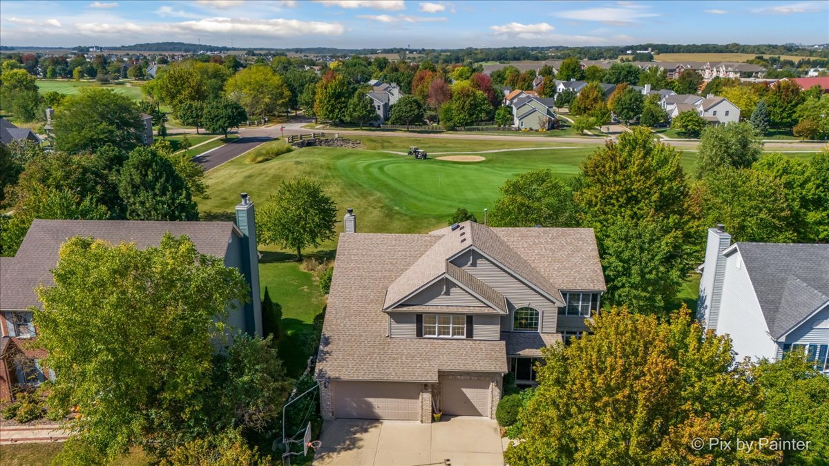 Welcome to 0N776 Curtis Square, an exquisite 4-bedroom, 4.5-bathroom home perfectly situated on a premium lot overlooking the 16th hole of the Mill Creek Golf Course. Designed with timeless craftsmanship and modern upgrades, this residence seamlessly blends comfort, sophistication, and functionality. A grand oak double staircase, six-panel oak doors, and gleaming oak flooring set the stage for the home’s refined character. The gourmet kitchen features granite countertops, matching backsplash, and ample cabinetry, while the 2 story family room is anchored by a brick-surround gas fireplace. An enclosed three-season heated porch provides year-round enjoyment of the serene backyard, complete with a koi pond, TimberTech deck with LED lighting (2025), and lush professional landscaping. The vaulted primary suite offers a peaceful retreat, while every bedroom enjoys the privacy of its own en-suite bathroom. Thoughtful details such as a laundry chute and freshly painted interiors (2025) enhance everyday living. The finished basement is an entertainer’s dream, offering 10-foot ceilings, a versatile flex room, workshop with shelving, a spa-inspired bathroom with shower and sauna, and a soundproofed media area complete with bar, projector, and screen. Significant updates ensure lasting value and peace of mind, including: High-efficiency furnace with humidifier & AC (2025) Pella windows & sliding door (2025) New carpet with upgraded padding (2025) Roof & gutters (2018) and siding (2015) Full concrete driveway and 3-car garage. Located within walking distance to Mill Creek Elementary, with a park and playground just around the corner, this home offers both convenience and community. With its premium golf course views, exceptional amenities, and timeless design, 0N776 Curtis Square is more than a home-it’s a lifestyle.