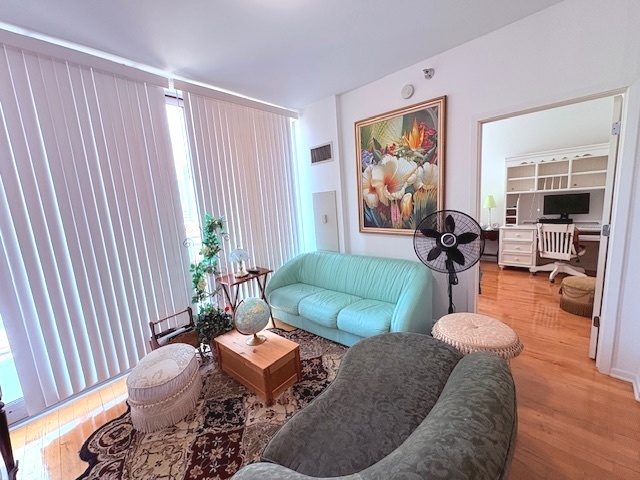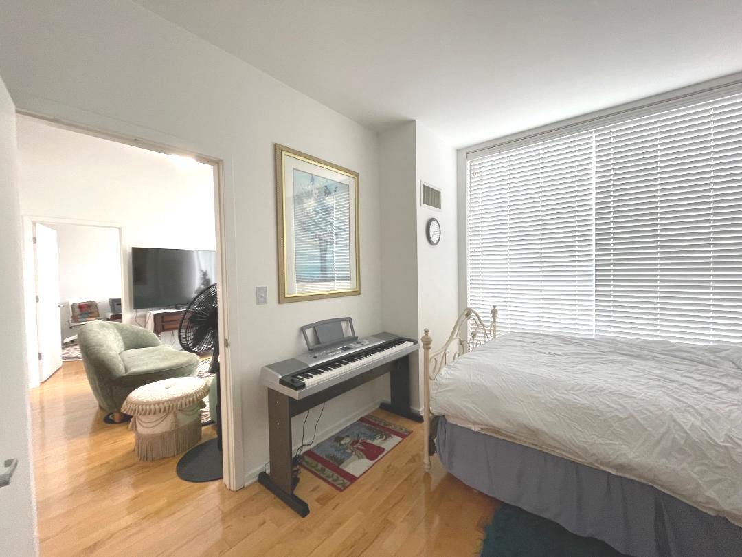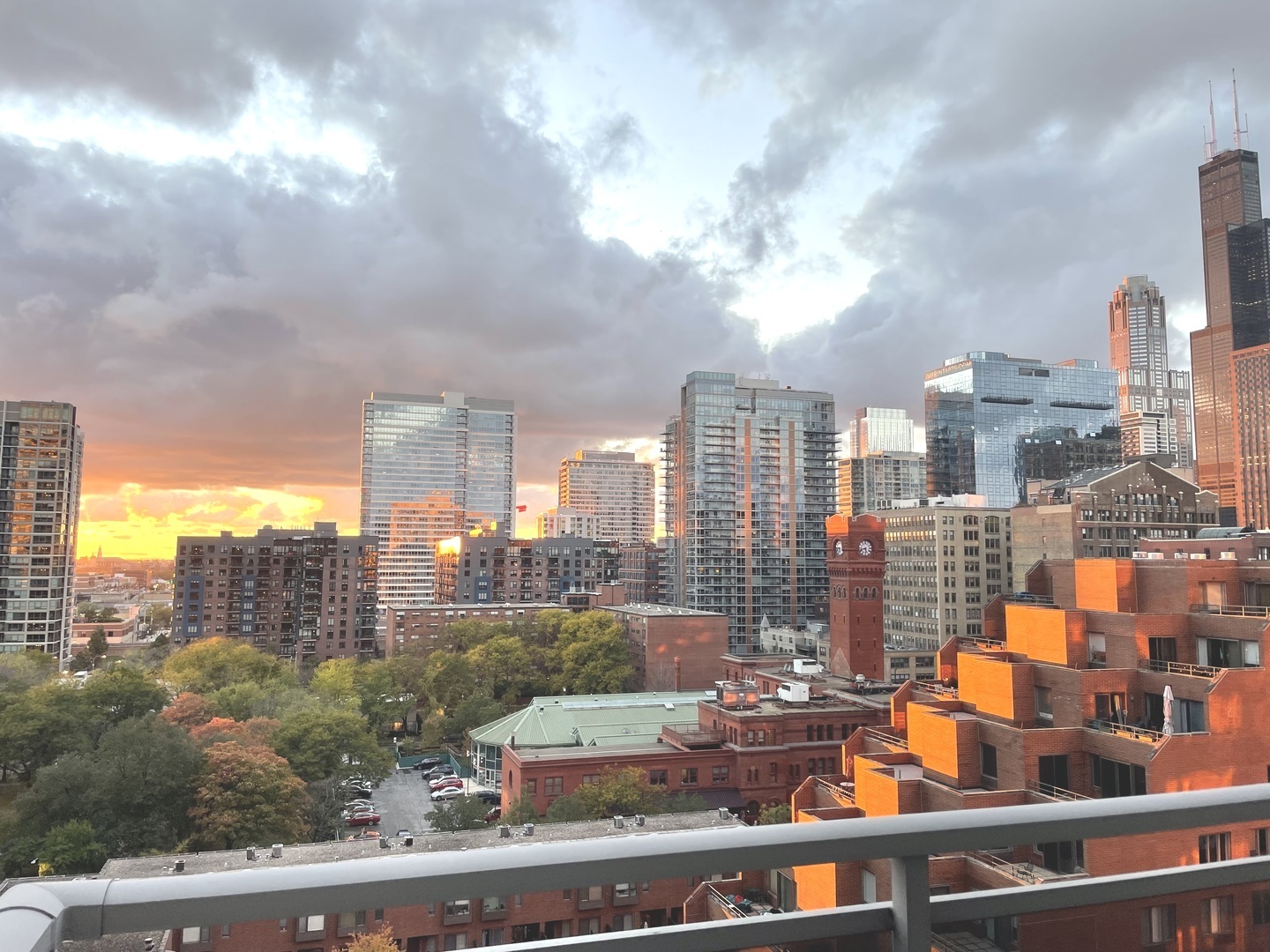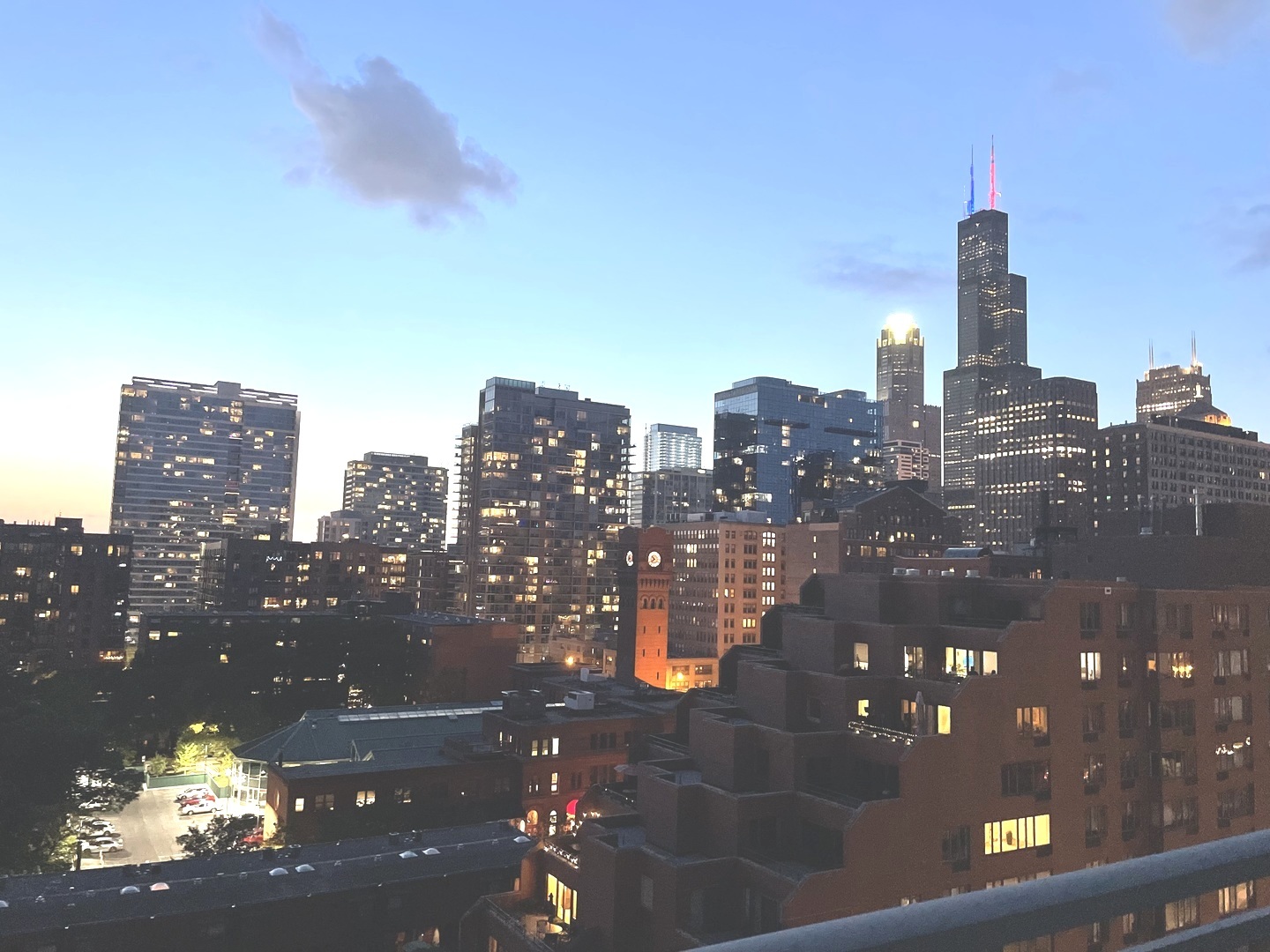 MOTIVATED SELLER !! Top floor penthouse w/Western City views & amazing City skyline (Willis tower, etc.) from both bedrooms & balcony w/ tons of natural light! Split floor plan (2 masters with private full bath and two closets in each bedroom) & open combo living/dining. Newer stove, refrigerator. Floor to ceiling windows in all rooms. Hardwood floors throughout. In-unit Washer and Dryer. Large balcony – perfect to watch sunsets. Take in the Chicago skyline. Few blocks from the lake & expressways. Walk to lake, museums, transportation, colleges, shops & restaurants. Investor-friendly building. Unit has a 70″ Smart HDTV wall-mounted in the living room included. Deeded parking space included in the price. Great parking spot on 8th floor easy access in & out. Owner is licensed real estate broker.