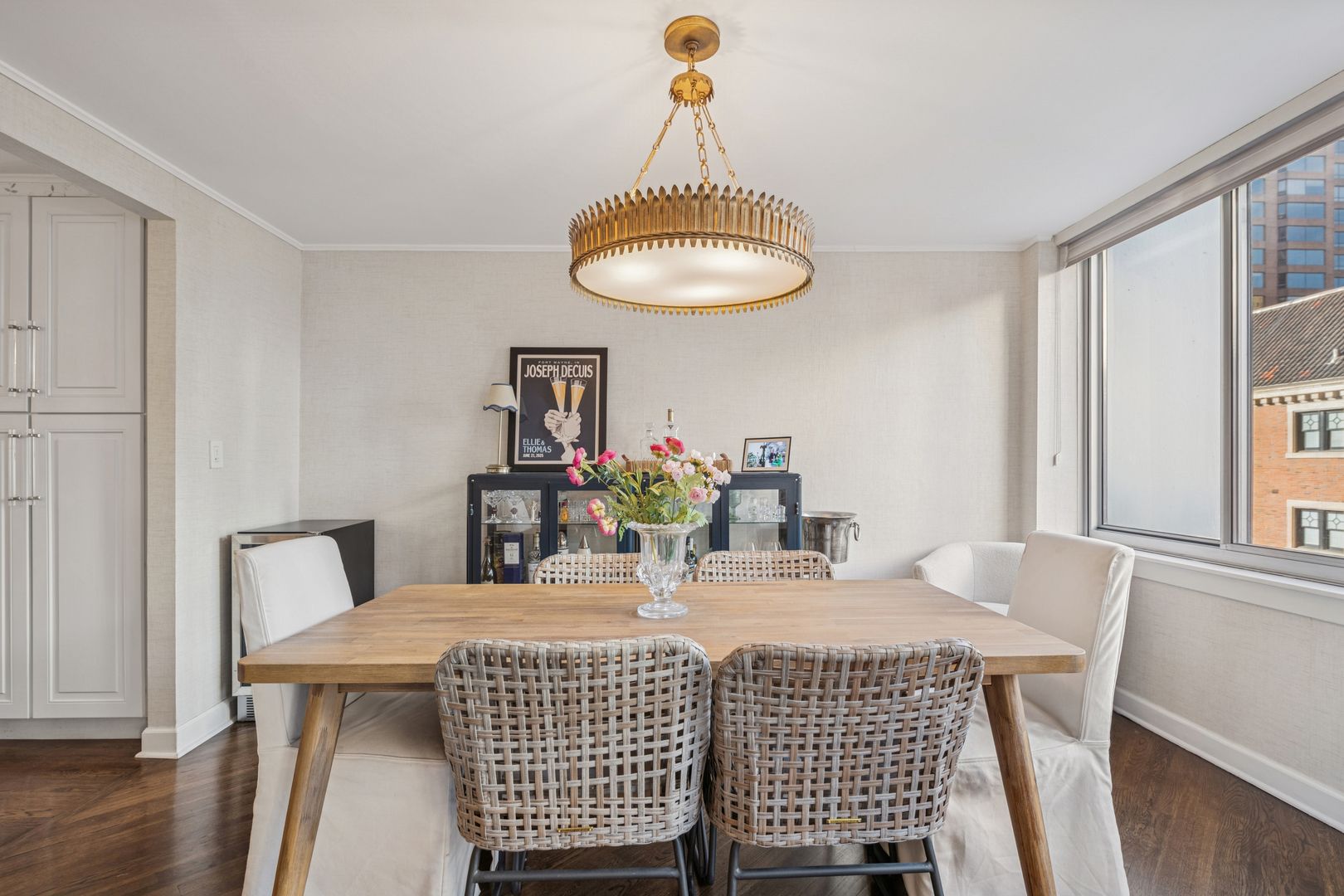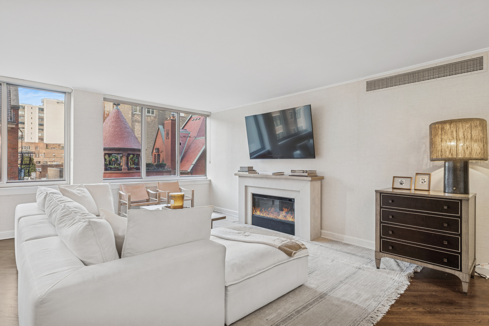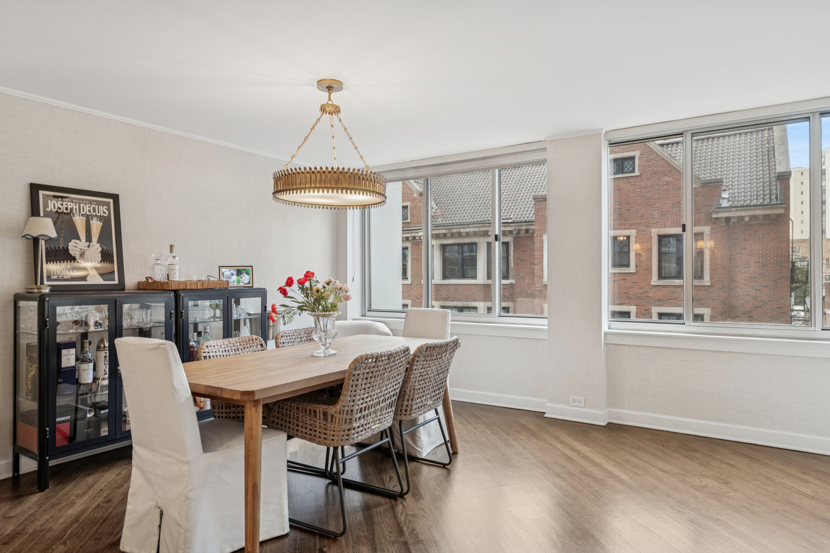 Meticulously Cared for Gold Coast Residence in a highly coveted subset north of Division and south of the park amidst significant brownstones and vintage era, pre-war buildings, one block to Lake Michigan. Boutique style high rise environment features a total of 78 units with just four units per floor, a semi private vestibule off the elevator on each floor shared between two neighbors. Residence 4B with a comprehensive and cohesive renovation completed in 2022 features a double door entrance way, real “tongue and groove” oak hardwood floors in a light walnut stain, beautiful and consistent millwork, wainscoting, crown moldings and baseboards fitting for this home throughout, solid core raised panel doors. Open kitchen concept with large square peninsula for seating and gathering, 1.25″ straight edge quartz counters, abundant cabinetry accentuating a Classic Contemporary style throughout Residence 4B. White all wood cabinetry, custom linear hardware, pantry, open shelving for display/storage, abundant counter space for cook prep and food set up for the holidays, single, stainless steel under mount sink, custom sconces above, stainless steel appliances including French Door refrigerator, smooth top push in range, microwave above with micro-hood, dishwasher with incognito cabinet front. Soffitted lighting. Sumptuous living space with separate dining and living spaces. Electric fireplace in living room. Hunter Douglas window shades. Windows slide open, side to side with ease for fresh air and overlooking vintage and pre-war Gold Coast structures of architectural significance. Very quiet one way Street. Primary bedroom suite with closet built-ins, beaux primary bathroom features furniture piece vanity, custom edged Statuary marble counter, under mount ivory sink, brushed nickel plumbing fixtures, custom mirror and lighting. Oversized shower with pattered marble basin, large format floor to ceiling tiles, sliding glass door. Second bathroom also features furniture piece vanity, plenty of drawer storage, statuary marble counter, open glass shelving, tub/shower combined. In unit, washer and dryer 2 in 1 (90 minute total wash and dry cycle time) with storage shelving above. Linen closet and front hall closet. Storage cage on Mezzanine level. Additional custom details include Visual Comfort light fixtures, “Leslie” chandelier, Phillip Jeffries grass cloth wall treatment, Ashley Stark/Scala wall coverings in primary bedroom. Parking is onsite,garage valet is $305 per month and outdoor surface parking is $265 per month. Triple AAA location in the essence of the Gold Coast where walking to the world in Chicago is made easy; restaurants, nightlife, cafes, Lake Michigan, Lincoln Park at North Avenue, Oak Street Beach, finest shopping district in the city at the top of the Magnificent Mile and Oak and Rush are steps from a very classic, timeless building lobby with 24 hour doorman. Onsite property manager, engineer and maintenance staff. This smartly designed and recently FULLY renovated two bedroom and two bathroom with no expense spared will not last long. One of very few units in inventory that only require a buyer to pack their bags and move right in.