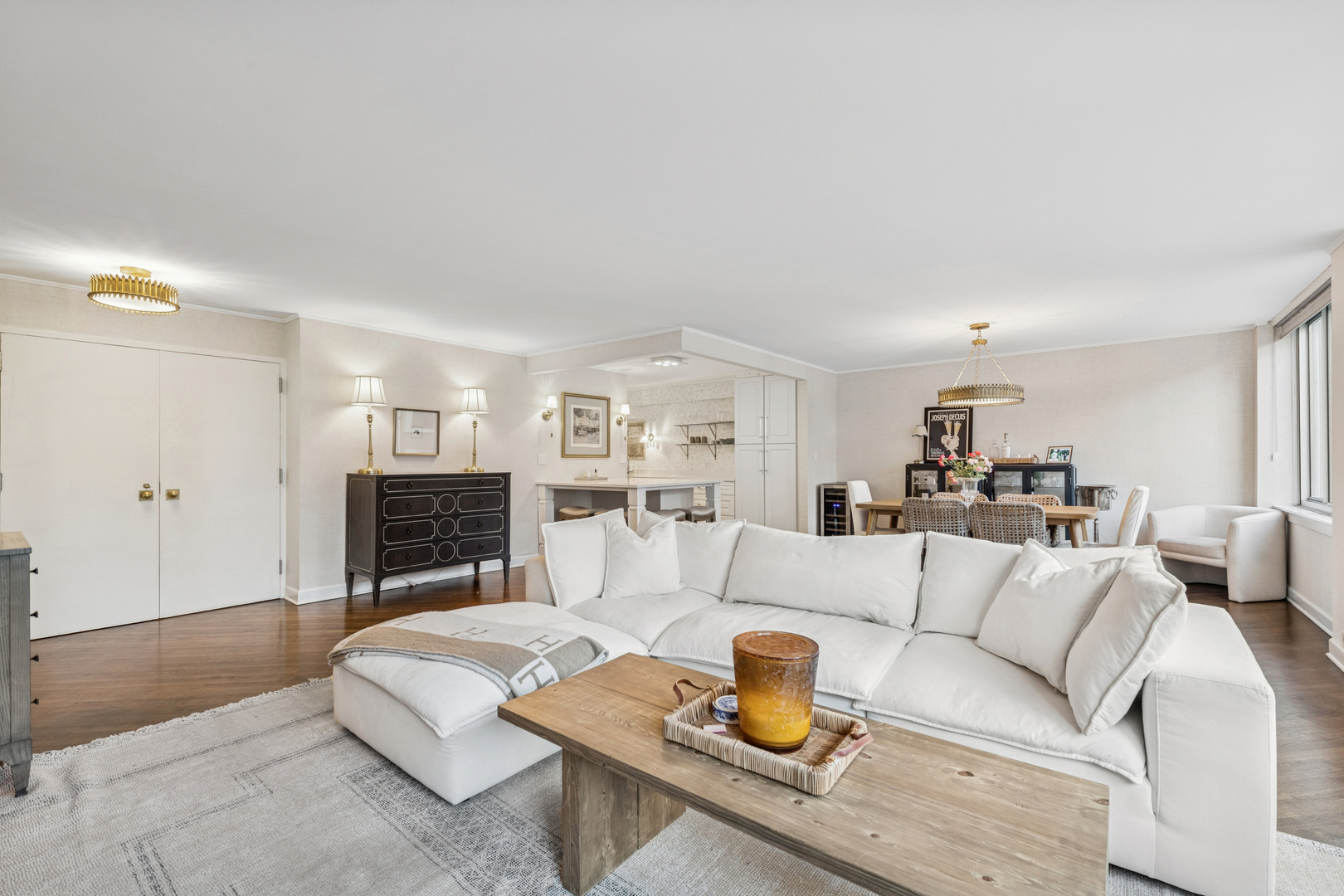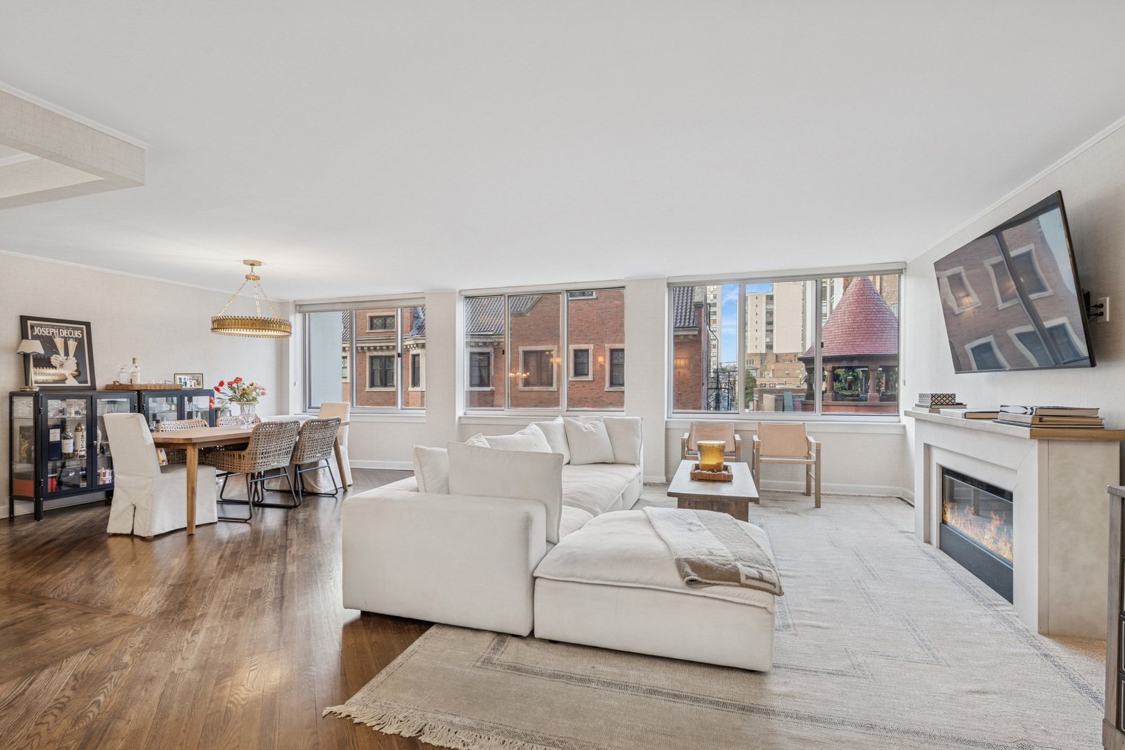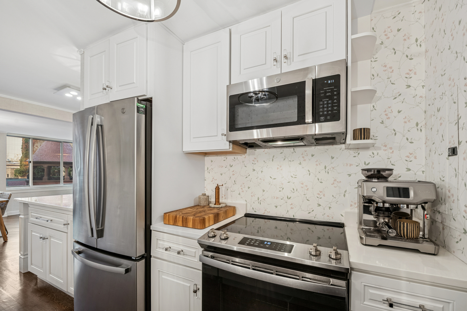 Meticulously Cared for Gold Coast Residence in a highly coveted subset north of Division and south of the park amidst significant brownstones and vintage era, pre-war buildings, one block to Lake Michigan. Boutique style high rise environment features a total of 78 units with just four units per floor, a semi private vestibule off the elevator on each floor shared between two neighbors. Residence 4B with a comprehensive and cohesive renovation completed in 2022 features a double door entrance way, real “tongue and groove” oak hardwood floors in a light walnut stain, beautiful and consistent millwork, wainscoting, crown moldings and baseboards fitting for this home throughout, solid core raised panel doors. Open kitchen concept with large square peninsula for seating and gathering, 1.25″ straight edge quartz counters, abundant cabinetry accentuating a Classic Contemporary style throughout Residence 4B. White all wood cabinetry, custom linear hardware, pantry, open shelving for display/storage, abundant counter space for cook prep and food set up for the holidays, single, stainless steel under mount sink, custom sconces above, stainless steel appliances including French Door refrigerator, smooth top push in range, microwave above with micro-hood, dishwasher with incognito cabinet front. Soffitted lighting. Sumptuous living space with separate dining and living spaces. Electric fireplace in living room. Hunter Douglas window shades. Windows slide open, side to side with ease for fresh air and overlooking vintage and pre-war Gold Coast structures of architectural significance. Very quiet one way Street. Primary bedroom suite with closet built-ins, beaux primary bathroom features furniture piece vanity, custom edged Statuary marble counter, under mount ivory sink, brushed nickel plumbing fixtures, custom mirror and lighting. Oversized shower with pattered marble basin, large format floor to ceiling tiles, sliding glass door. Second bathroom also features furniture piece vanity, plenty of drawer storage, statuary marble counter, open glass shelving, tub/shower combined. In unit, washer and dryer 2 in 1 (90 minute total wash and dry cycle time) with storage shelving above. Linen closet and front hall closet. Storage cage on Mezzanine level. Additional custom details include Visual Comfort light fixtures, “Leslie” chandelier, Phillip Jeffries grass cloth wall treatment, Ashley Stark/Scala wall coverings in primary bedroom. Parking is onsite,garage valet is $305 per month and outdoor surface parking is $265 per month. Triple AAA location in the essence of the Gold Coast where walking to the world in Chicago is made easy; restaurants, nightlife, cafes, Lake Michigan, Lincoln Park at North Avenue, Oak Street Beach, finest shopping district in the city at the top of the Magnificent Mile and Oak and Rush are steps from a very classic, timeless building lobby with 24 hour doorman. Onsite property manager, engineer and maintenance staff. This smartly designed and recently FULLY renovated two bedroom and two bathroom with no expense spared will not last long. One of very few units in inventory that only require a buyer to pack their bags and move right in.
