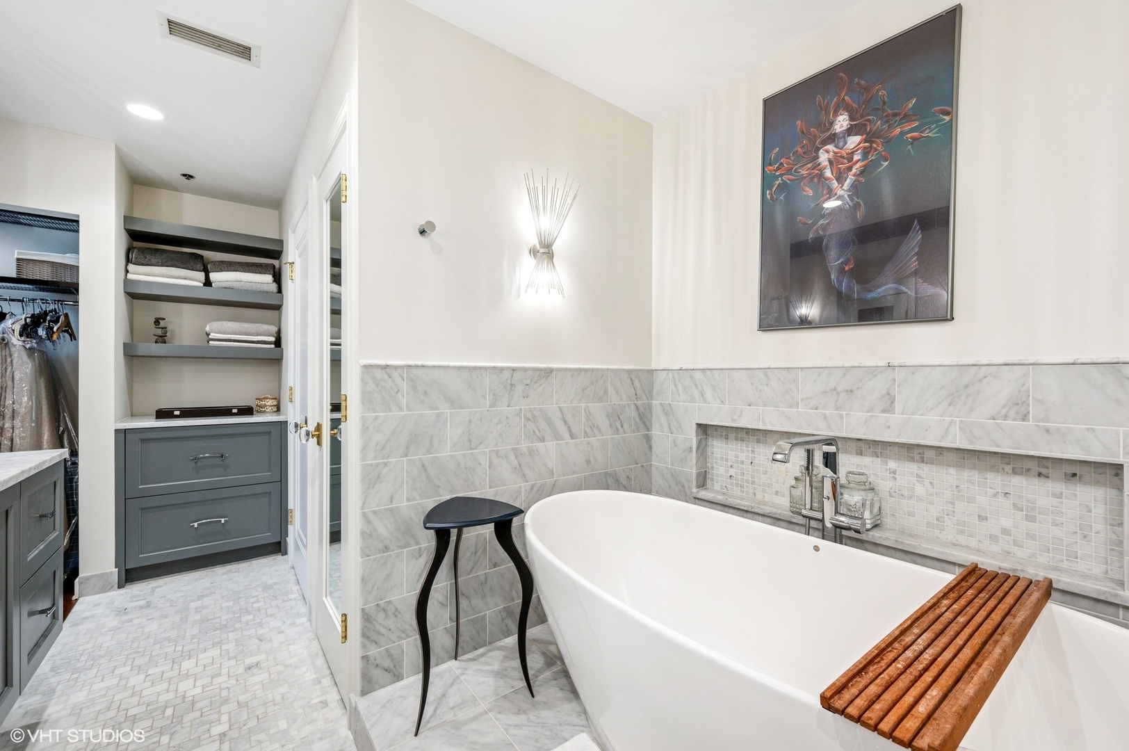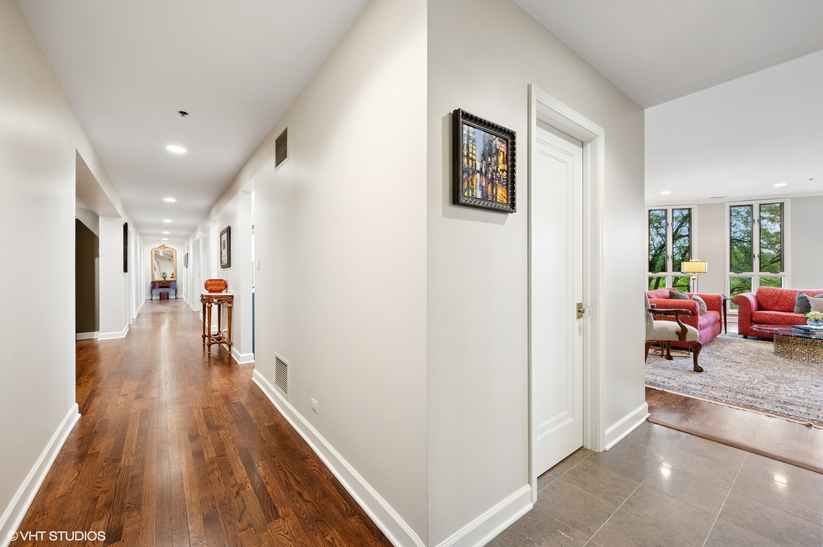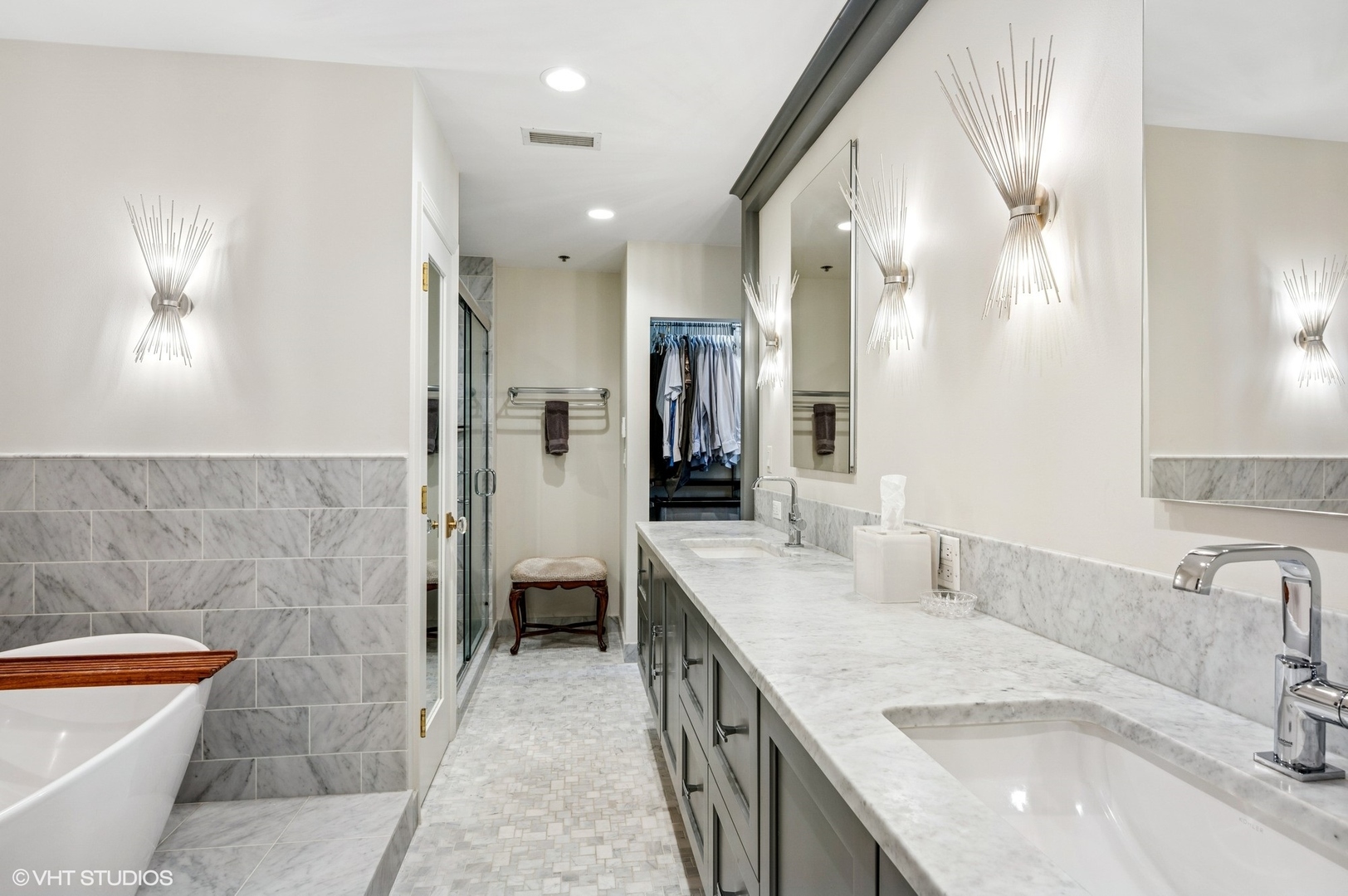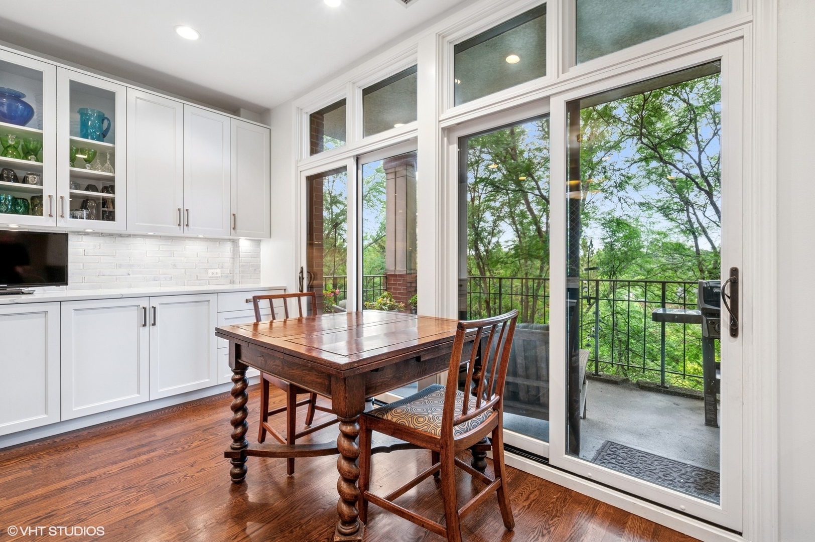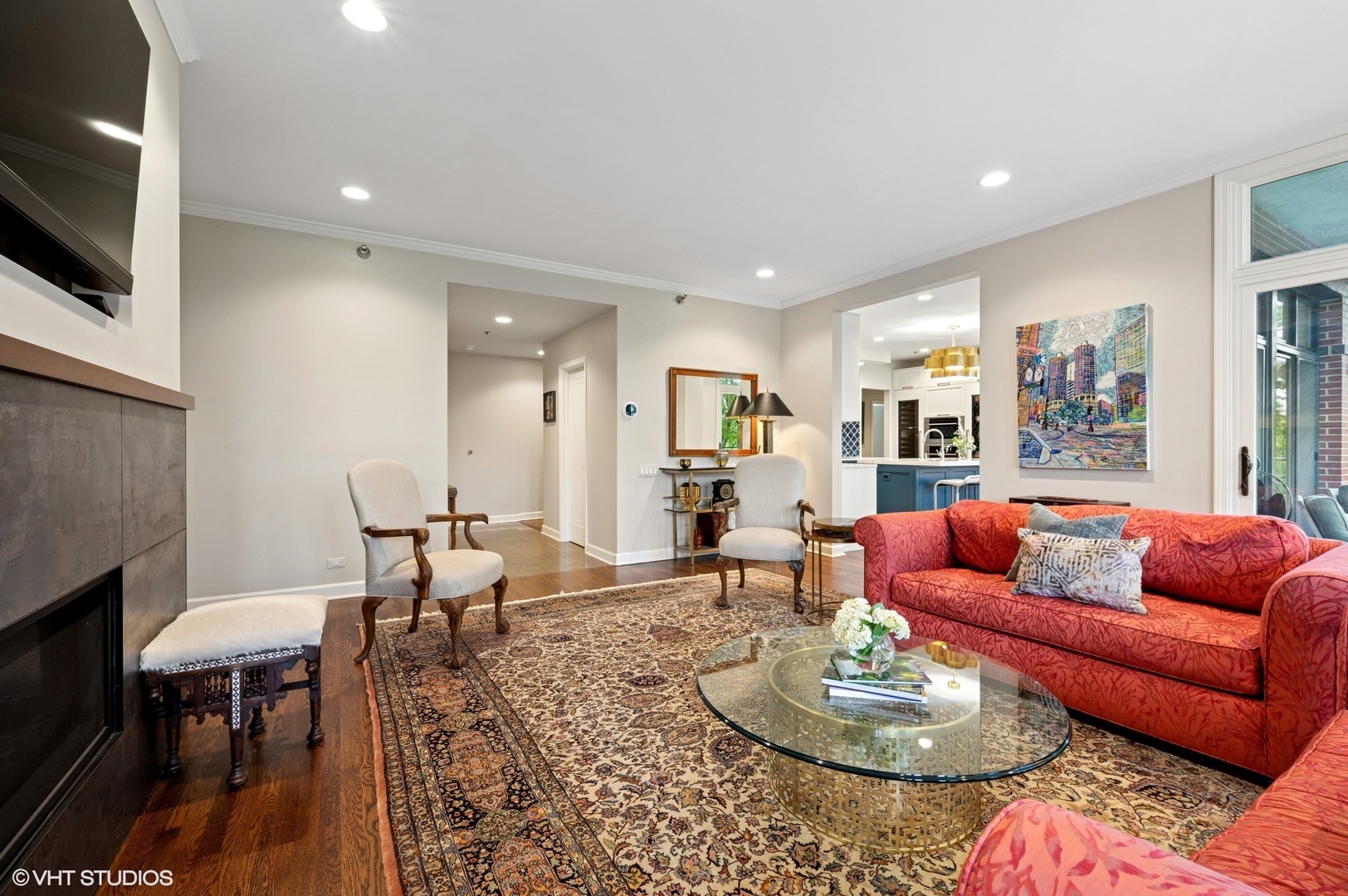 Absolutely stunning and fully renovated 3-bedroom + office, 2.5-bath top-floor condo in a prime River Forest boutique building. Nothing has been left undone-every inch of this home has been thoughtfully customized by the current owners with the highest attention to detail. You’ll love the ideal flow of this spacious floor plan, featuring 9-foot ceilings, beautiful hardwood floors, and oversized windows that fill the home with natural light. The welcoming foyer includes a large walk-in closet and a stylish half bath with a custom stone vanity. The expansive living room overlooks tree tops and a peaceful courtyard, anchored by a striking custom-built fireplace and one of three sliding doors that lead to your private balcony. The true chef’s kitchen is a showstopper with handcrafted cabinetry, quartz countertops, designer tile backsplash, and top-tier Sub-Zero, Wolf, and Bosch appliances. Enjoy casual dining at the eat-in island or a full table setup with two more sliding doors that open to the balcony. A flexible floor plan allows for a formal dining room or additional lounge space, while each bedroom offers excellent closet storage, custom window treatments, and designer lighting. The office can easily serve as a fourth bedroom or den. The serene primary suite offers a true retreat with fully outfitted custom walk-in closets and a luxurious spa-like bath, complete with heated floors, marble finishes, a soaking tub, large walk-in shower, and a double vanity with ample storage plus 2 linen closets! Large utility room with side by side washer/dryer, sink, additional storage! Additional highlights include heated garage tandem parking space and storage unit. All of this in a walk-to-everything location-this is River Forest living at its best. Don’t miss this rare opportunity!