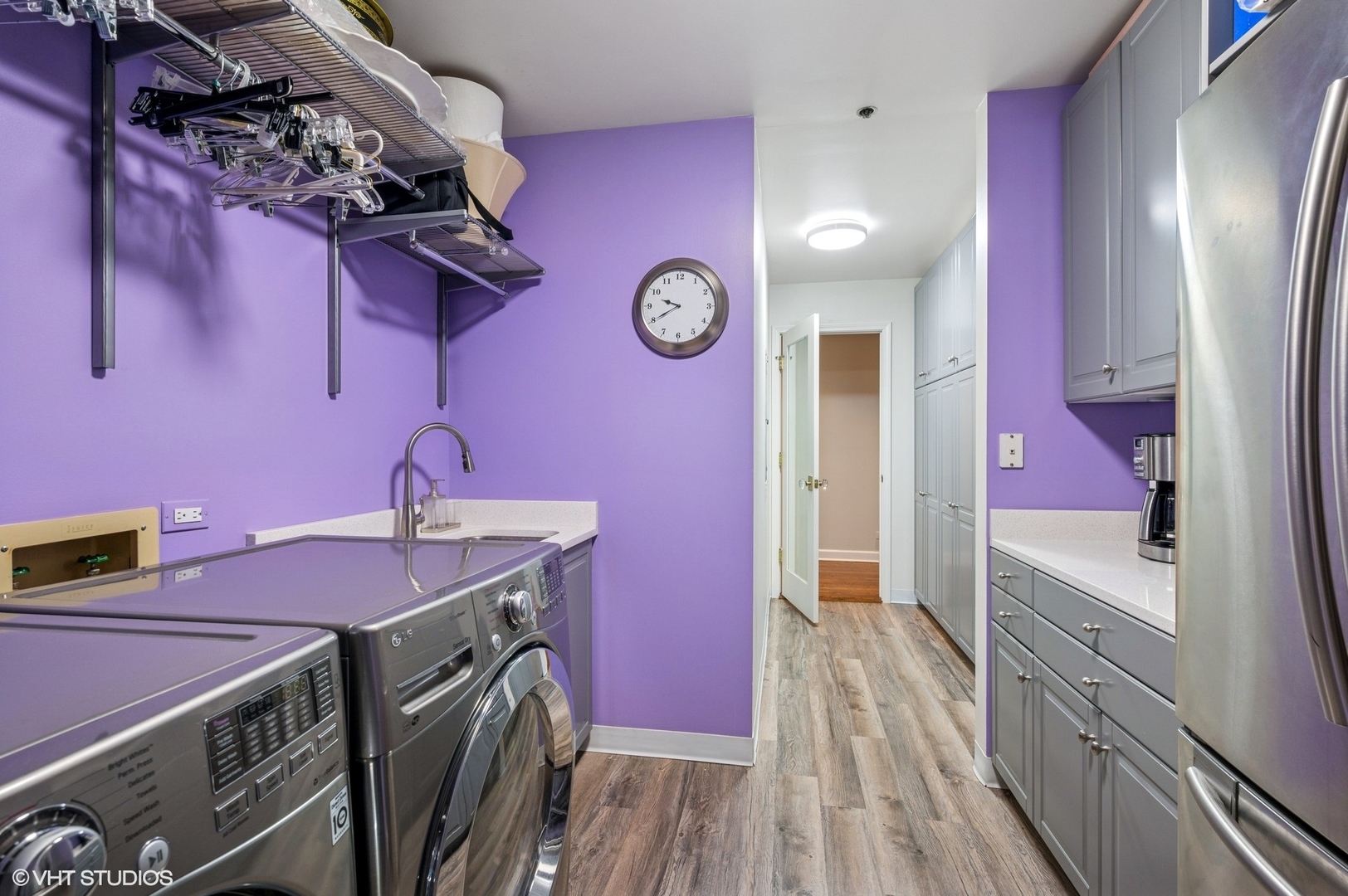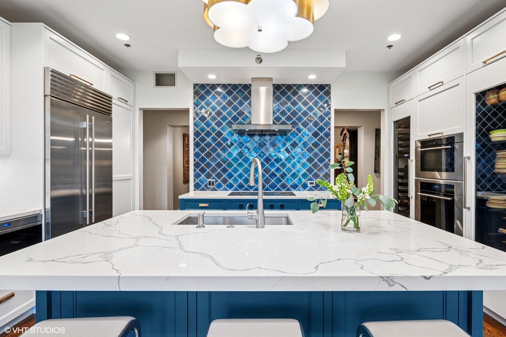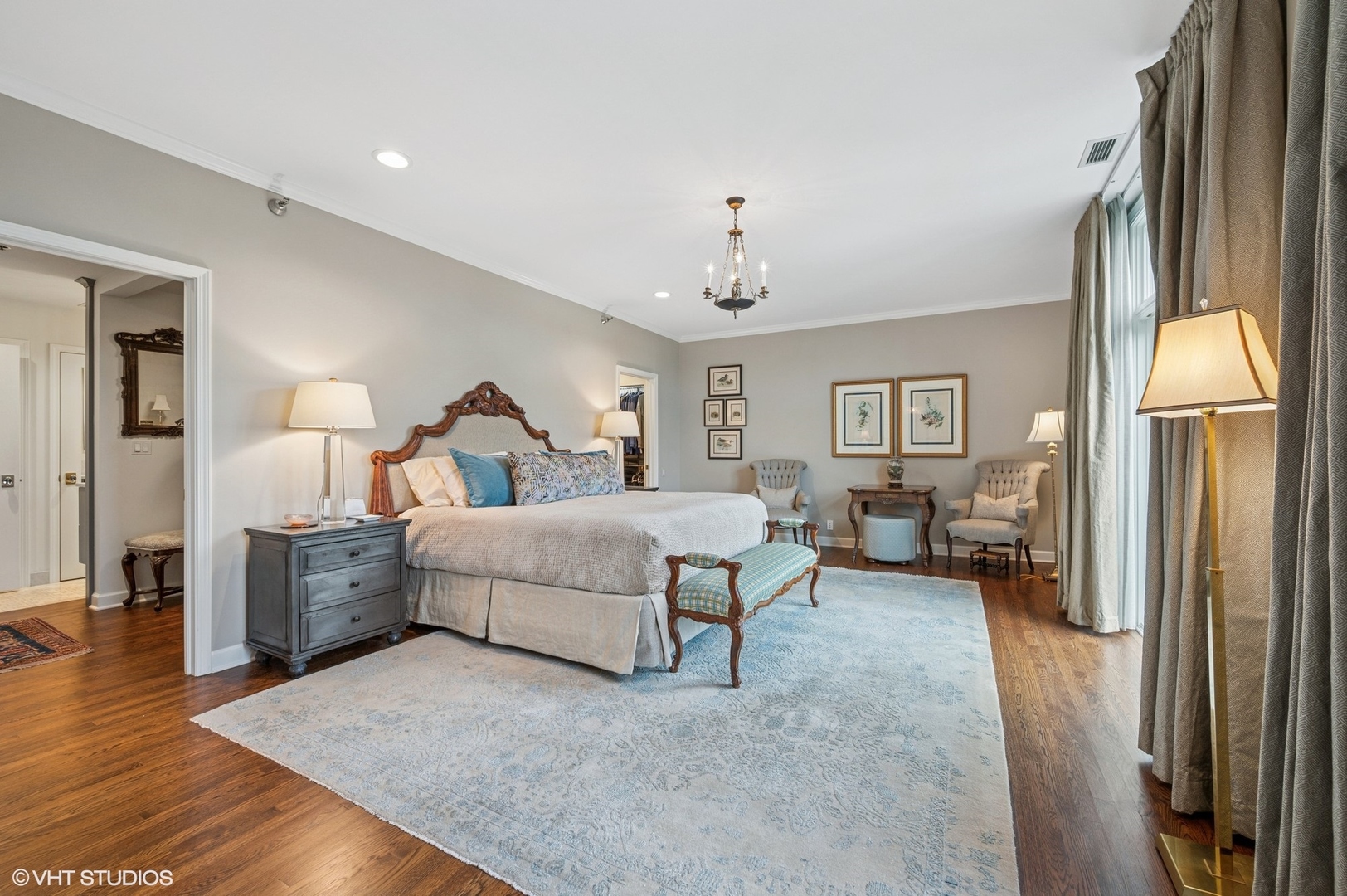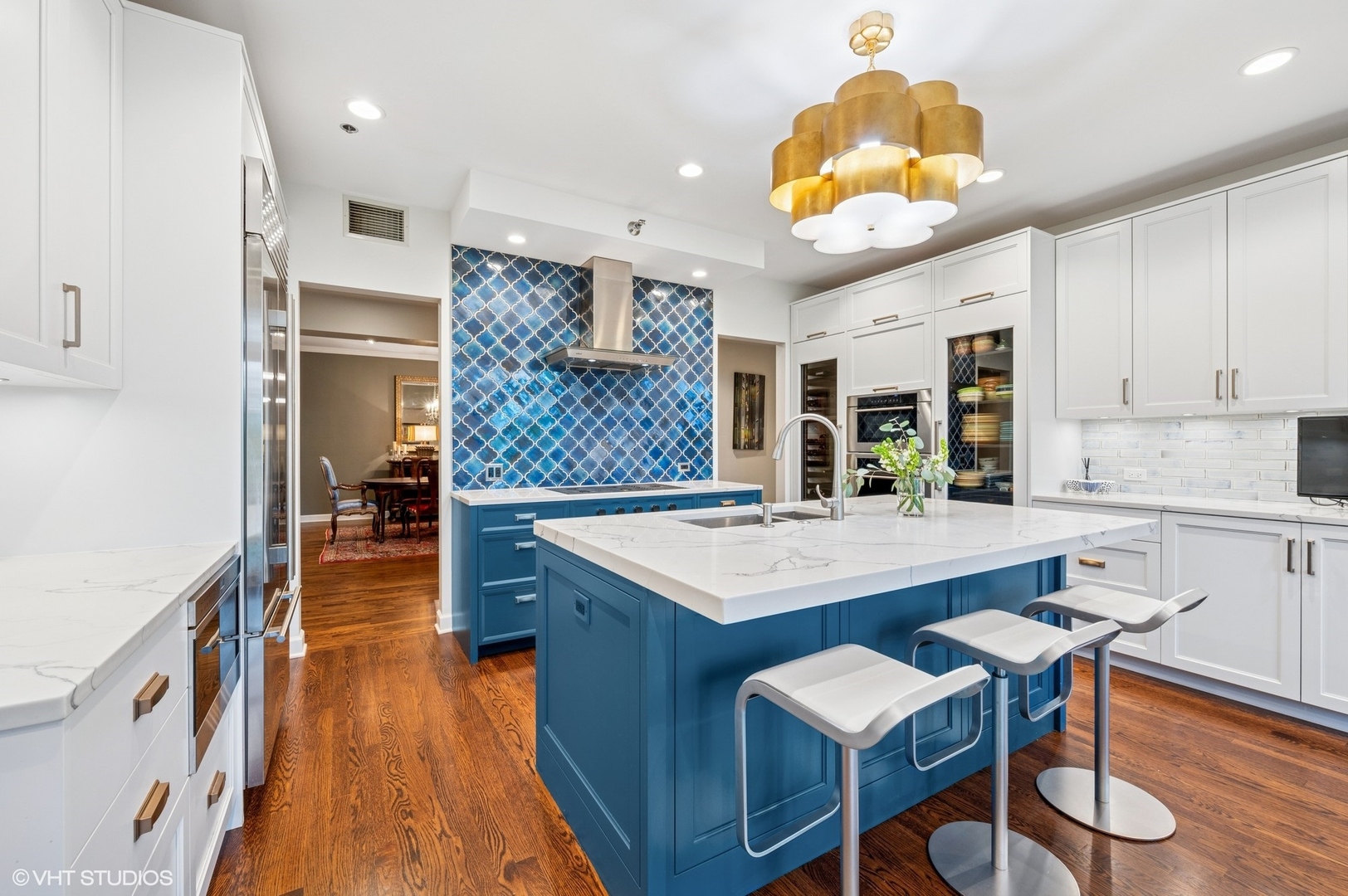 Absolutely stunning and fully renovated 3-bedroom + office, 2.5-bath top-floor condo in a prime River Forest boutique building. Nothing has been left undone-every inch of this home has been thoughtfully customized by the current owners with the highest attention to detail. You’ll love the ideal flow of this spacious floor plan, featuring 9-foot ceilings, beautiful hardwood floors, and oversized windows that fill the home with natural light. The welcoming foyer includes a large walk-in closet and a stylish half bath with a custom stone vanity. The expansive living room overlooks tree tops and a peaceful courtyard, anchored by a striking custom-built fireplace and one of three sliding doors that lead to your private balcony. The true chef’s kitchen is a showstopper with handcrafted cabinetry, quartz countertops, designer tile backsplash, and top-tier Sub-Zero, Wolf, and Bosch appliances. Enjoy casual dining at the eat-in island or a full table setup with two more sliding doors that open to the balcony. A flexible floor plan allows for a formal dining room or additional lounge space, while each bedroom offers excellent closet storage, custom window treatments, and designer lighting. The office can easily serve as a fourth bedroom or den. The serene primary suite offers a true retreat with fully outfitted custom walk-in closets and a luxurious spa-like bath, complete with heated floors, marble finishes, a soaking tub, large walk-in shower, and a double vanity with ample storage plus 2 linen closets! Large utility room with side by side washer/dryer, sink, additional storage! Additional highlights include heated garage tandem parking space and storage unit. All of this in a walk-to-everything location-this is River Forest living at its best. Don’t miss this rare opportunity!