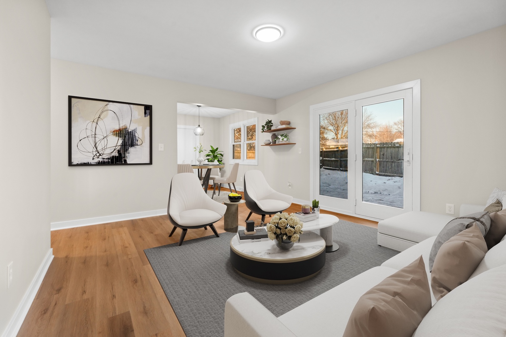 Welcome to this Charming 3-Bedroom Ranch Home located in the highly desirable Village of North Aurora!! Stylish, and meticulously updated, this move-in-ready home blends modern style with everyday comfort. Step inside to the vibrant living room which offers a warm inviting ambiance, boast tons of natural light and creates a welcoming atmosphere in every room. This home features New Luxury vinyl flooring, Fresh paint with soft tones throughout and an accent wall in the living room adding character and style to this home. The layout flows seamlessly into the vibrant family room which also leads into the kitchen and outside to the backyard. At the center of the home is the Stunning Kitchen which features White Cabinetry, New Sparkling White Quartz Countertops, New Stainless-Steel Sink, New Gorgeous white tiled back splash, modern fixtures, and Stainless-steel appliances which all come together to create a kitchen worthy of both preparing everyday meals and memorable hosting. The home offers three comfortable sized bedrooms, all freshly painted and equipped with new carpet. The stunning bathroom is finished with soft neutral tones that create an atmosphere of calm and comfort. The space features subtle taupe and white colored tile in the shower, a New sleek Modern oak vanity with New quartz countertop sink, modern finishes and fresh hardware adding a touch of modern luxury. Spacious laundry room is equipped with several cabinets perfect for storage and keeping everyday household items. Outdoors you will find the brick patio and the private generous sized yard, part of which is fenced, with endless possibilities for outdoor enjoyment, gardening and making memories with friends and family. New Roof in 2019. If you’re looking for a stylish, modern, move-in-ready home in North Aurora, this is the one you don’t want to miss! Located close to parks, schools, shopping, dining, and major highways, this home offers both convenience, modern living and a peaceful neighborhood. Schedule your showing today!