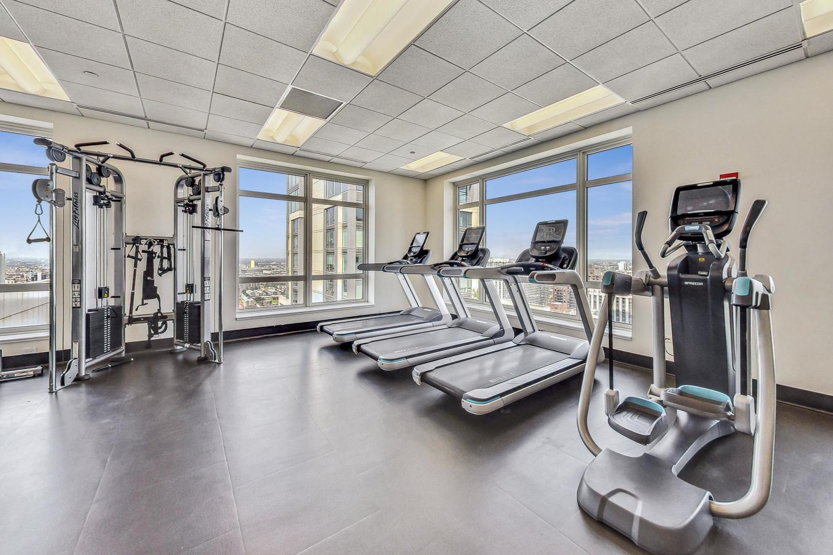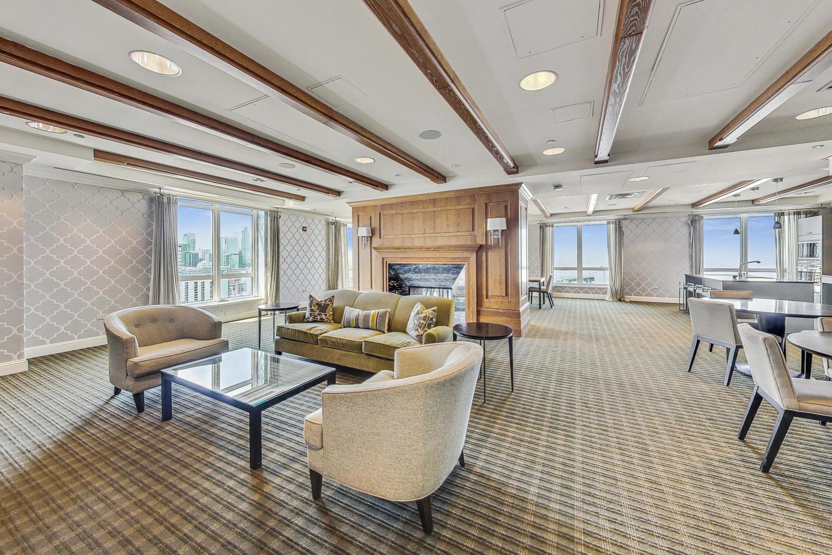 This stunning one-bedroom plus den residence offers soaring 20A beams, floor-to-ceiling windows, and unobstructed Eastern and Northern city views that flood the home with natural light. The thoughtfully designed floor plan features an open-concept kitchen with granite countertops, Sub-Zero refrigerator, newer appliances, and a large island perfect for entertaining-while still leaving space for a dining table. The living room is a great size to relax. Off the living area, a private balcony with a gas line makes grilling effortless. The primary suite includes a spacious walk-in closet, plus a second closet, and a luxurious marble bath with double sinks, soaking tub, and separate shower. The versatile den, ideal for a home office or guest space, enjoys the same wonderful light and views. A stylishly updated powder room, new LG stackable laundry, and brand-new laminate wood flooring throughout add modern comfort and brightness. Residents enjoy top-tier amenities, including a 24-hour doorman, rooftop pool, sundeck and gardens, state-of-the-art fitness center, and elegant party room. The building is exceptionally well run, with recently renovated hallways, $2.4M in reserves, and a 4-pipe system that allows heating or cooling year-round. Unbeatable location just steps from Michigan Avenue, Oak Street Beach, renowned restaurants, coffee shops, grocery stores, and premier shopping. Storage space is included; one attached, heated garage space available for $50,000.