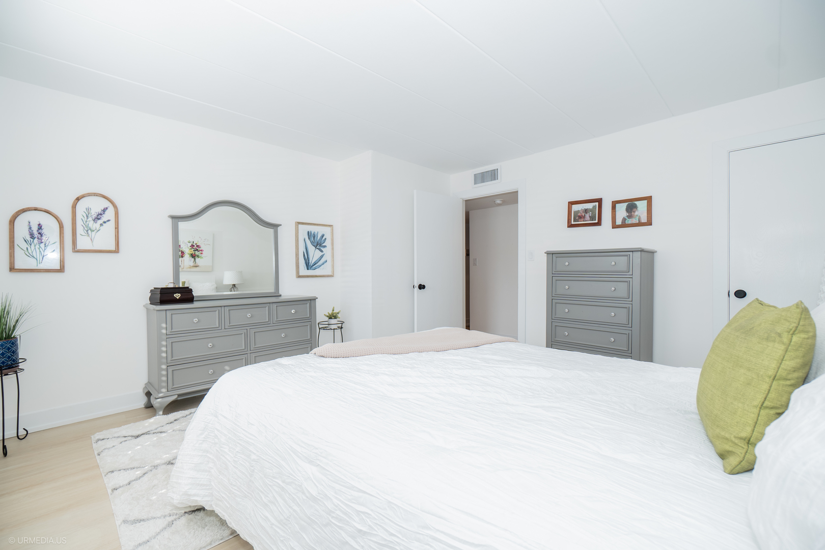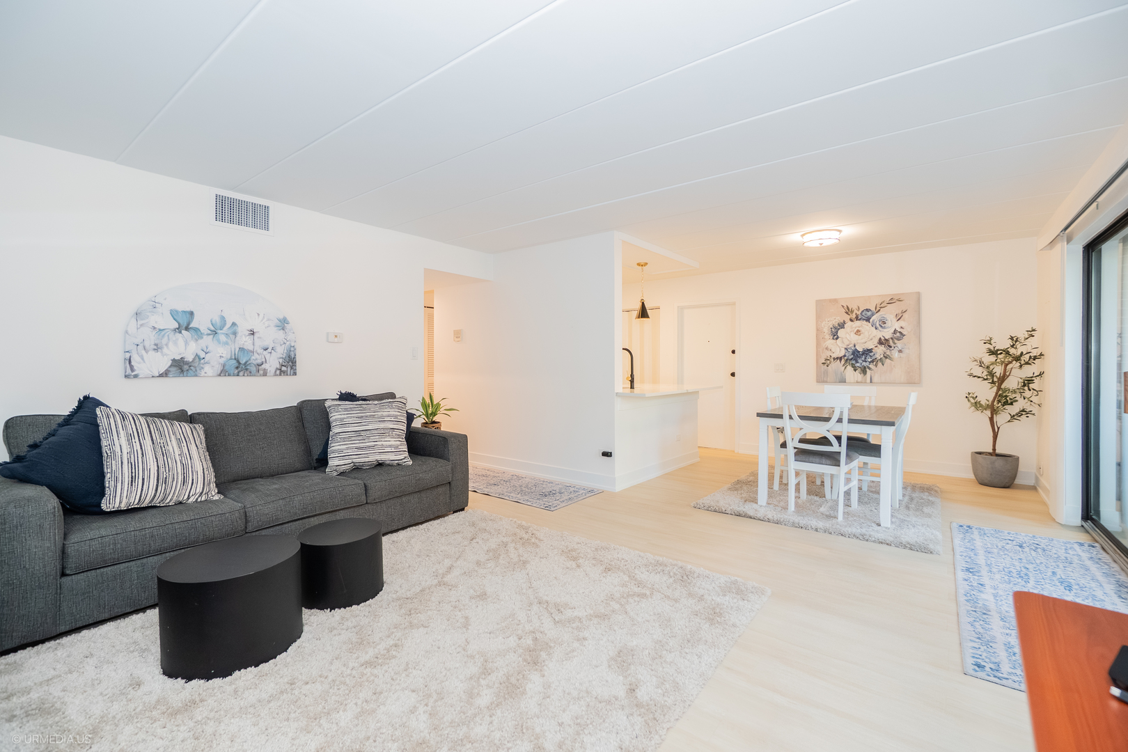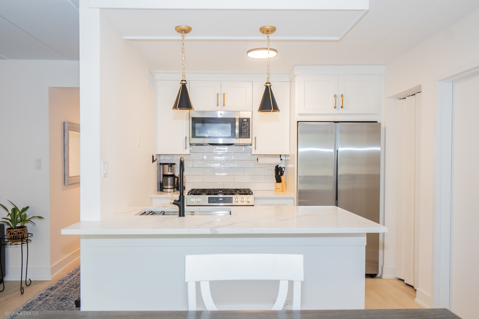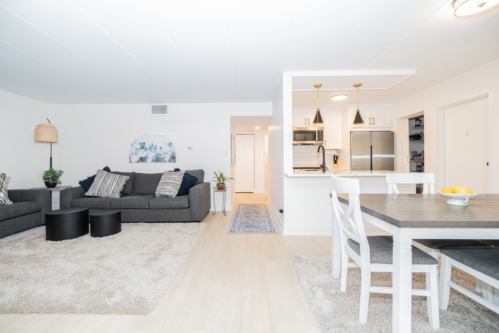 Ultra-chic and move-in ready! Recently fully remodeled, this spacious condo lives like a model home with bright open living, new flooring throughout, designer finishes, and tranquil pond views from your expansive balcony. The sleek kitchen boasts stainless steel appliances, quartz counters, a breakfast bar, custom cabinetry and walk in pantry. The spacious primary suite features an extra large walk-in closet. Updated spa-like bath comes complete with a rain shower and floating vanity w quartz countertop. Laundry in unit, central A/C, tons of storage and everything you could need with this turn key stunning unit. Convenient Lombard location with quick access to expressways, shopping, and entertainment. Assigned parking + extra guest spots included.