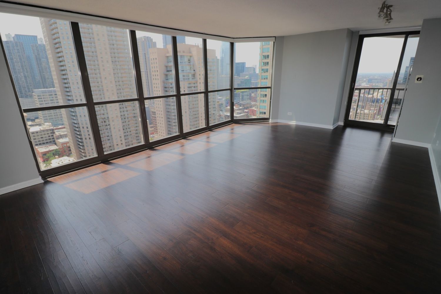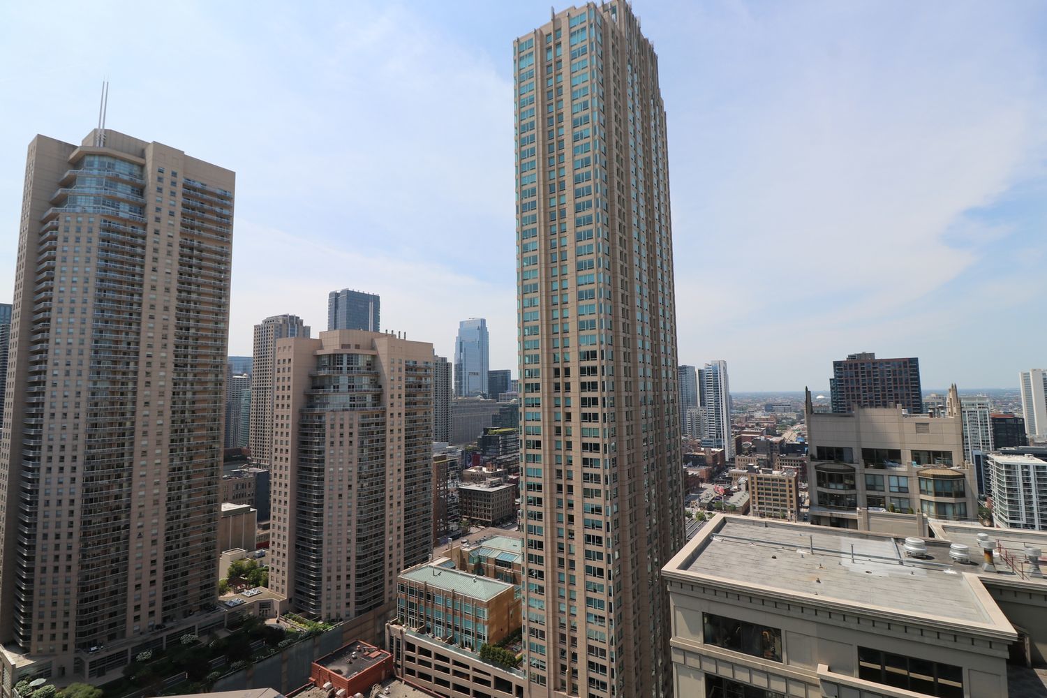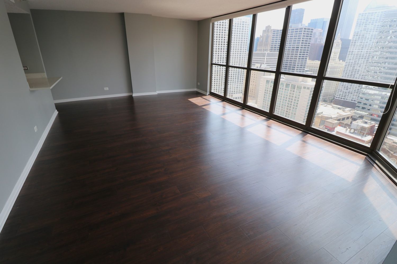 This RARE nearly 1000 square foot “05” tier CORNER unit with large balcony and stunning city views has been beautifully upgraded with lovely Pergot floors throughout, gorgeous white redone kitchen with quartz counters, stainless appliances and cool extended Breakfast bar with extra storage below and perfect for two bar stools… Huge living room with plenty of room for formal dining as well as room for large couch, chairs, entertainment center and more…. Unbeatable location in heart of River North with fabulous pool, park area with grilling stations, huge gym, business center, 7/11 within building, sauna and more! Steps to the best restaurants, clubs and Magnificent Mile shopping… Extra bonus! TraderJoe’s is right next door! Can’t beat that!!