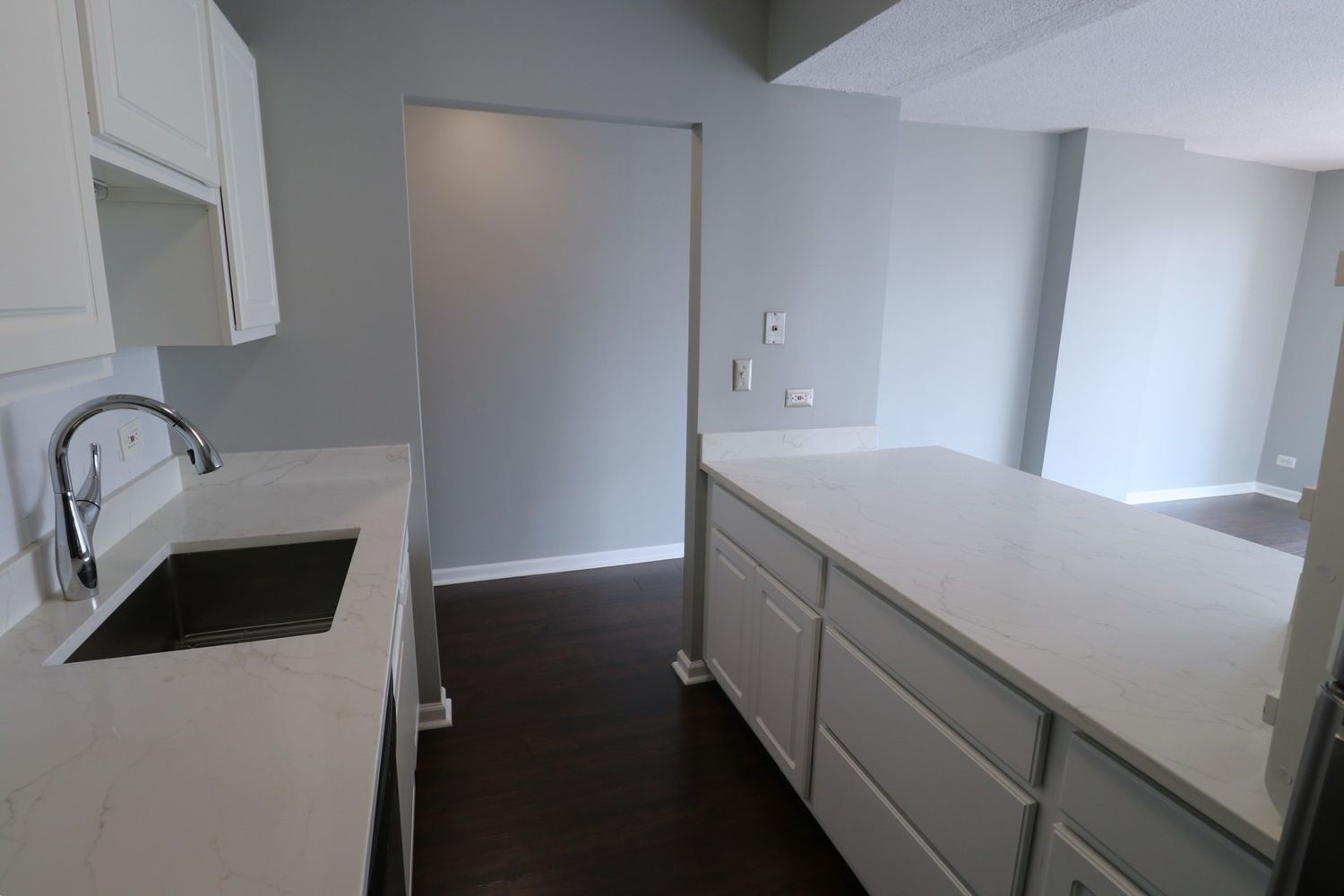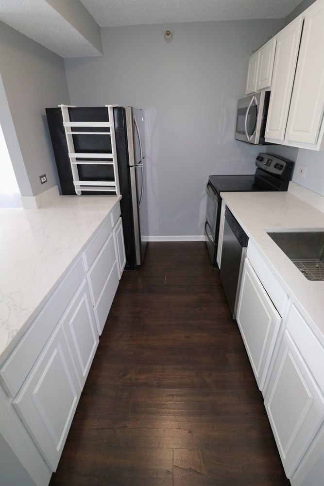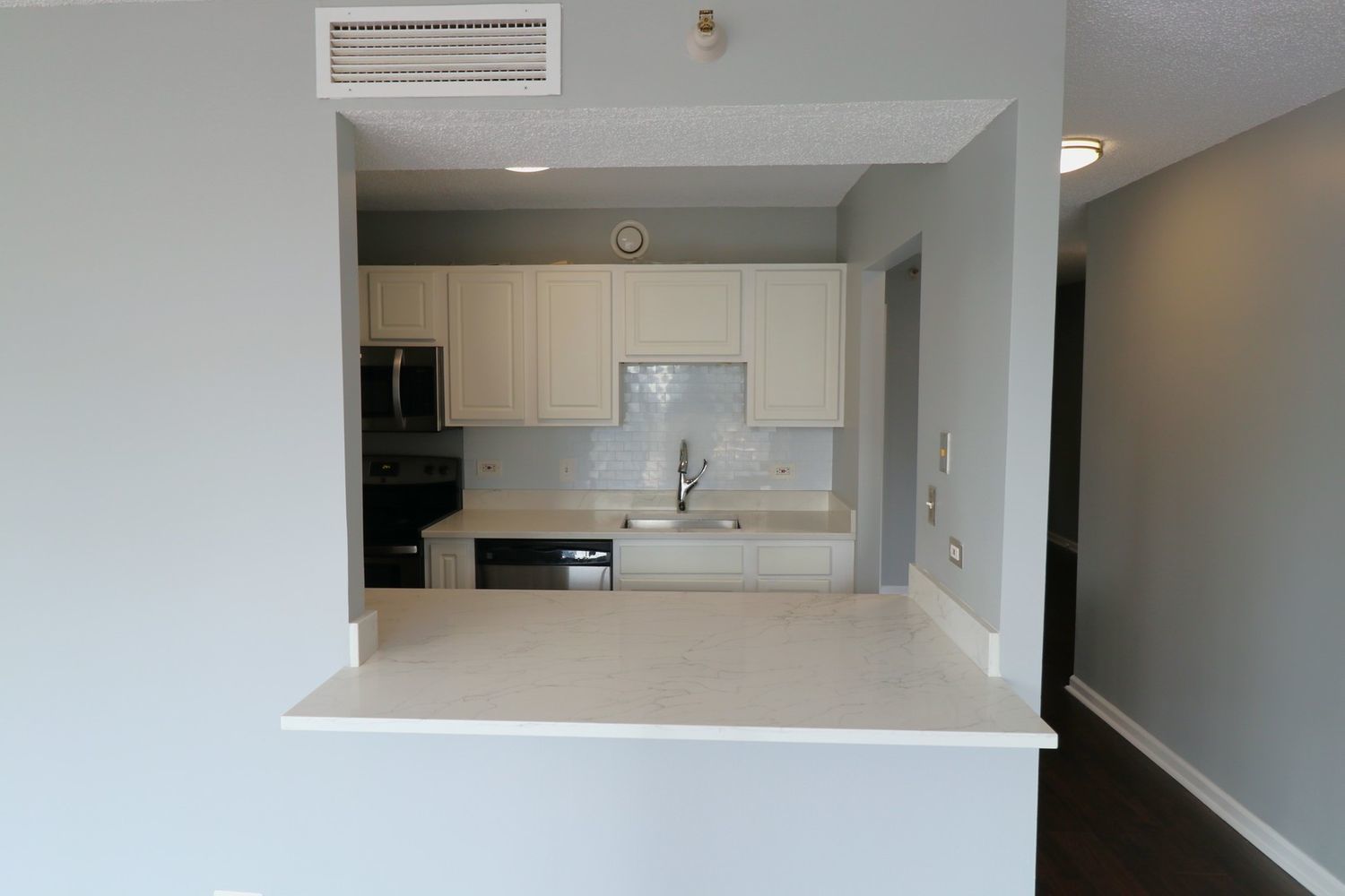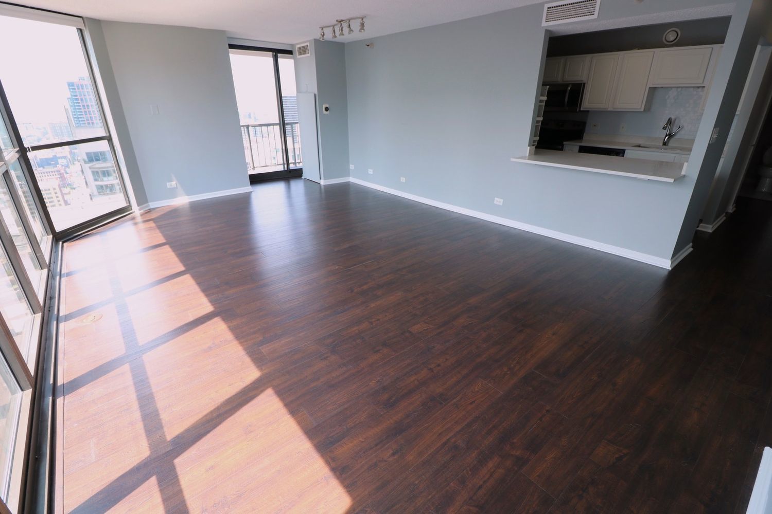 This RARE nearly 1000 square foot “05” tier CORNER unit with large balcony and stunning city views has been beautifully upgraded with lovely Pergot floors throughout, gorgeous white redone kitchen with quartz counters, stainless appliances and cool extended Breakfast bar with extra storage below and perfect for two bar stools… Huge living room with plenty of room for formal dining as well as room for large couch, chairs, entertainment center and more…. Unbeatable location in heart of River North with fabulous pool, park area with grilling stations, huge gym, business center, 7/11 within building, sauna and more! Steps to the best restaurants, clubs and Magnificent Mile shopping… Extra bonus! TraderJoe’s is right next door! Can’t beat that!!