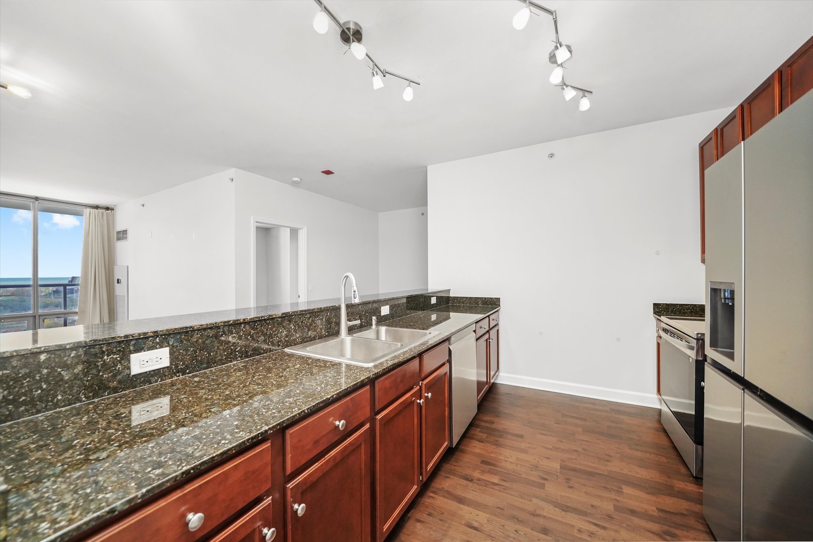 Luxury Lakefront Living comes to life at Museum Park. Rise above downtown streets to your private balcony and savor hot coffee and cool lakefront views. The city’s energy unfolds below while lake and skyline stretch to the horizon. This one bedroom plus den home blends sophistication, ease, and the best of Chicago living. Floor to ceiling windows frame the calm of Lake Michigan and the electric presence of Soldier Field. Inside, thoughtful design meets restful comfort. Granite countertops. Fresh paint. Matching premium appliances. The versatile den is ready to serve as a play space, personal home office, or private dining area. The building delivers true penthouse level amenities. Enjoy an indoor pool and restorative hot tub. Build your strength in a modern fitness center with sweeping rooftop views. Find calm in the sky lounge for meetings or quiet reflection. On-site storage and a dedicated 24 hour concierge team offer peace of mind. Access groceries from Jewel, Trader Joes, or Marianos with ease. World renown dining, lakefront paths, and greenspace are at your doorstep. The Field Museum, Adler Planetarium, and Shedd Aquarium are all close by. Public transportation is conveniently close as well. Parking available separately.