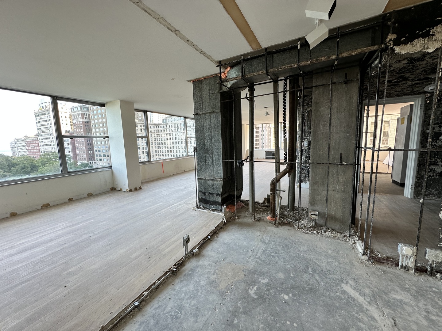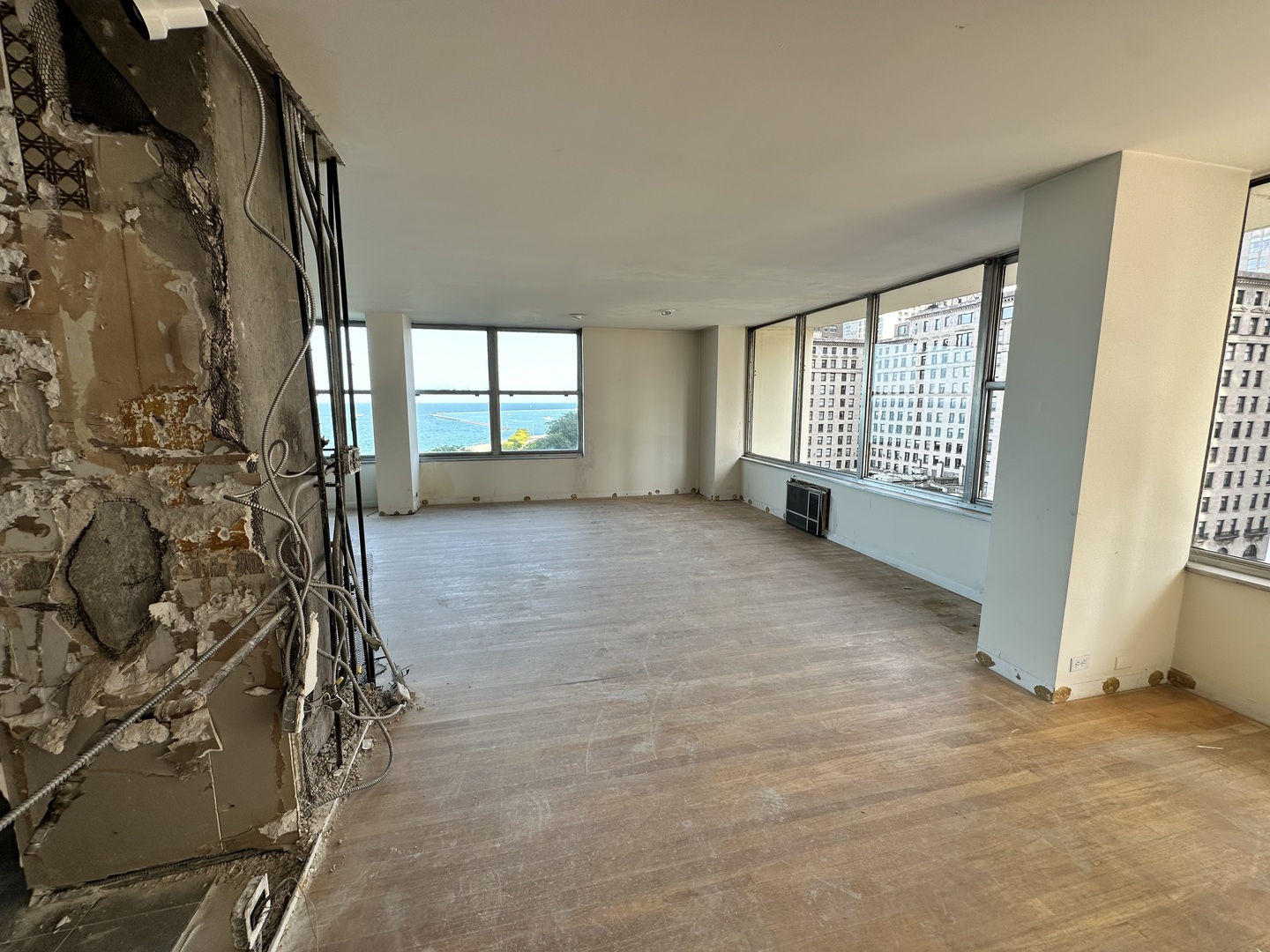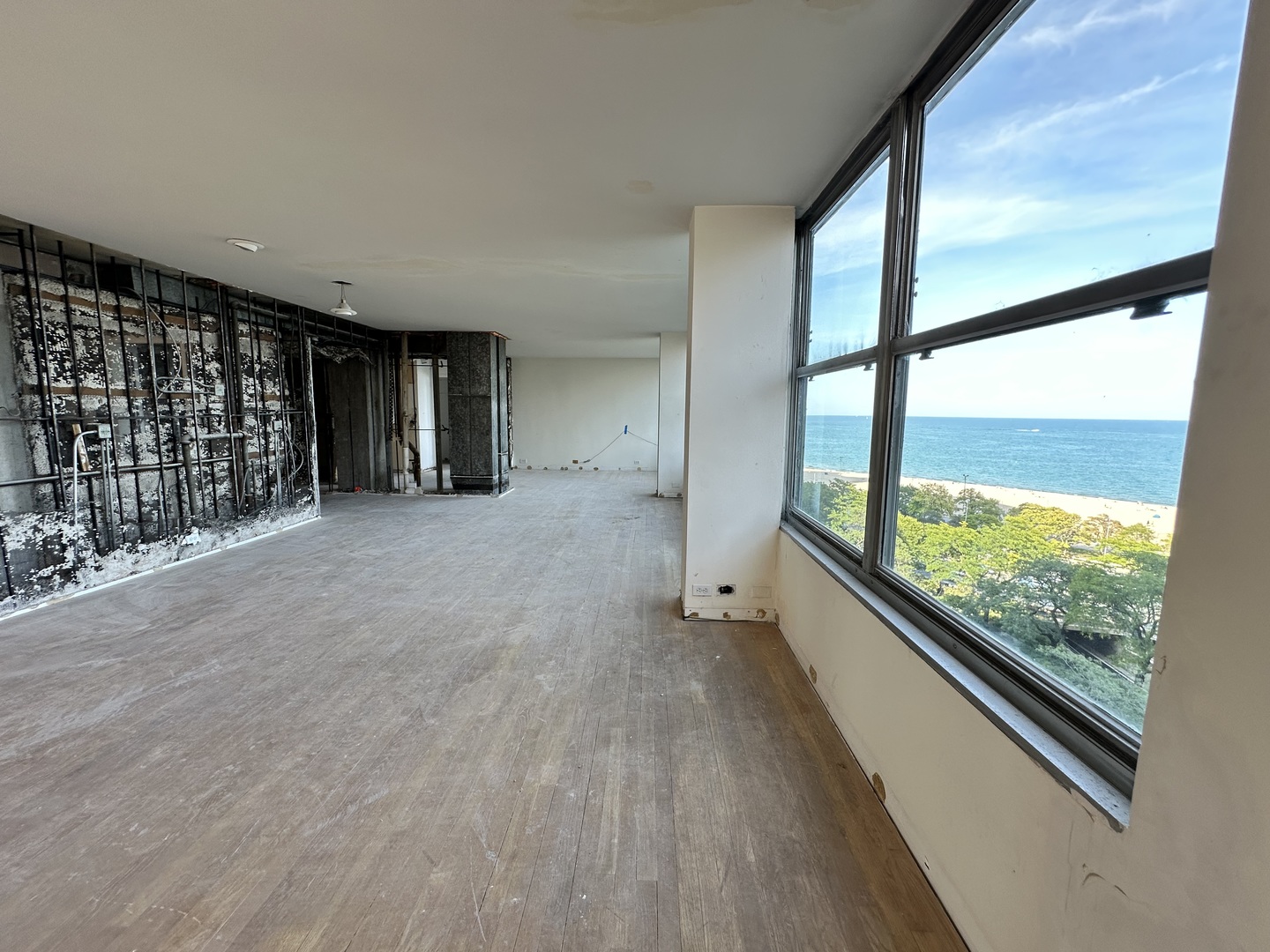 **MULTIPLE OFFERS RECEIVED, HIGHEST AND BEST DUE 11/16 @ 12 PM** PLEASE DO NOT CONTACT LISTING AGENT- ONLY TEXT CO-LIST AGENT 8478406462. ATTENTION INVESTORS/BUILDERS & BUYERS LOOKING TO CREATE THEIR DREAM SPACE: Unmatched opportunity in the heart of Gold Coast! Located at the prestigious corner of Bellevue and Lake Shore Dr, this expansive over 2,600 sq ft residence (with the option to combine with unit 1007 for more than 3,300 sq ft total) offers unobstructed, panoramic views of Lake Michigan, Oak Street Beach, and Chicago’s most iconic landmarks-including the Drake and John Hancock Building. Originally two units combined, this property has been completely gutted with much of the demolition already complete-ideal for builders, investors, or buyers eager to create a brand-new space from scratch. All city permits and building approvals are already in place to merge with unit 1007, streamlining your design process. Spanning nearly half the floor, the home boasts massive east, north AND south-facing windows, a flexible open layout, and a prime Gold Coast address just steps from beaches, world-class dining, luxury shopping, and Chicago’s lakefront trail. Offered AS-IS, cash purchase only.