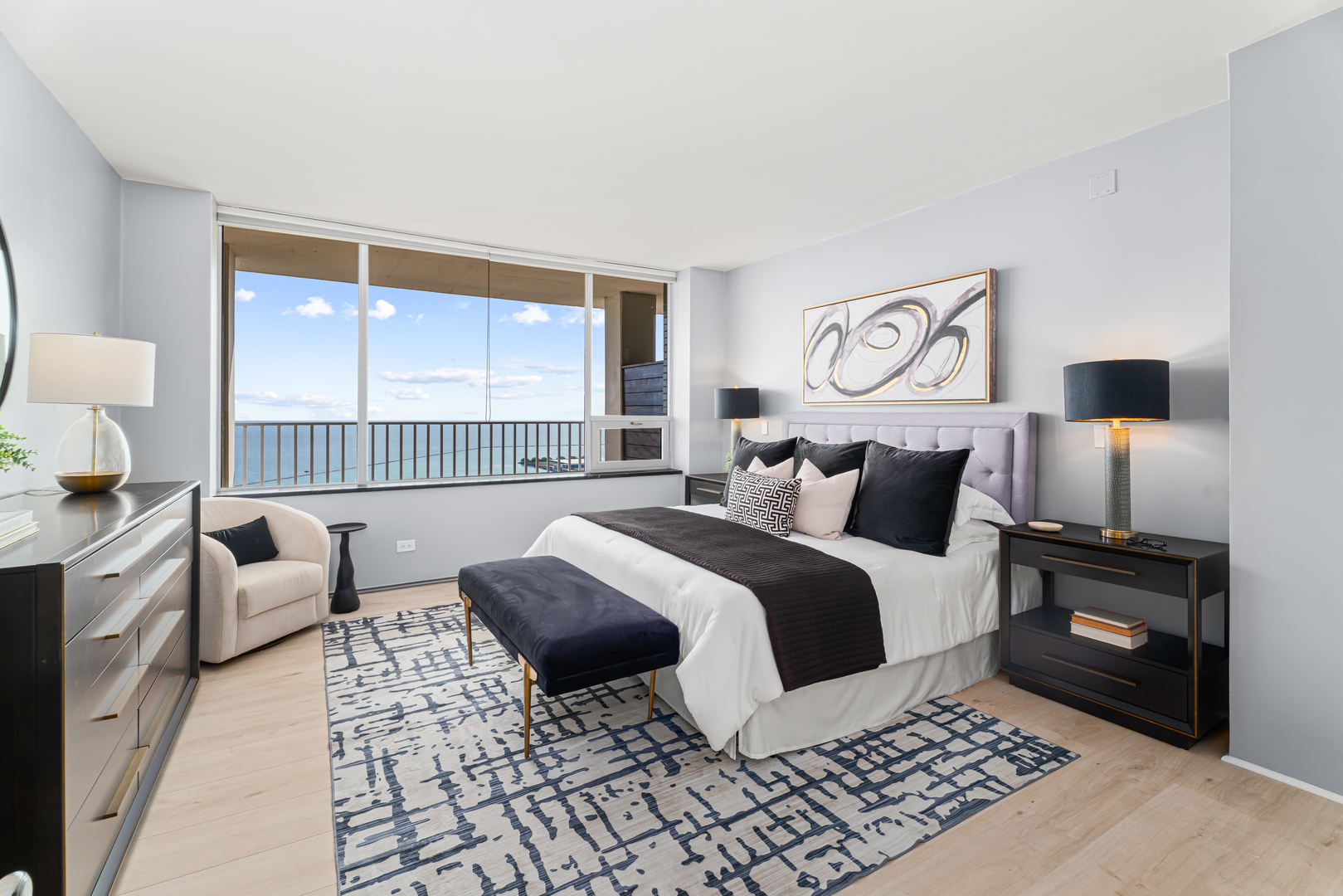 Don’t miss the chance to call this special home yours! Perched high above the city, this beautifully remodeled former three-bedroom has been reimagined into an expansive two-bedroom, two-and-a-half-bath residence with a rare oversized laundry and mudroom. From the moment you step inside, you’re welcomed by breathtaking lake and city views that deliver a “wow” factor in every room. A stunning forty-foot east-facing balcony spans the living area, offering the perfect setting to enjoy morning coffee as the sun rises over Lake Michigan or to unwind with a glass of wine as the skyline sparkles at sunset. The thoughtful open layout and high-end finishes make this home ideal for both everyday living and elegant entertaining, all in one of Chicago’s most coveted Gold Coast addresses. With nine-foot ceilings, a move-in ready design, and panoramic views of Lake Michigan and the city lights, this home delivers both comfort and sophistication. Residents enjoy five-star amenities including a 24-hour door staff, a fully equipped fitness center, an indoor pool, a sundeck, and a hospitality room with catering kitchen. All of this is just steps to world-class shopping, fine dining, and the very best of the Gold Coast lifestyle.
