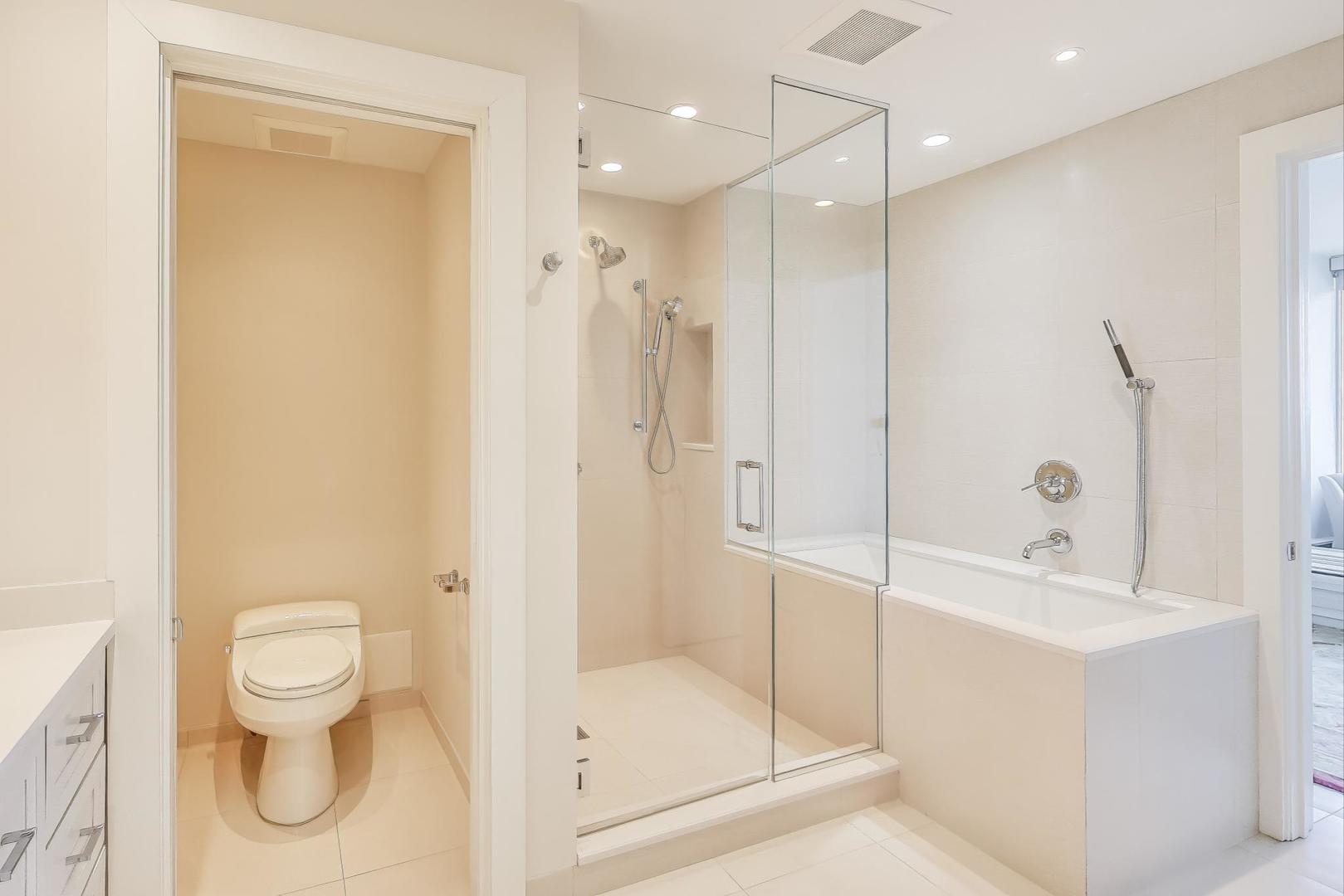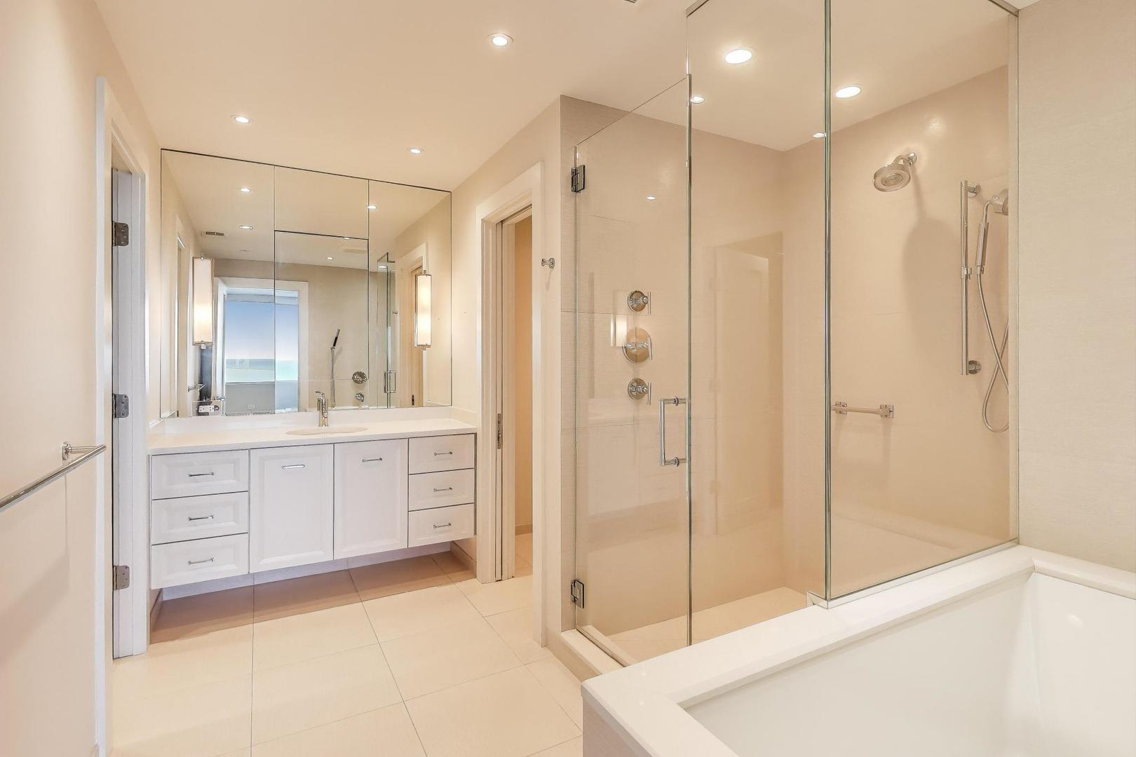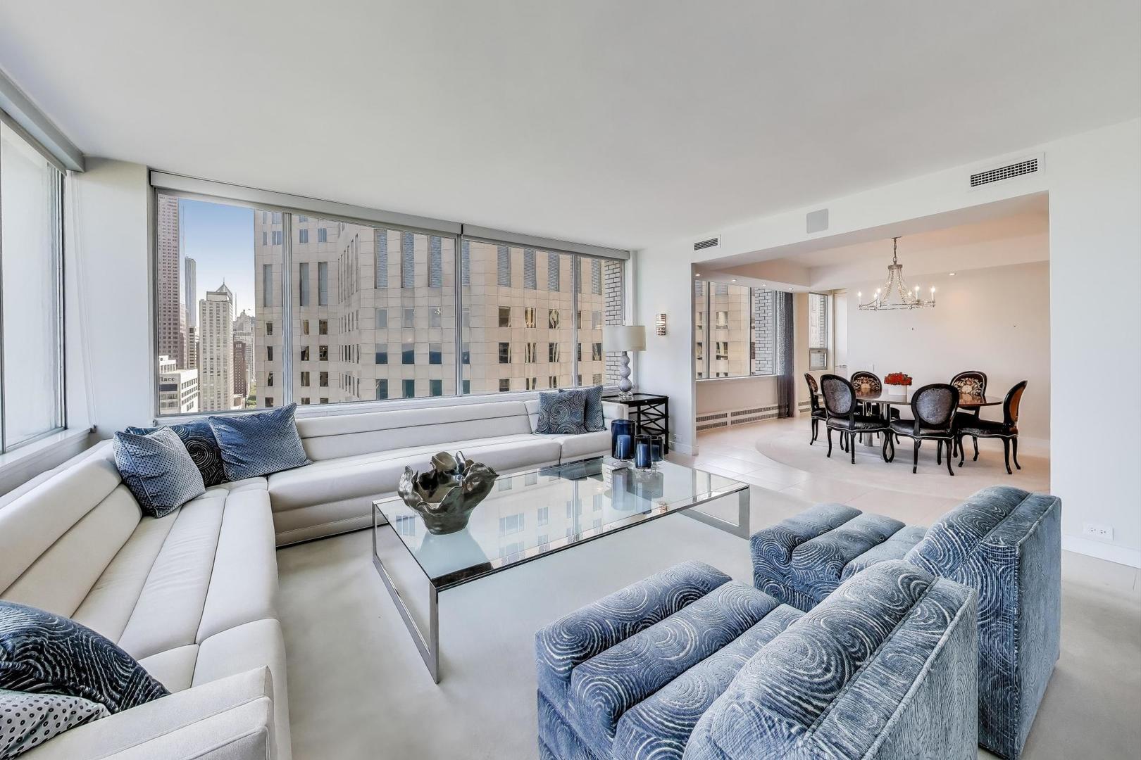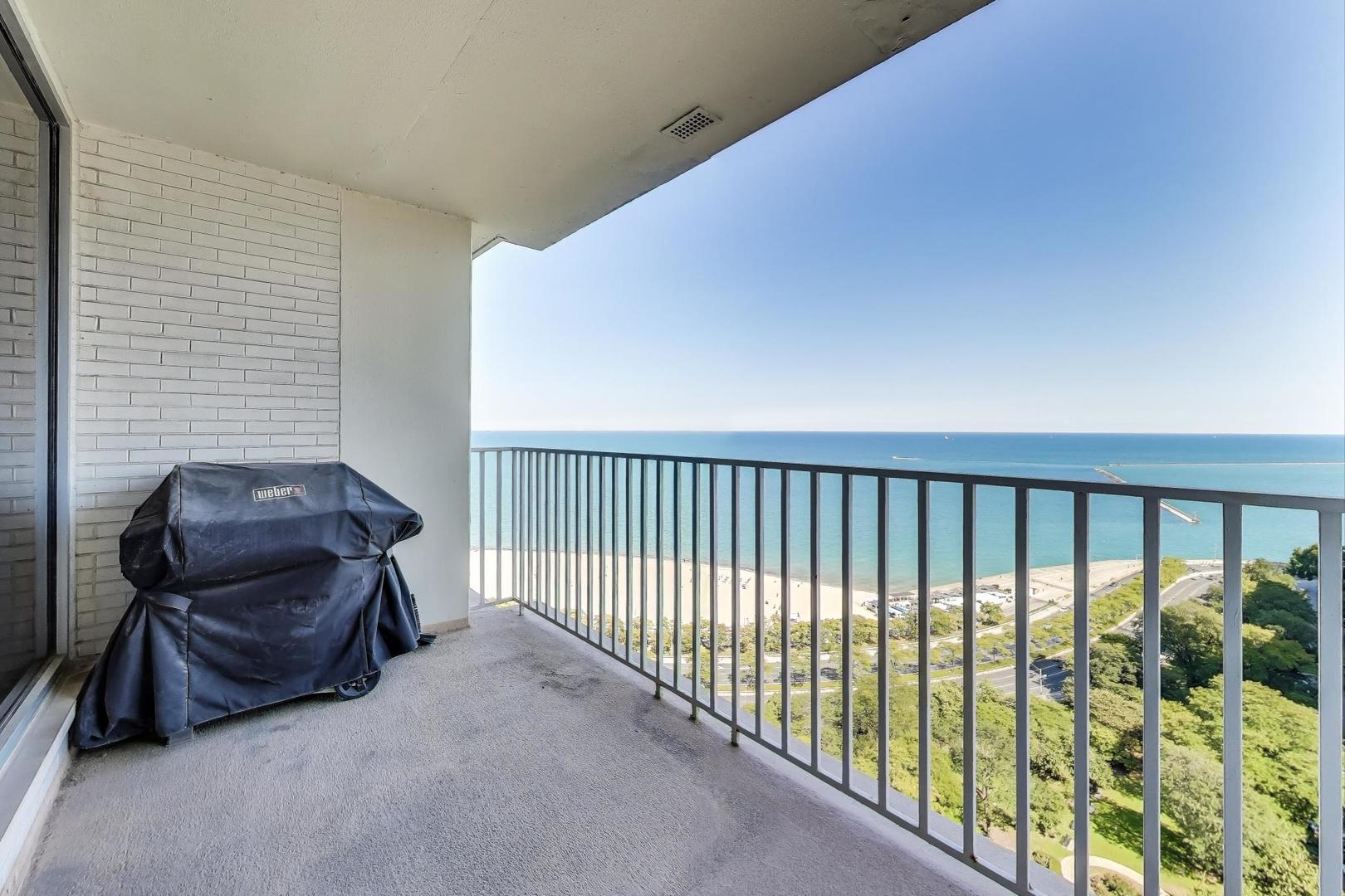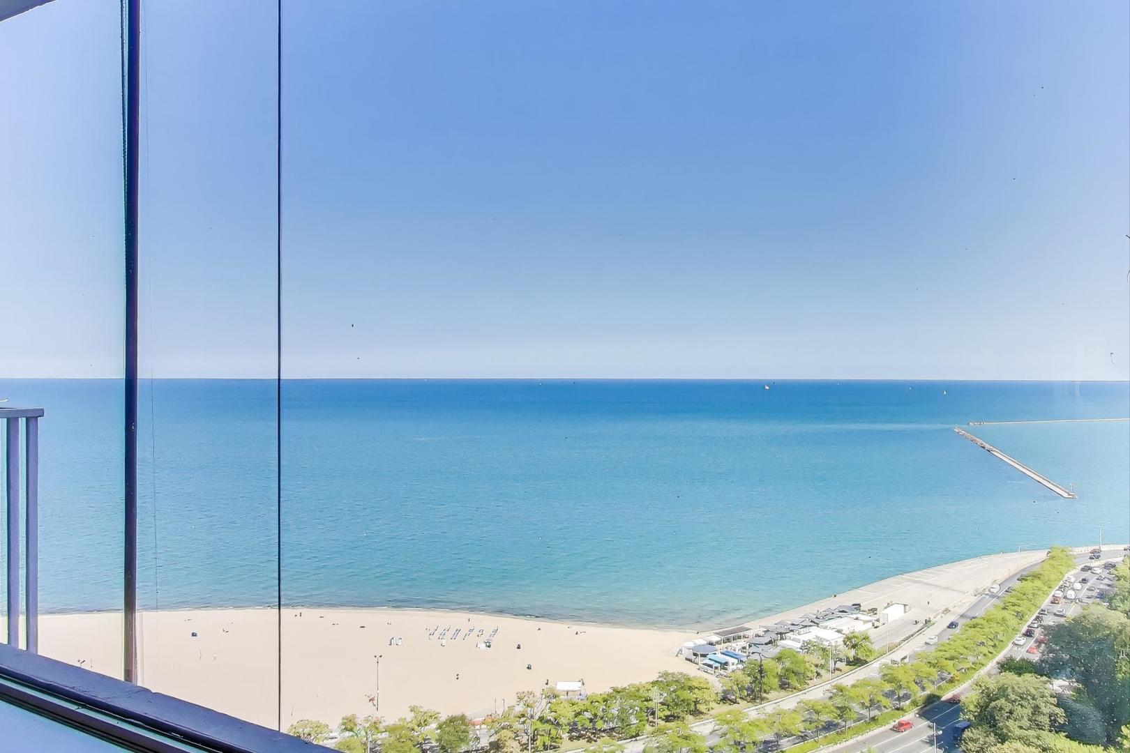 Stunning Lake & City Views from this Corner Gold Coast Condo! This rarely available tier offers breathtaking panoramic views and an unbeatable location at Oak St and Lake Shore Dr. Completely updated with top-of-the-line finishes, this residence features a Sub-Zero refrigerator, Wolf cooktop and double oven, Bosch washer and dryer, and a built-in surround sound system throughout. The thoughtfully designed floor plan includes a den open to the living room, which can be converted to a 3rd bedroom. The primary suite boasts a spa-inspired bath with a soaking tub, glass-enclosed shower, separate water closet as well as a large walk-in closet. An additional walk-in closet in the hallway offers exceptional storage. Step onto the east-facing terrace from the living room to enjoy serene lake views. Expansive picture windows flood the home with natural light, and spacious rooms provide a sense of elegance and comfort. The building offers 24-hour door staff, an indoor pool, a west-facing sundeck, a party room, a state-of-the-art fitness center, garage parking, and guest parking.