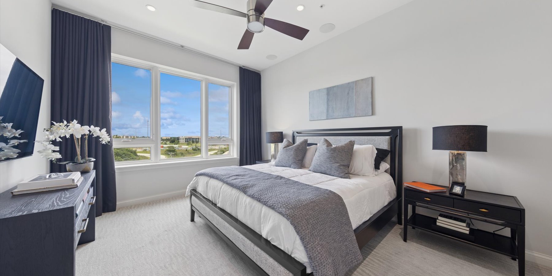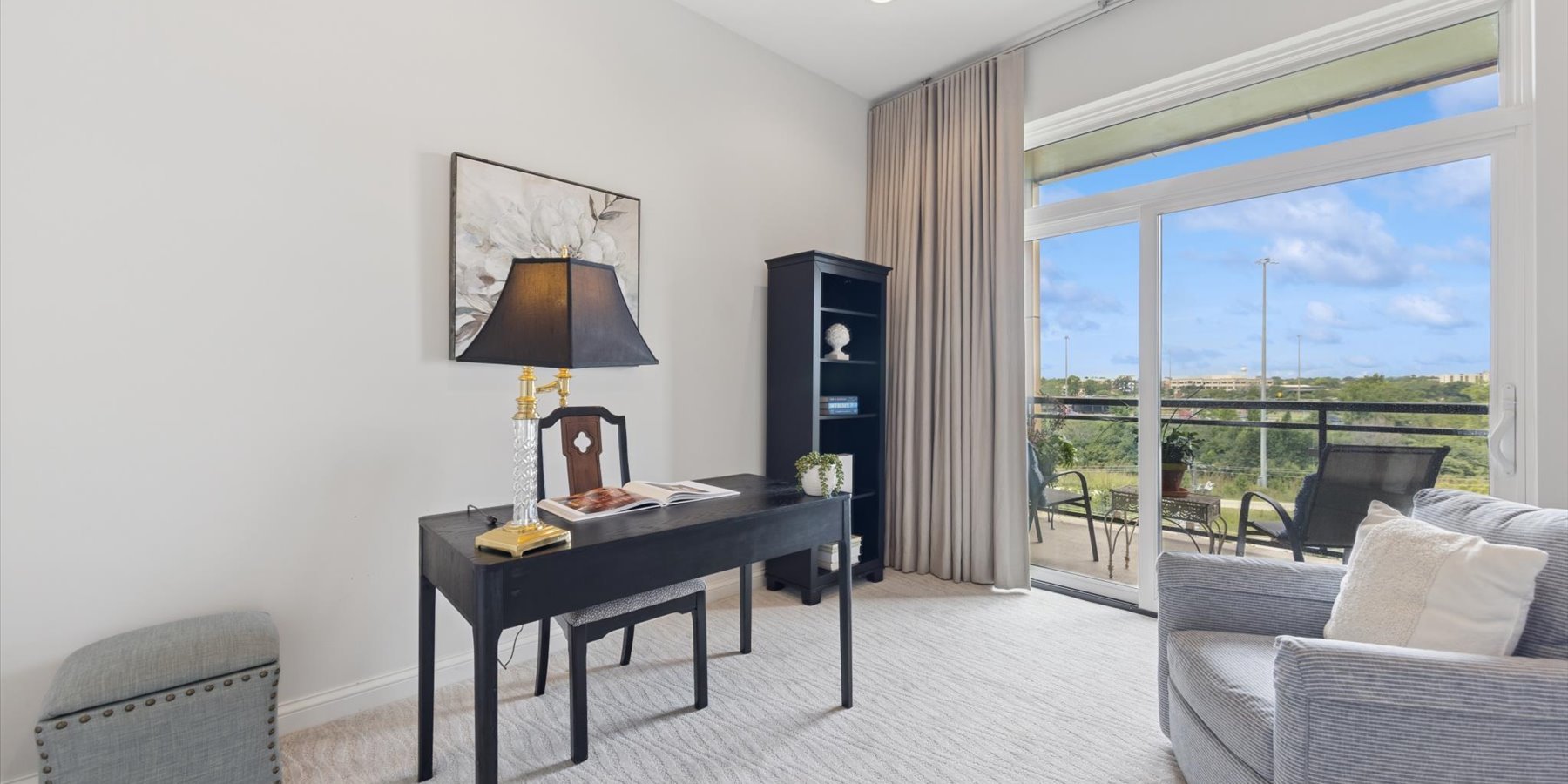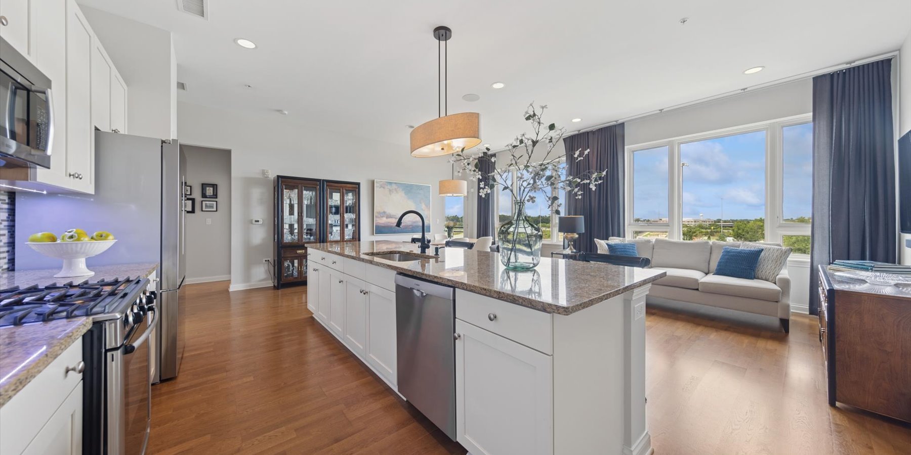 Luxury at the top! This lovely penthouse unit, in the Village Center’s exclusive all-residential building, has 2 beds/2baths plus a cozy den. The gracious open floorplan includes a gourmet kitchen with expansive island, spacious living and dining areas, plus a private balcony. Designer touches abound in the appealing neutral color palette. Upgrades and updates include high-end closet organization, recessed lighting, custom window treatments, new carpeting in bedrooms and den, and fresh paint. That’s not all…this unit comes with 2 parking spaces in the heated garage. Enjoy all that the Village Center has to offer, right outside your doors…fine and casual dining, shopping, a full-service spa and more.