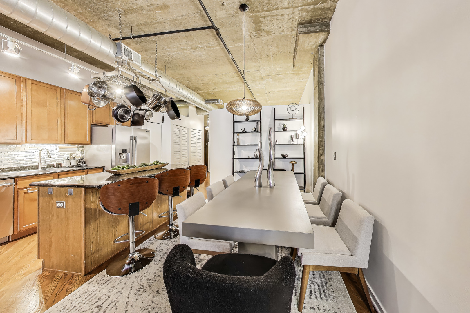 Rarely available at 1000 W Adams is this beautifully maintained, true concrete loft in the heart of the West Loop with a large private outdoor terrace! This oversized 2-bedroom, 2-bathroom condo offers the perfect blend of industrial character and modern comfort, featuring soaring ceilings, exposed concrete, and hardwood floors throughout the main living areas. The “03 tier” condo on this is floor is significantly larger than the “03 tier” condos on other floors thanks to the additional bump out beside the terrace, perfect to use as a den/office/sitting area. The expansive open-concept living and dining space flows seamlessly to a large, private covered terrace-perfect for outdoor dining, entertaining, or relaxing in your own urban oasis. The modern kitchen is equipped with stainless steel appliances (all under 5 years old), including a high-end Thermador range, 42″ cabinetry, granite countertops and a breakfast bar for casual dining. The HVAC system and in-unit washer/dryer are just 3 years old (2022)! Additionally, the front door was replaced less than a year ago, offering enhanced security and a fresh, updated entry. The spacious primary suite features a walk-through closet with custom Elfa system organizers, leading to a large en-suite bath. The spacious second bedroom is perfect for guests, a home office, or a roommate setup, with an adjacent full bathroom. A rare perk of this unit is the grand-sized private storage room, providing an abundance of space rarely found in the city. One Tandem (2 car) garage parking spot is INCLUDED in Price! Located in the highly sought-after 1000 W Adams building, residents enjoy full access to top-tier amenities including a stunning rooftop deck with skyline views, a peaceful courtyard, renovated business center, expansive fitness center, 24-hour door staff, a welcoming lobby, electric car charging station, bike room, full-service dry cleaners, and a solid, well-managed HOA. Perfectly situated on a prime corner lot in the West Loop, this home offers the ideal balance of tranquility and accessibility. Non-metered street parking on Morgan and Adams makes coming and going easy, while being just two blocks from Madison Street keeps you close to the neighborhood’s vibrant core. You’ll be steps from Mary Bartelme Park, Target, Mariano’s, Whole Foods, the potential future home to Trader Joe’s and Aldi’s, the Morgan (Pink/Green Line) and UIC Halsted (Blue Line) ‘L’ stops, and the iconic Restaurant Row on Randolph. With quick access to the Loop and expressways, commuting is effortless. This is a rare opportunity to own a fully turnkey, move-in ready home in one of Chicago’s most sought-after neighborhoods.