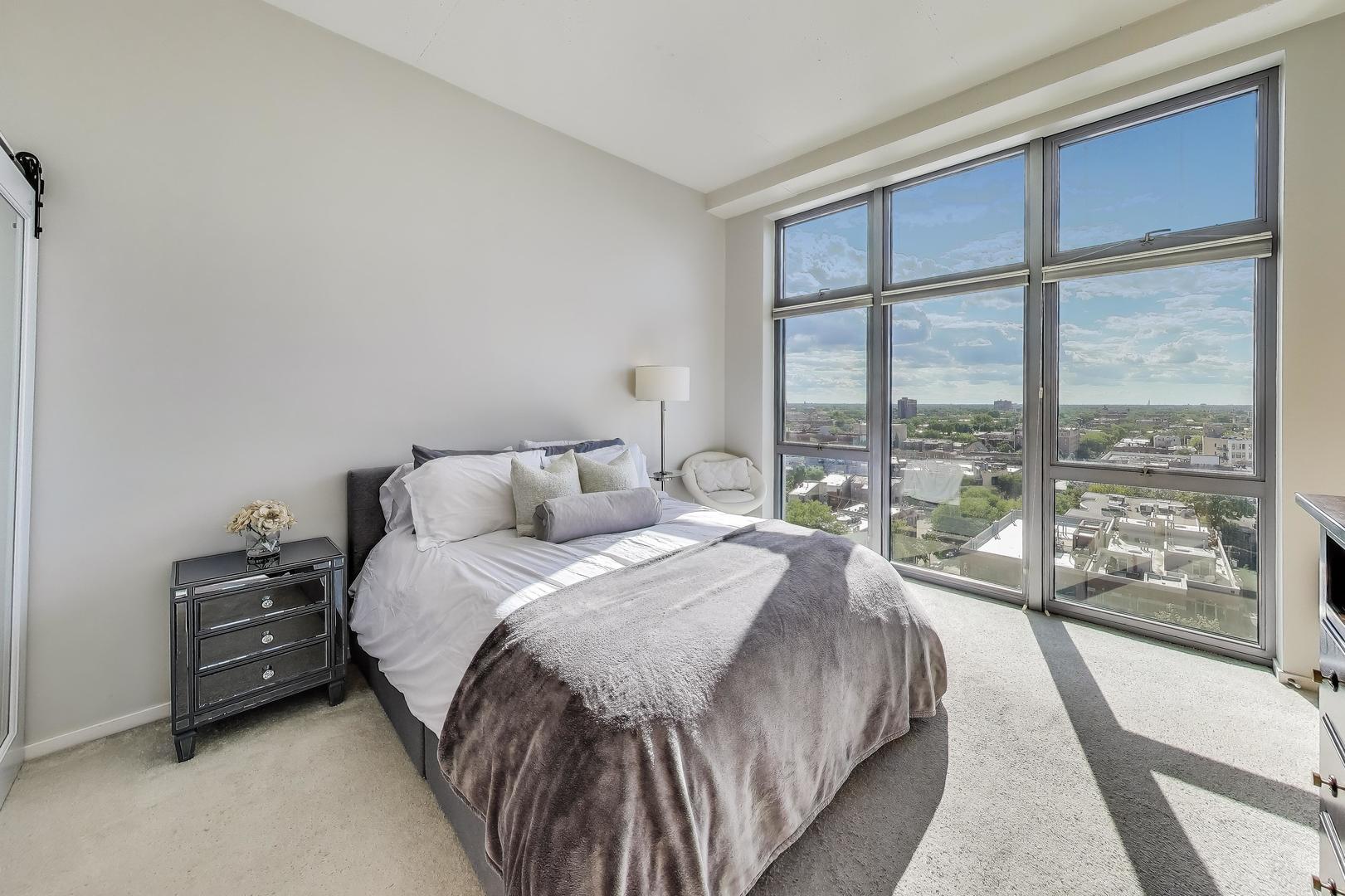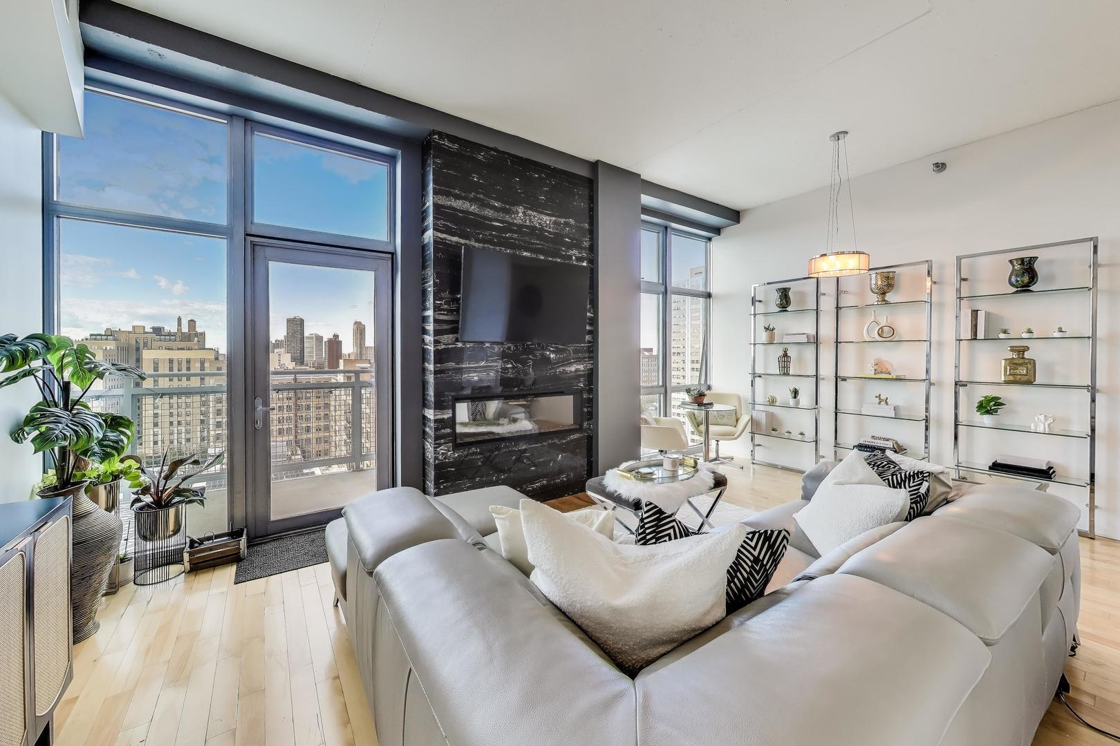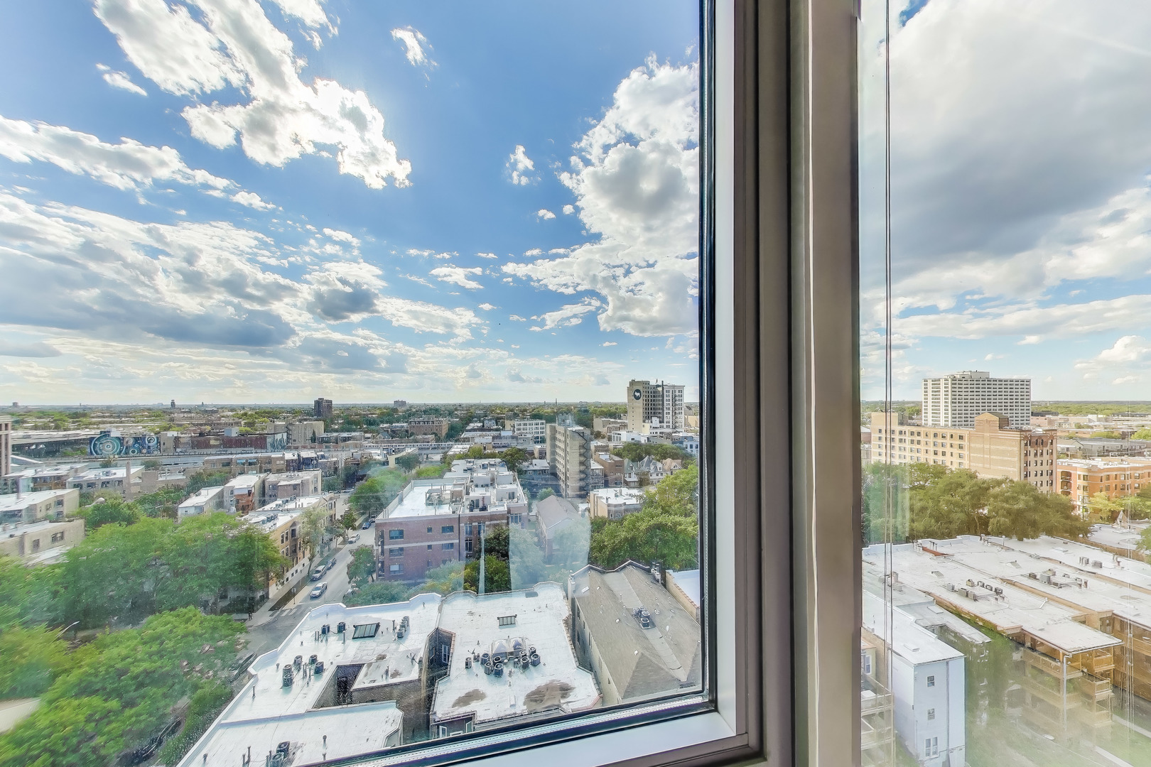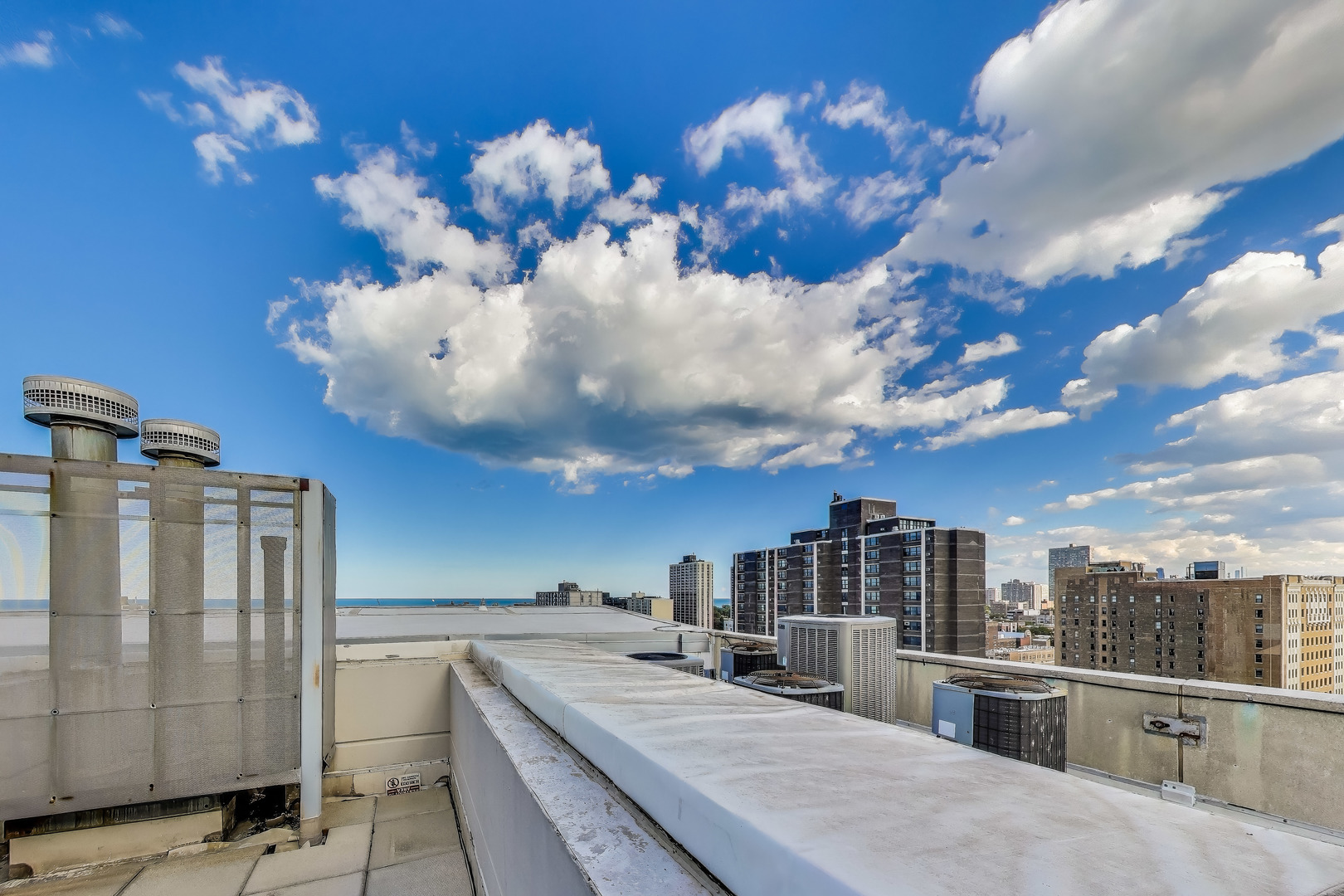Enjoy sweeping skyline and lake views from this bright, top-floor, 2-bed, 2-bath corner condo at 1000 W Leland. The spacious living and dining area features floor-to-ceiling windows, hardwood floors, and a striking custom marble-surround fireplace that serves as the room’s focal point. Just off the living room, step onto the large private balcony for unobstructed northern city & lake views, perfect for relaxing or entertaining. The open layout flows into the updated kitchen with new white quartz countertops, black hardware, stainless steel appliances, an KitchenAid electric cooktop, and an island with seating. The primary suite includes floor-to-ceiling windows, a walk-in closet, and a stylish ensuite bath with a marble-accented walk-in shower and modern vanity. The bright second bedroom features large windows and can serve as a guest room, office, or workout space. A full guest bath, located on the opposite side of the unit for privacy, includes a tub/shower combo and updated finishes. Both baths and the primary bedroom have been freshly painted. Additional highlights include in-unit laundry with a stackable Bosch washer/dryer, carpet in the bedrooms, and multiple storage options. This boutique, pet-friendly building offers a fitness room, bike storage, package lockers, and a rooftop deck with panoramic views. One secured interior garage parking is included. Ideally located near shops, Target, Mariano’s, Aldi, restaurants, nightlife, and just blocks from Montrose Beach, lakefront trails, and Uptown’s iconic entertainment venues (with more on their way). Convenient access to the newly re-opened CTA Red Line stations and express buses makes commuting easy!
