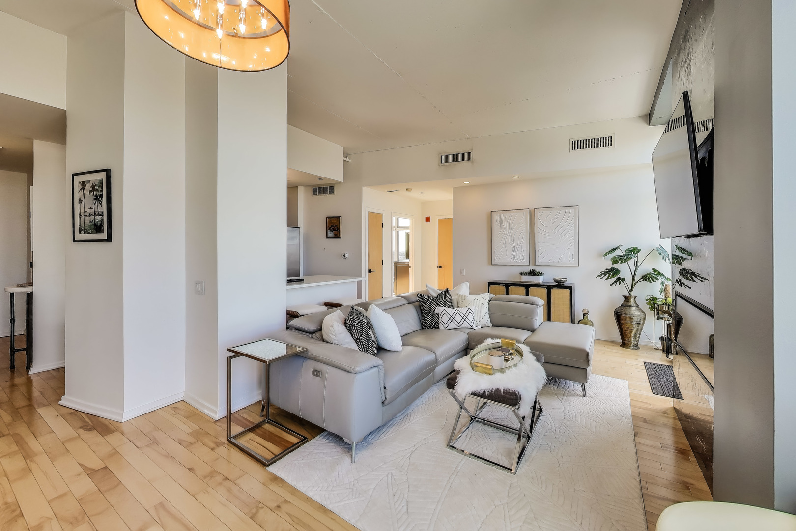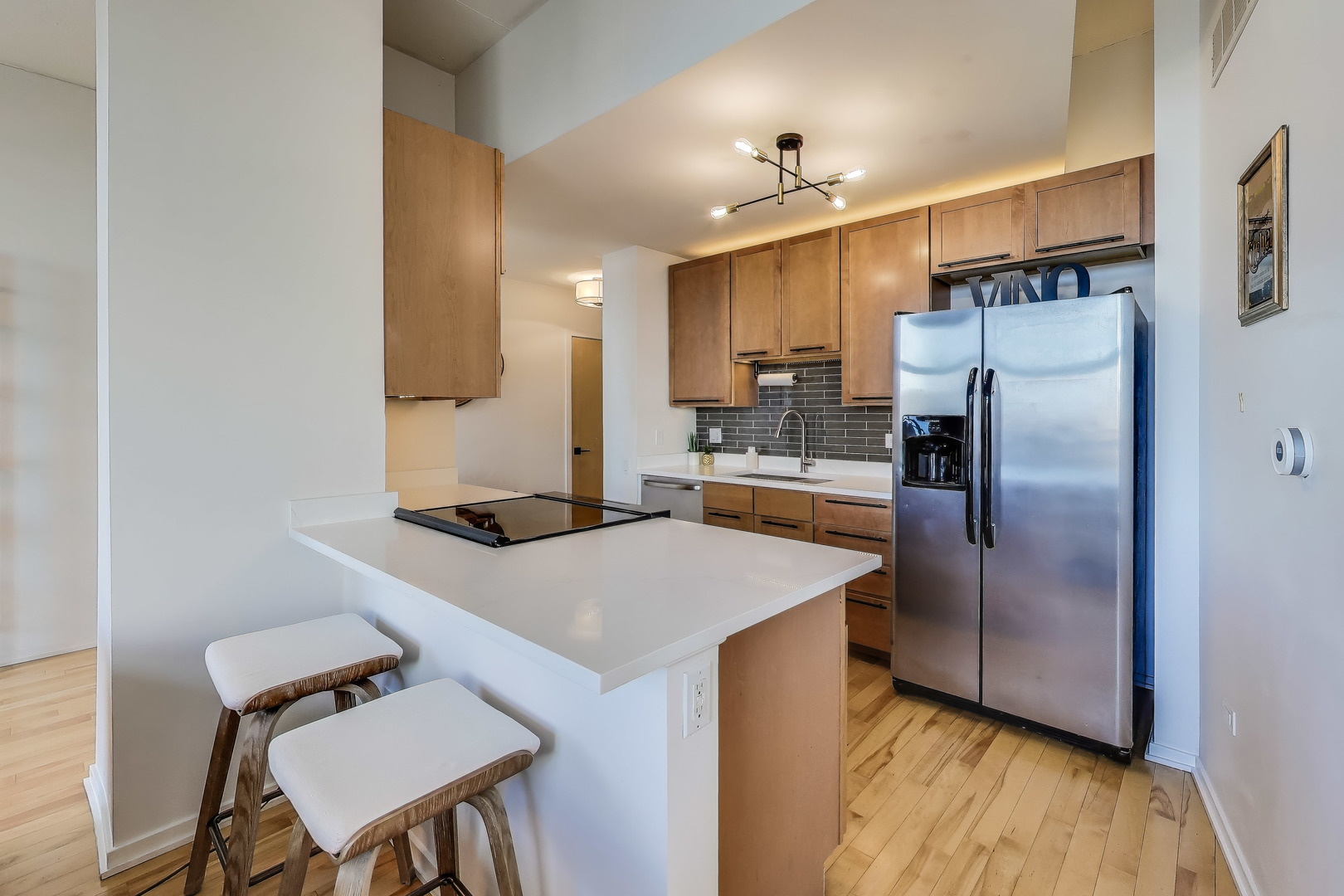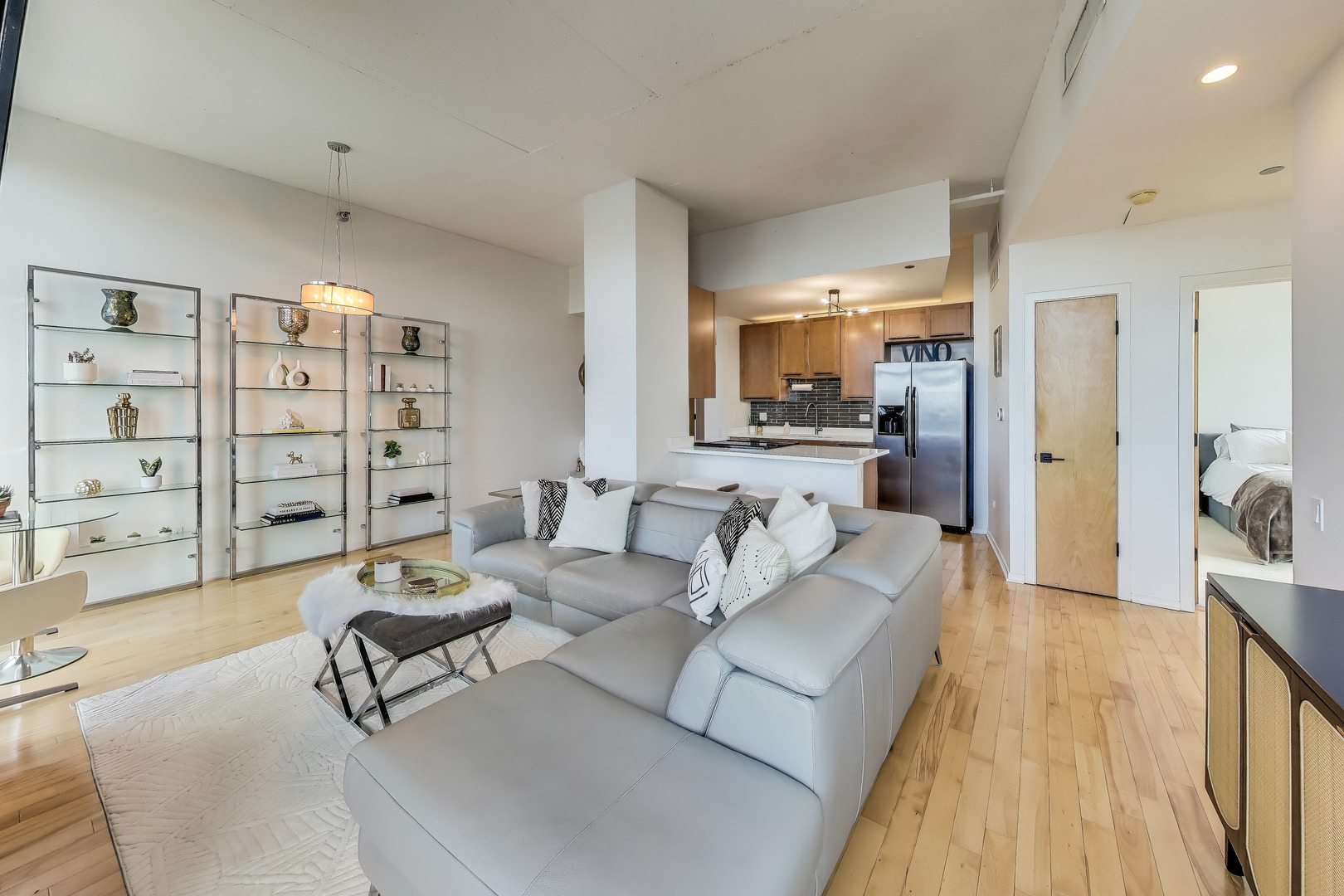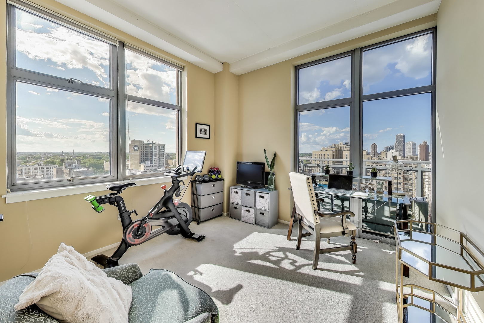 Enjoy sweeping skyline and lake views from this bright, top-floor, 2-bed, 2-bath corner condo at 1000 W Leland. The spacious living and dining area features floor-to-ceiling windows, hardwood floors, and a striking custom marble-surround fireplace that serves as the room’s focal point. Just off the living room, step onto the large private balcony for unobstructed northern city & lake views, perfect for relaxing or entertaining. The open layout flows into the updated kitchen with new white quartz countertops, black hardware, stainless steel appliances, an KitchenAid electric cooktop, and an island with seating. The primary suite includes floor-to-ceiling windows, a walk-in closet, and a stylish ensuite bath with a marble-accented walk-in shower and modern vanity. The bright second bedroom features large windows and can serve as a guest room, office, or workout space. A full guest bath, located on the opposite side of the unit for privacy, includes a tub/shower combo and updated finishes. Both baths and the primary bedroom have been freshly painted. Additional highlights include in-unit laundry with a stackable Bosch washer/dryer, carpet in the bedrooms, and multiple storage options. This boutique, pet-friendly building offers a fitness room, bike storage, package lockers, and a rooftop deck with panoramic views. One secured interior garage parking is included. Ideally located near shops, Target, Mariano’s, Aldi, restaurants, nightlife, and just blocks from Montrose Beach, lakefront trails, and Uptown’s iconic entertainment venues (with more on their way). Convenient access to the newly re-opened CTA Red Line stations and express buses makes commuting easy!