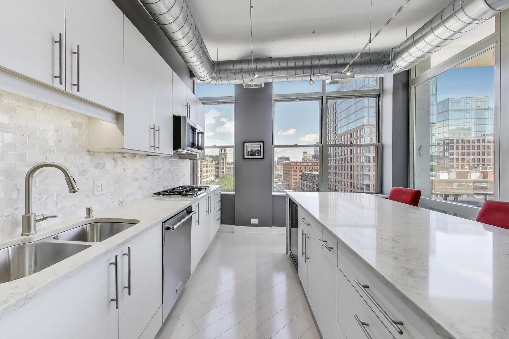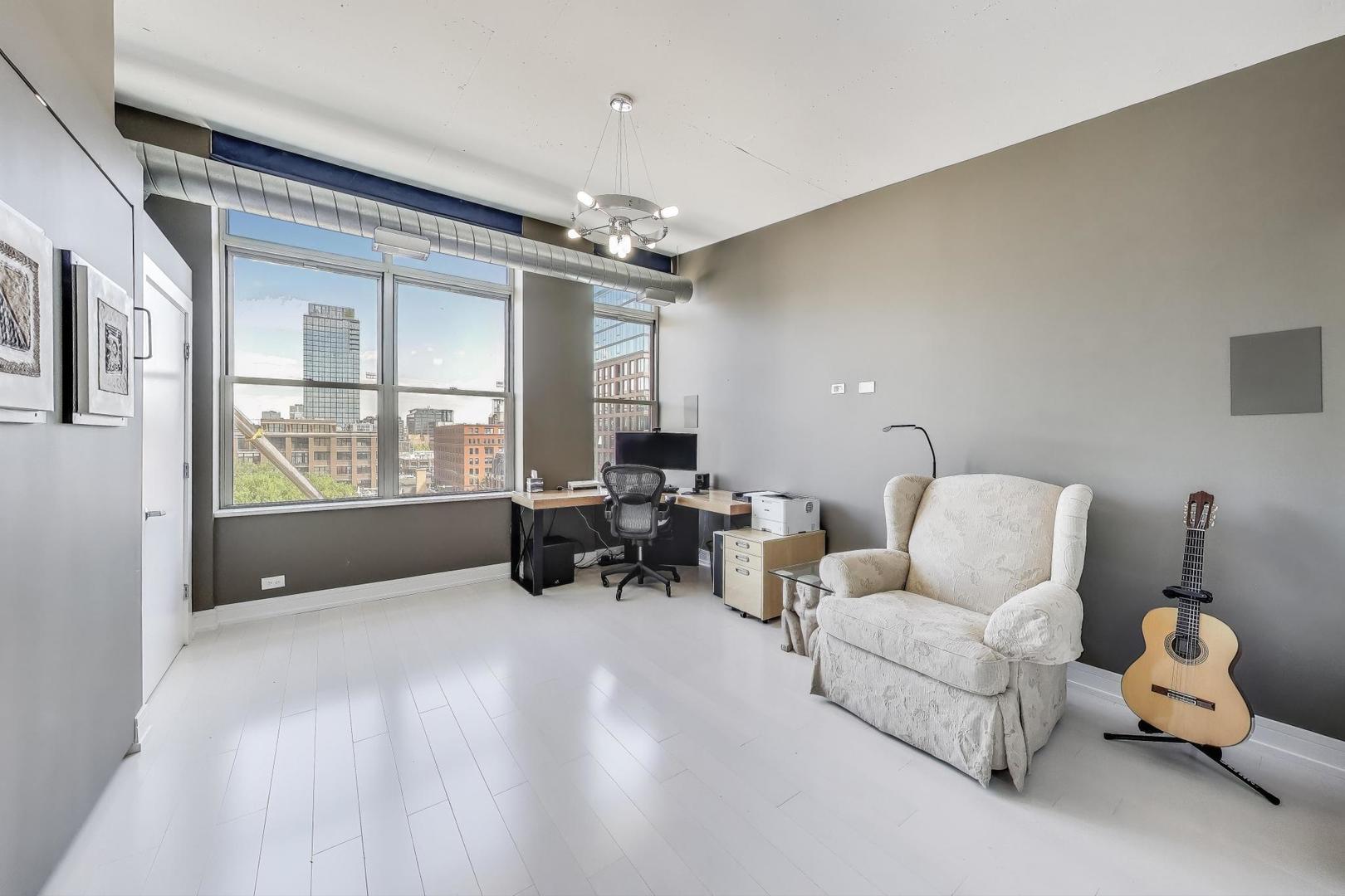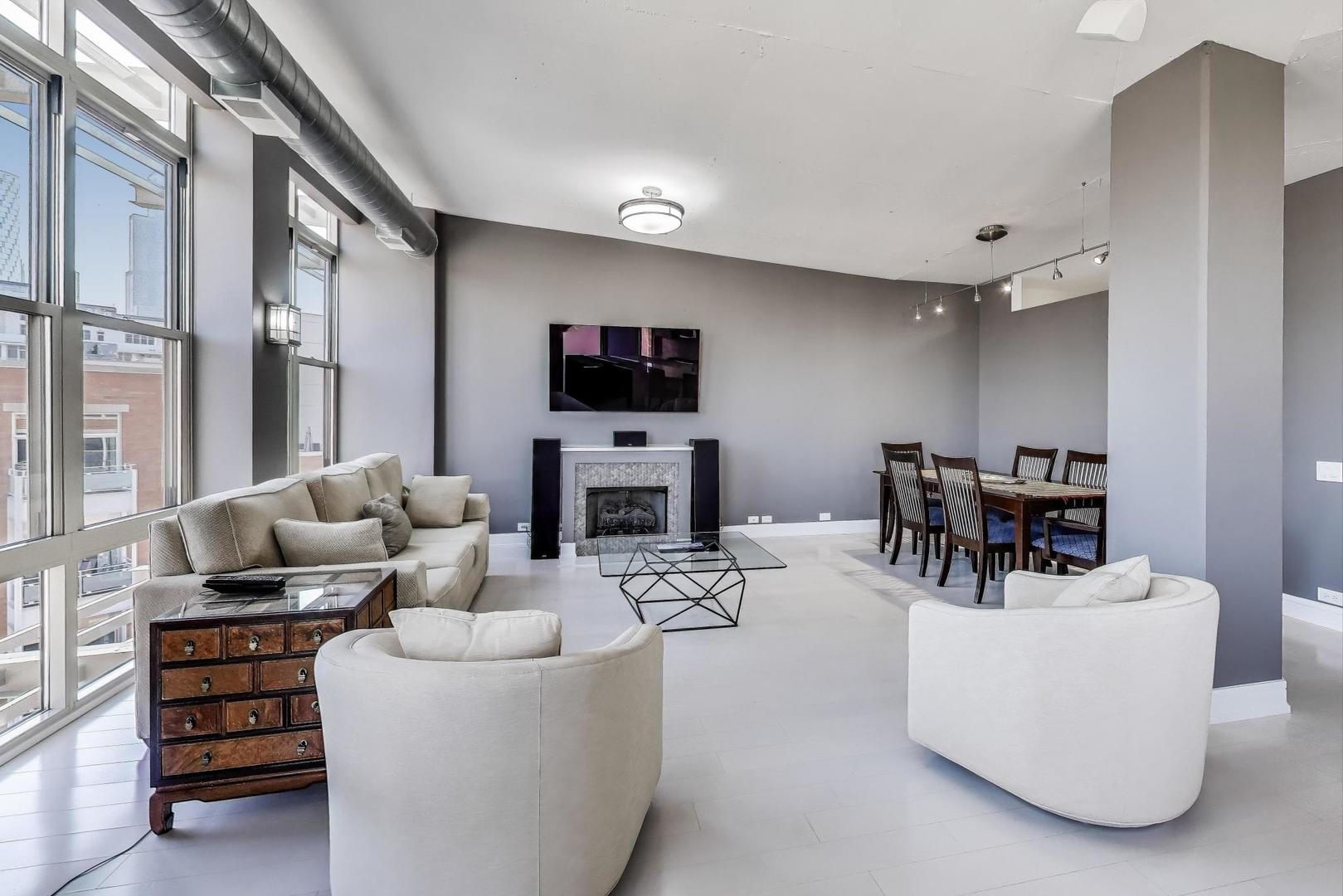 Exceptional West Loop corner penthouse — centrally located to the best of West Loop and walkable to Fulton Market, Downtown, Metra station, and CTA. Easy walk to Bartelme Park and Skinner Park. A 5-block drive to both I90 and I290. Great views of West Loop / downtown from all rooms. Floor-to-ceiling windows allow tons of natural light and highlight the penthouse experience. Remodeled by the current owner. No expense was spared. Generous bedroom sizes, open layout. Bedrooms located away from the living space — making this oversized 2400 sqft condo live like a single-family home. Walk-in pantry, hardwood flooring, grilling balcony off kitchen and high ceilings. The kitchen features contemporary cabinets, high-end appliances and an oversized kitchen island for storage, prep and entertaining — open to the living/dining area. Primary bedroom suite features a luxurious ensuite bath and a custom designed and appointed walk-in closet (large enough for 2 persons to share). Separate glass enclosed shower, huge whirlpool tub and double vanity highlight the spa-like bath. The primary bedroom is spacious, light-filled and features beautiful views of West Loop. The 2nd bedroom is generous in size, features tons of closet space, built-in shelving, and a murphy bed. 3rd bedroom (recently added back) perfect for guest room or office. Extra half bath near the entryway for guests/entertaining. Two balconies, two fireplaces and a separate laundry room with door. Surround sound speakers throughout. Additional huge 9’x8′ private storage room conveniently located in the garage. Premium extra wide deeded (accessible) parking space inside heated garage ($50,000 additional). Well-equipped exercise room and spacious outdoor common deck round out the amenities. Starbucks retail located in the building.