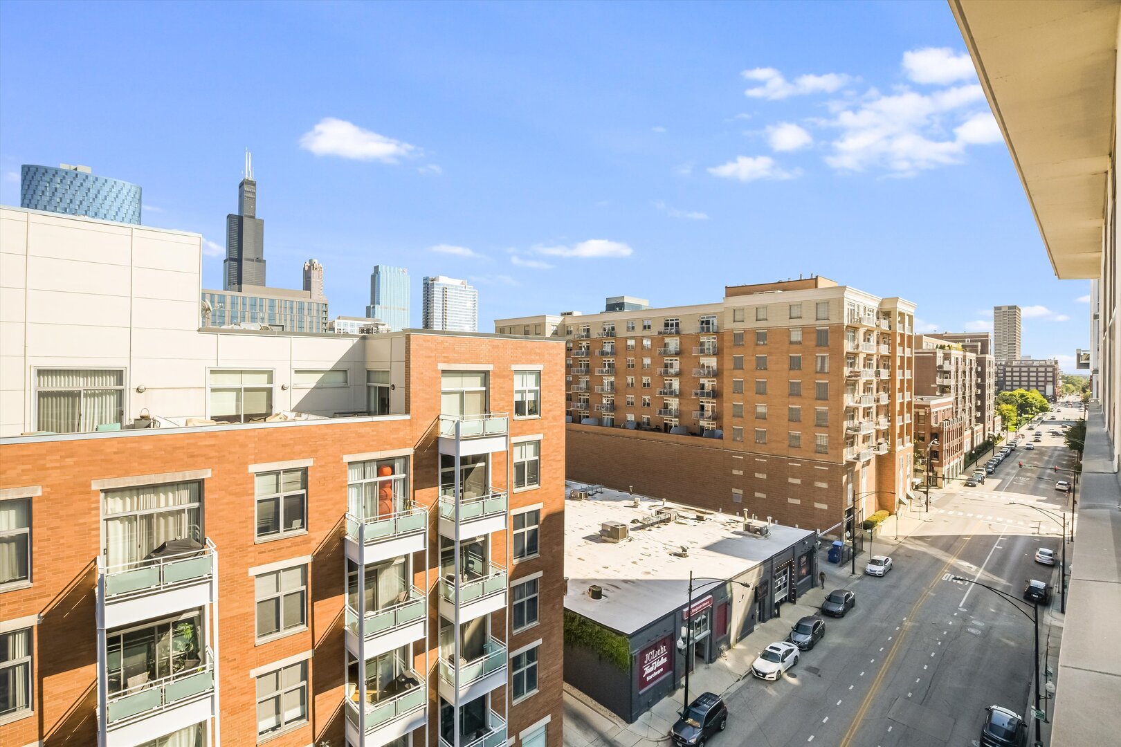 Welcome home to your new 2 bedroom, 2 bathroom condo! Bright, quiet, and filled with natural light, this top-floor condo offers high ceilings, a fireplace, and floor-to-ceiling windows framing stunning skyline views. The open living space flows seamlessly into the updated kitchen with shaker cabinetry, quartz countertops, stylish backsplash, and newer stainless steel appliances. The spacious primary suite comfortably accommodates a king bed plus a home office or workout area. The en-suite bath features a walk-in shower and dual vanities. A fully enclosed second bedroom provides flexibility for a guest room, office, or nursery. Step outside to your private covered balcony, perfect for relaxing, taking in the views at the end of the day, or grilling and entertaining. Enjoy full-amenity living at its finest with a large fitness center, common area sun deck with picnic tables, and an on-site Starbucks. Heated garage parking is included in the price. Unbeatable location convenient to transit, with the 20 bus stop right outside your front door, and just steps away from world-class dining, shopping and parks in West Loop and Fulton Market. Schedule your tour today!