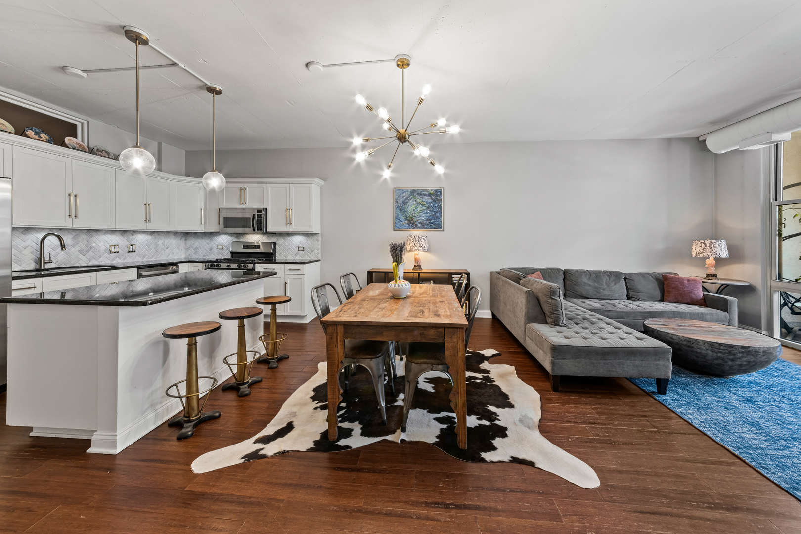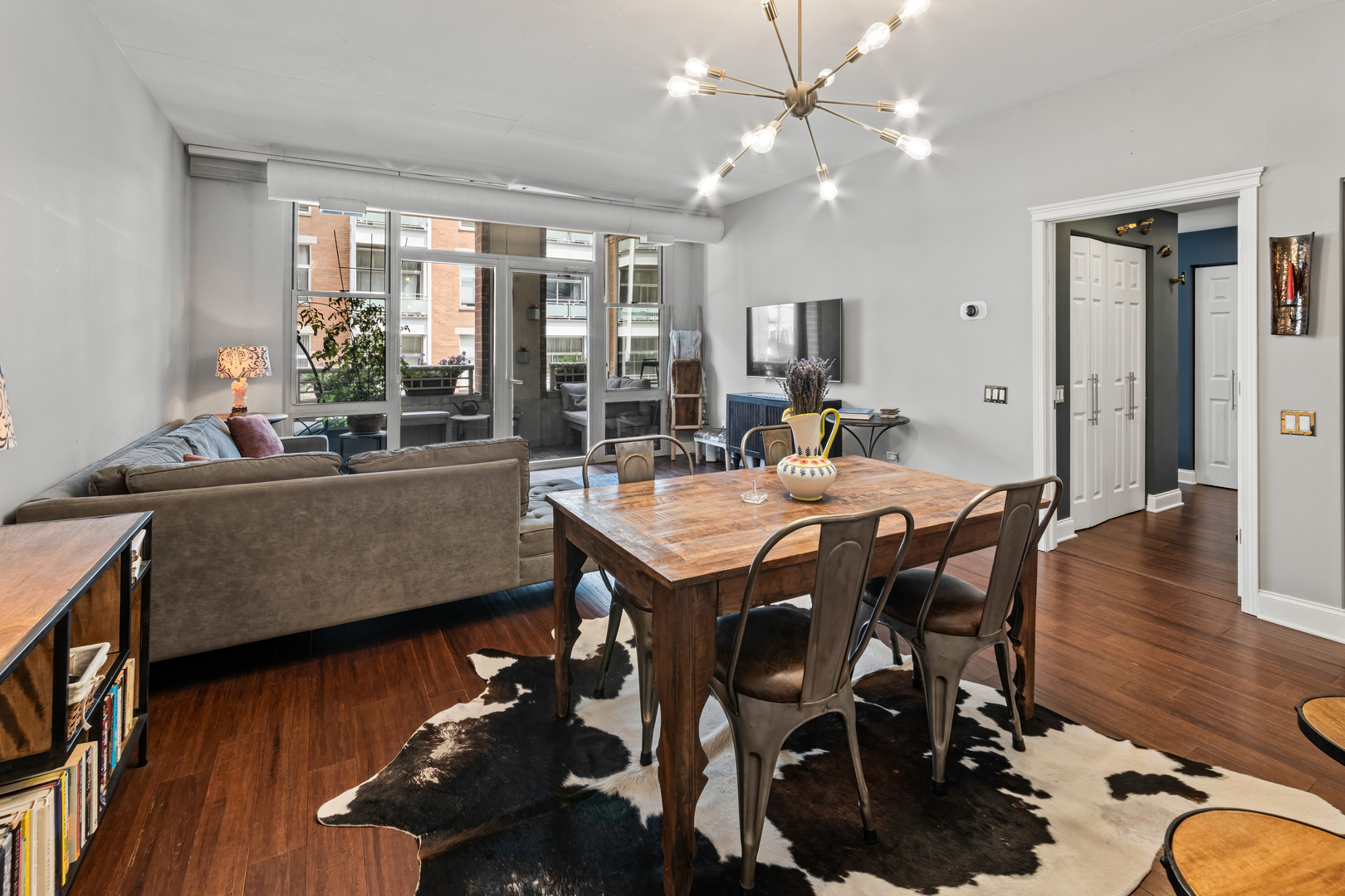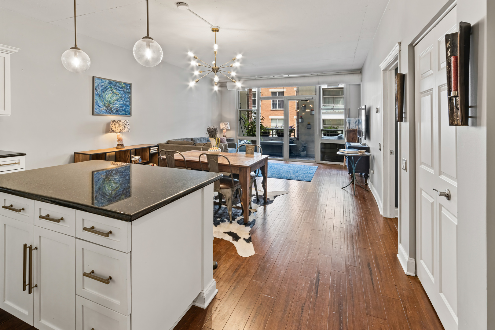 Welcome to your new home in the heart of the vibrant West Loop! This oversized 2-bedroom, 2-bathroom condo offers an ideal blend of space, style, and location. Step into an expansive open-concept living area featuring a beautifully upgraded kitchen with shaker cabinetry, marble backsplash, stainless steel appliances, and an abundance of counter space-perfect for both everyday cooking and entertaining. The kitchen seamlessly flows into a spacious dining area and an extra-wide living room that opens directly to a private, charming outdoor space. The generous primary suite easily fits a king-sized bed with nightstands and includes a sunlit office nook overlooking the private patio. Enjoy exceptional storage with four custom closets, including a walk-in. The en-suite primary bathroom boasts a double vanity and a sleek walk-in shower. The second bedroom is thoughtfully positioned across the unit for added privacy and is fully enclosed. Additional highlights include wide-plank hardwood floors throughout, in-unit washer and dryer, a large pantry, and garage parking available($30,000). Residents of this well-maintained building enjoy access to a fitness center and a shared terrace ideally located directly across the hall from this unit-perfect for relaxing or entertaining. Don’t miss this opportunity to live in one of Chicago’s most sought-after neighborhoods, steps from world-class dining, shopping, parks, and public transit.