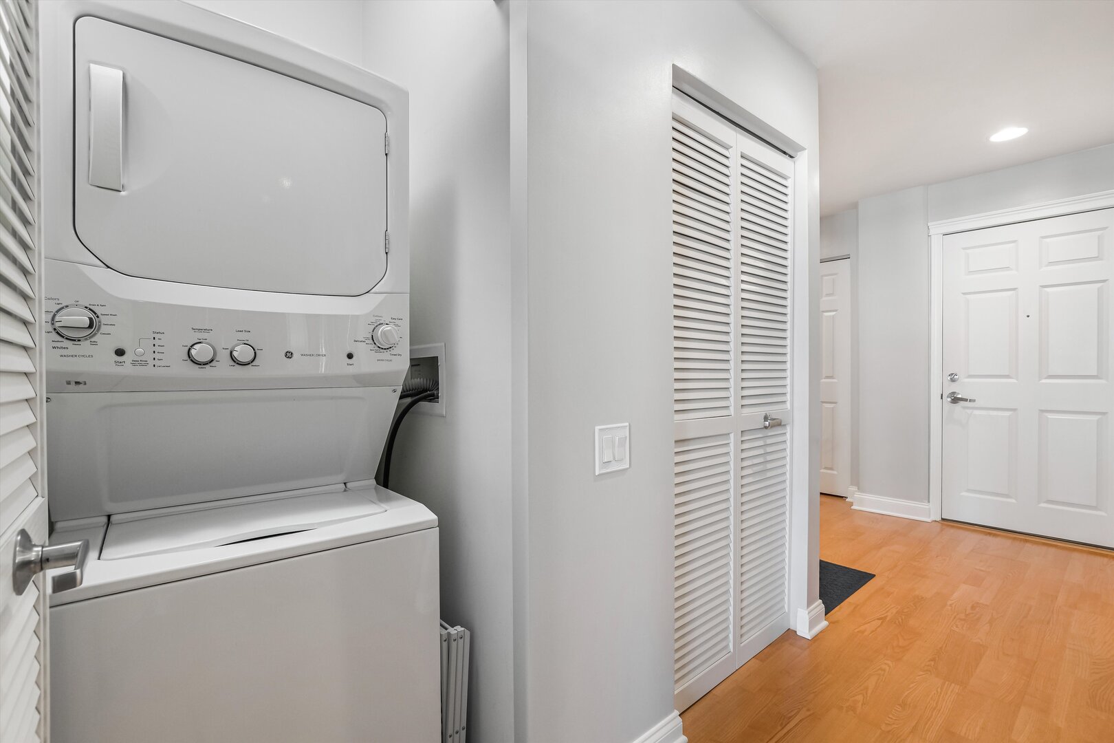 Welcome home to your new 2 bedroom, 2 bathroom condo! Bright, quiet, and filled with natural light, this top-floor condo offers high ceilings, a fireplace, and floor-to-ceiling windows framing stunning skyline views. The open living space flows seamlessly into the updated kitchen with shaker cabinetry, quartz countertops, stylish backsplash, and newer stainless steel appliances. The spacious primary suite comfortably accommodates a king bed plus a home office or workout area. The en-suite bath features a walk-in shower and dual vanities. A fully enclosed second bedroom provides flexibility for a guest room, office, or nursery. Step outside to your private covered balcony, perfect for relaxing, taking in the views at the end of the day, or grilling and entertaining. Enjoy full-amenity living at its finest with a large fitness center, common area sun deck with picnic tables, and an on-site Starbucks. Heated garage parking is included in the price. Unbeatable location convenient to transit, with the 20 bus stop right outside your front door, and just steps away from world-class dining, shopping and parks in West Loop and Fulton Market. Schedule your tour today!