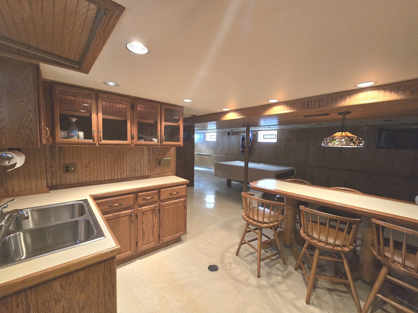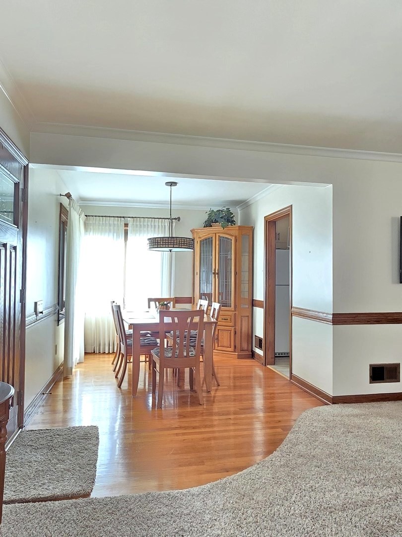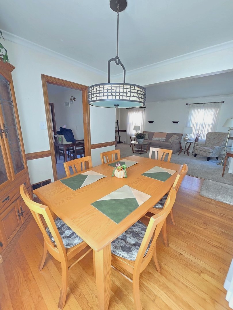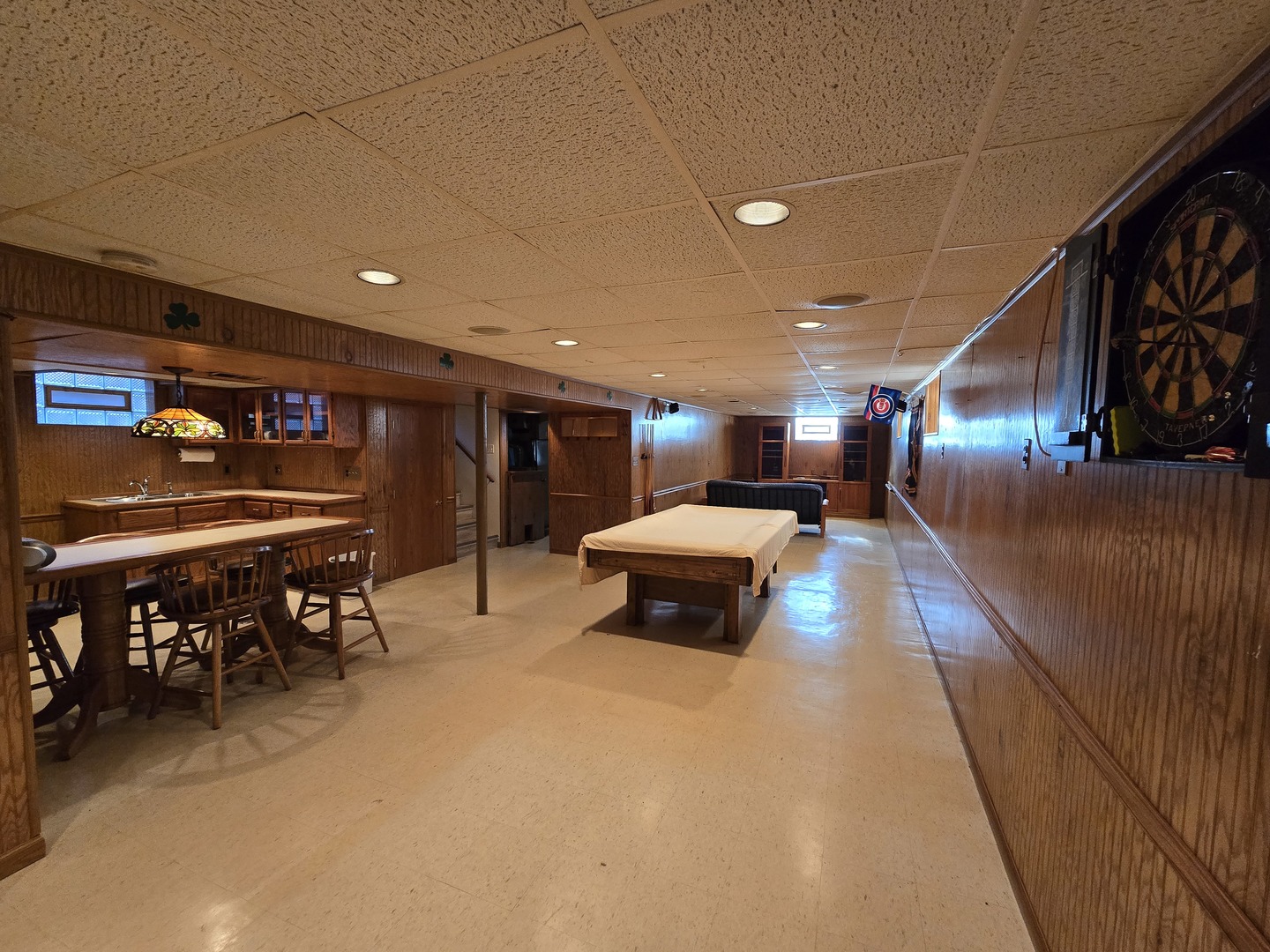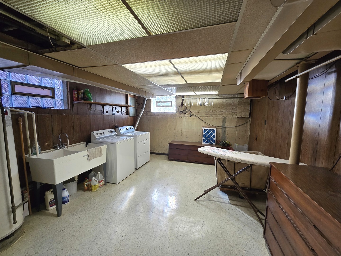 !!!First time on the Market in Over 40 years. This well maintained home is conveniently located behind Beverly Park and within walking distance to St. John Fisher Catholic School. You will enjoy 3 spacious bedrooms all on the main level and a very large living room. The kitchen and main floor bathroom have been updated within the last 10 years. The kitchen includes newer floors, cabinets, a dishwasher and modern backsplash; there is even a separate dining room for a formal dining table. The entire home features immaculate wood trim and wood doors throughout, ceiling fans in all the bedrooms and updated windows with window treatments. In the finished basement, you will find an extremely large laundry room with a laundry chute that connects to the primary bedroom. Several of the areas in the basement are sectioned off, one such section contains a built in desk for a readymade office. Another section contains a kitchen area complete with a sink, cabinets and countertop; there is room for a refrigerator and is perfect for entertaining. There is also a full bathroom and another room for storage. Currently in the large open space of the basement, you will find a pool table, which is included with the sale. The basement also features both a backwater valve and sump pump for extra protection. Outside you will follow the beautifully laid pavers to the 2-car garage made of brick, all of which is surrounded by a wooden fence. This house is being sold as-is and some furniture may be negotiated in with the sale.