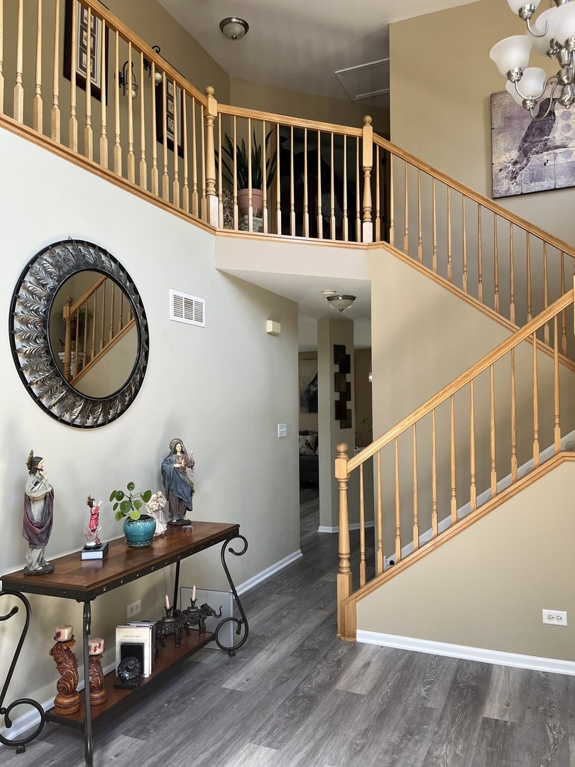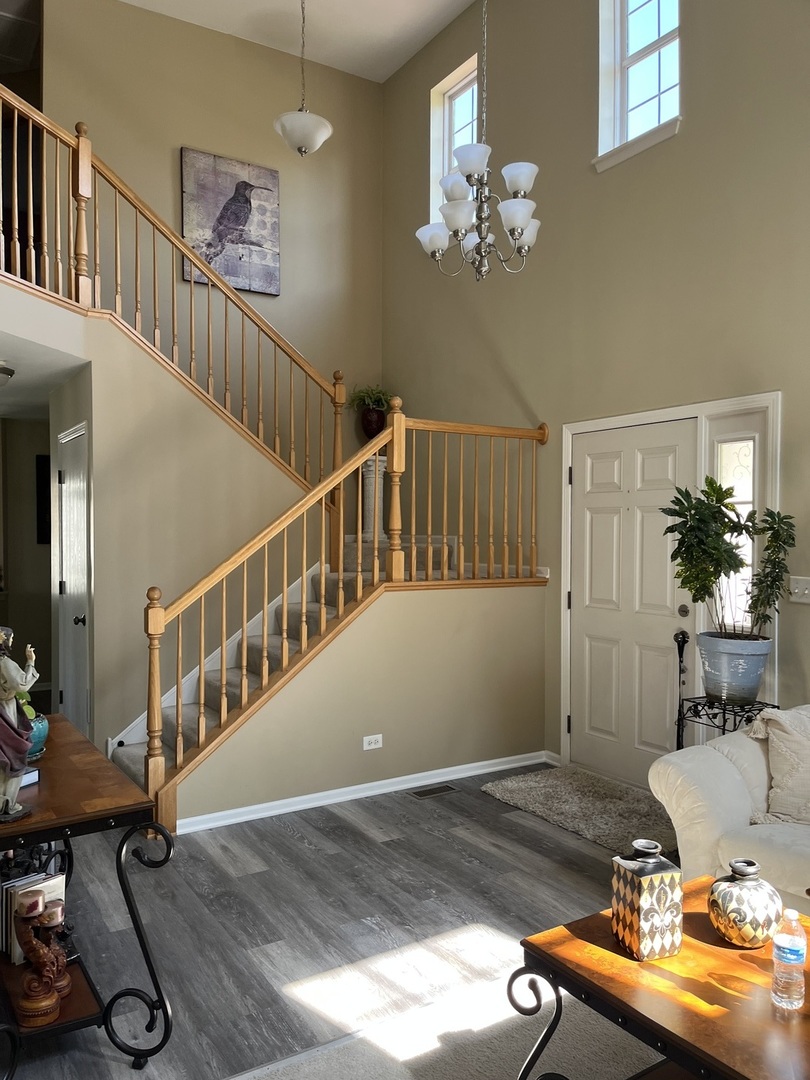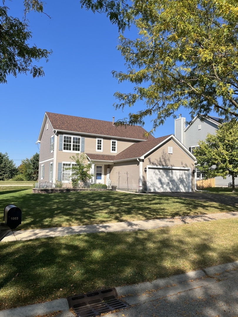 Welcome to 1003 Plaintain Drive – now priced to sell quickly! This beautiful 3-bedroom, 2.5-bathroom home for sale in West Joliet offers an open and functional floor plan filled with natural light. The main level features an impressive two-story foyer that brightens the entire home and highlights its elegant design. A separate living room and dining room create formal entertaining spaces, while the dining room connects directly to the kitchen. The kitchen with stainless steel appliances and an eat-in area flows seamlessly into the family room-perfect for gatherings, entertaining, or everyday living. A conveniently located half bath, laundry room, and basement access complete the first floor. The laminate flooring was installed last year, adding a fresh, modern touch. A stunning staircase leads to the second floor, which overlooks the sunlit foyer and living room. Upstairs, you’ll find the three bedrooms and two full bathrooms. The primary suite offers vaulted ceilings, double doors, two closets, and a private ensuite bathroom. The home also includes a large partial unfinished basement, currently set up as a home-theater and gym, offering plenty of potential for customization. Additional features include a two-car garage and a spacious backyard ready to be enjoyed. The roof was replaced just three years ago, giving peace of mind and lasting durability. The neighborhood is scenic and welcoming, with mature trees and access to a private clubhouse featuring a pool, tennis courts, and playgrounds. Located in the highly rated Minooka District 201 schools, with affordable taxes and HOA dues, this home is an incredible value. Ideally situated west of Route 59 and just minutes from I-55, this property combines comfort, convenience, and community. Perfect for first-time homebuyers, downsizers, or anyone looking for a beautiful home in Joliet at an affordable price. Don’t miss out-schedule your private tour today!