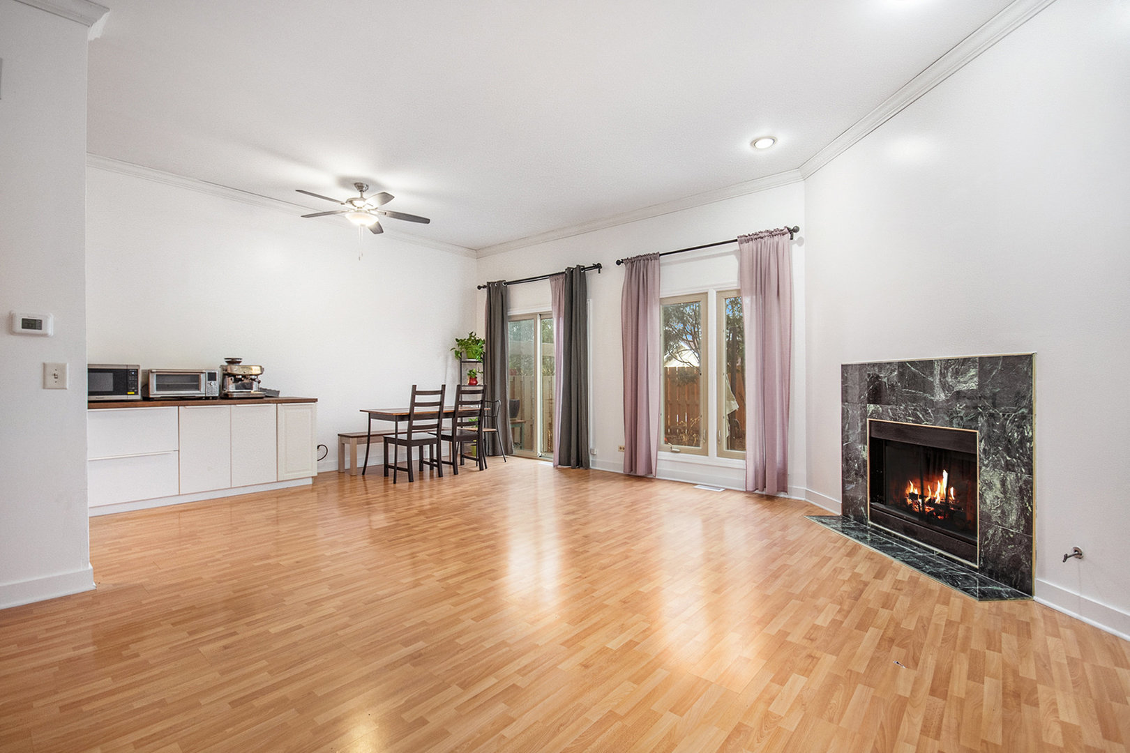 Sun-filled and beautifully maintained, this spacious townhome offers the perfect blend of comfort, functionality, and location in a highly desirable community. The main level features an open-concept layout with 10-foot ceilings, a bright living and dining area, and a cozy fireplace-ideal for both everyday living and entertaining. Sliding glass doors open to a private outdoor space, perfect for relaxing or enjoying warm-weather evenings. The kitchen flows seamlessly into the living area and provides ample cabinetry and counter space for daily use. Upstairs, you will find three generously sized bedrooms, including a private primary suite with a walk-in closet and an ensuite bathroom featuring a soaking tub and separate shower. Convenient second-floor laundry enhances everyday ease. A full unfinished basement offers endless potential for future living space, a home office, or a home gym. The attached 2-car garage is equipped with an electric vehicle charging outlet, a valuable and increasingly sought-after feature for today’s buyers. Additional guest parking is available throughout the community. Ideally located with quick access to I-90, this home is just minutes from the Metra station, Woodfield Mall, O’Hare Airport, parks, shopping, dining, and everyday conveniences. This home offers a rare combination of space, practicality, and modern functionality in one of Mount Prospect’s most convenient neighborhoods.