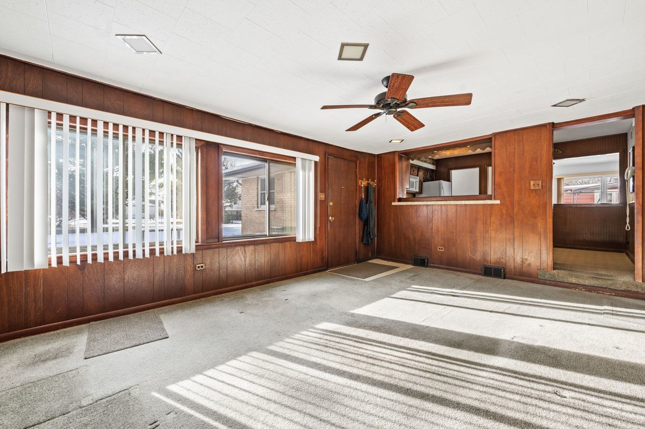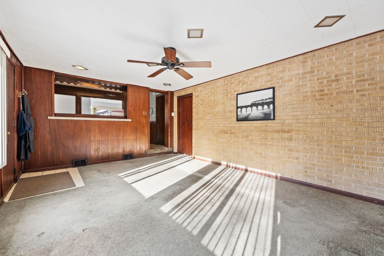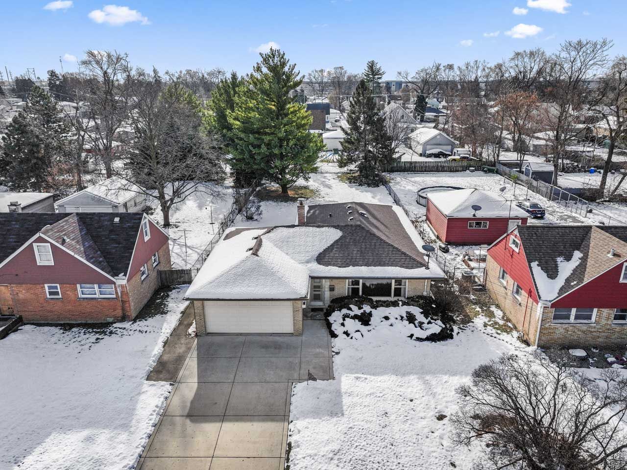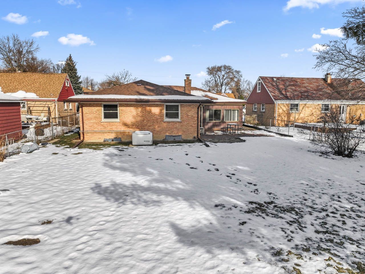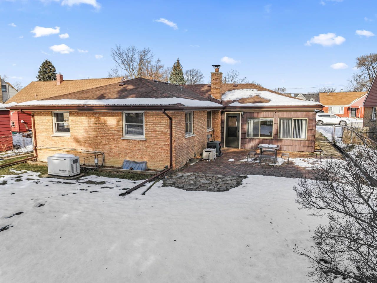 Welcome to 10113 W Palmer, this solid, well-maintained brick ranch and the great neighborhood! Spacious and charming, this home offers 3 bedrooms and 1 full bath, with an extra bedroom/office in the basement. The kitchen has dining space with a pass-through window to the family room, and the family room opens to a brick paver patio…. ready for BBQs! There are oak hardwood floors throughout the living room, dining room, and bedrooms. The full basement- which adds lots of space for hobbies, fitness equipment, or just relaxing- includes a unique, original log cabin-style rec room with a bar, perfect for entertaining. The attached garage offers the ease of coming and going while protected from weather, as well as extra storage. There’s a huge fenced yard: 60′ by 186′! And you’ll enjoy peace of mind with the 14KW whole-house generator that provides ample power during storms or outages, and an active alarm system. Additional major updates have already been completed: new roof with ice dam shield in 2025; new furnace 2021; new A/C 2021. Close to shopping, dining, and everyday conveniences-this home truly has it all. This home is not located in any flood zones.