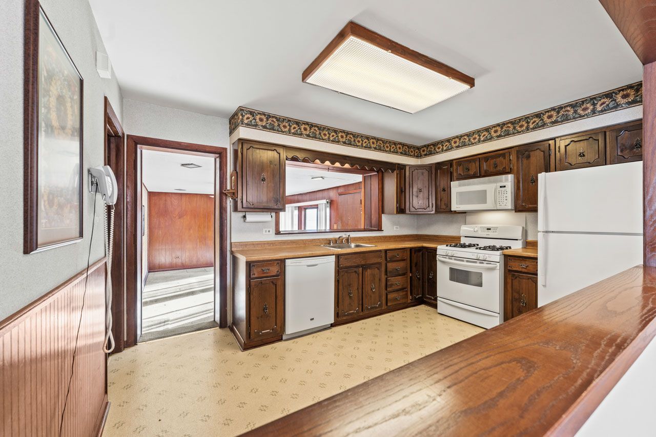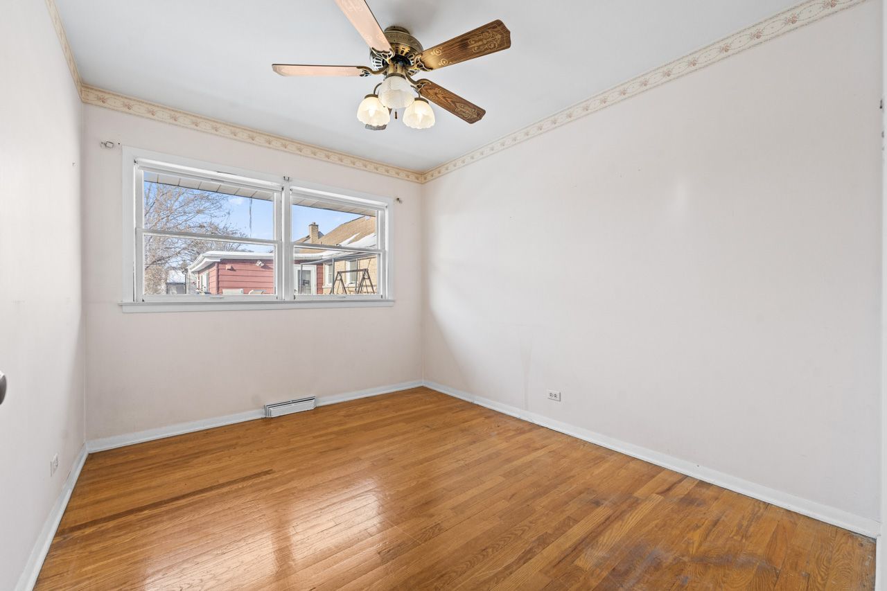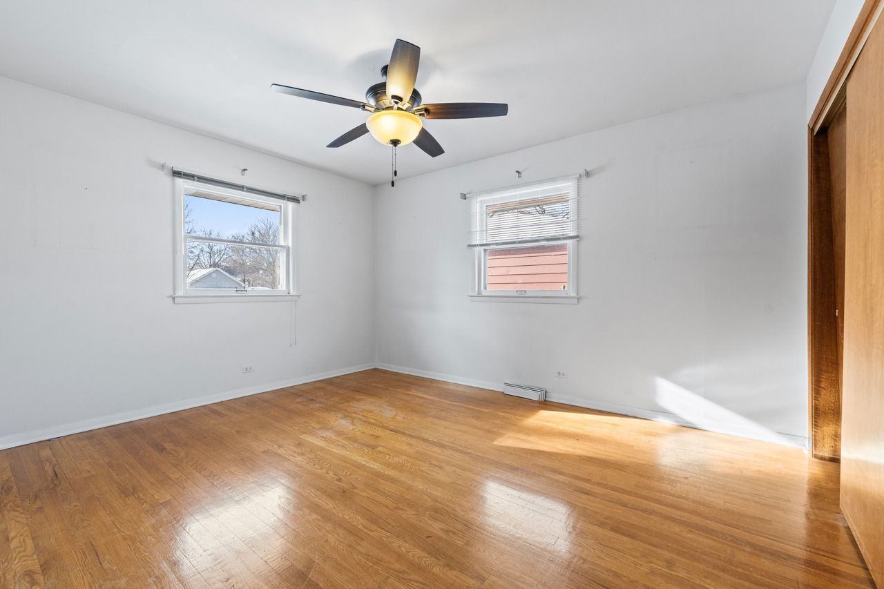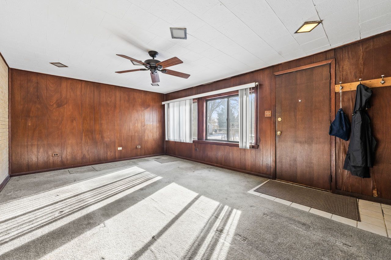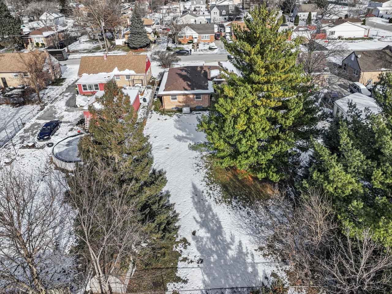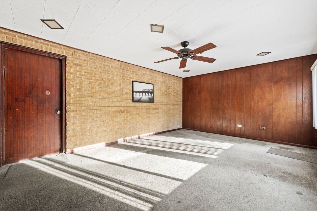 Welcome to 10113 W Palmer, this solid, well-maintained brick ranch and the great neighborhood! Spacious and charming, this home offers 3 bedrooms and 1 full bath, with an extra bedroom/office in the basement. The kitchen has dining space with a pass-through window to the family room, and the family room opens to a brick paver patio…. ready for BBQs! There are oak hardwood floors throughout the living room, dining room, and bedrooms. The full basement- which adds lots of space for hobbies, fitness equipment, or just relaxing- includes a unique, original log cabin-style rec room with a bar, perfect for entertaining. The attached garage offers the ease of coming and going while protected from weather, as well as extra storage. There’s a huge fenced yard: 60′ by 186′! And you’ll enjoy peace of mind with the 14KW whole-house generator that provides ample power during storms or outages, and an active alarm system. Additional major updates have already been completed: new roof with ice dam shield in 2025; new furnace 2021; new A/C 2021. Close to shopping, dining, and everyday conveniences-this home truly has it all. This home is not located in any flood zones.