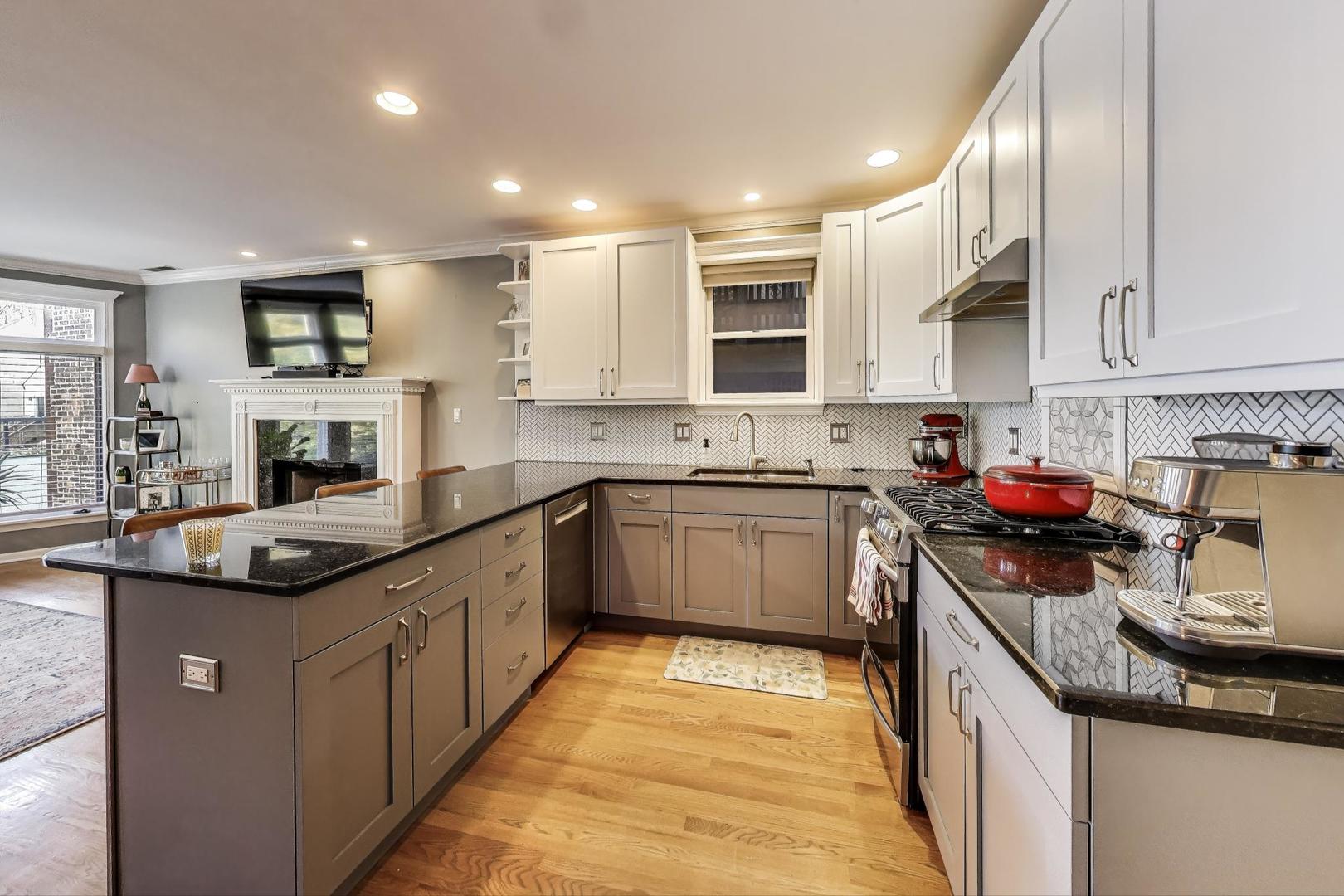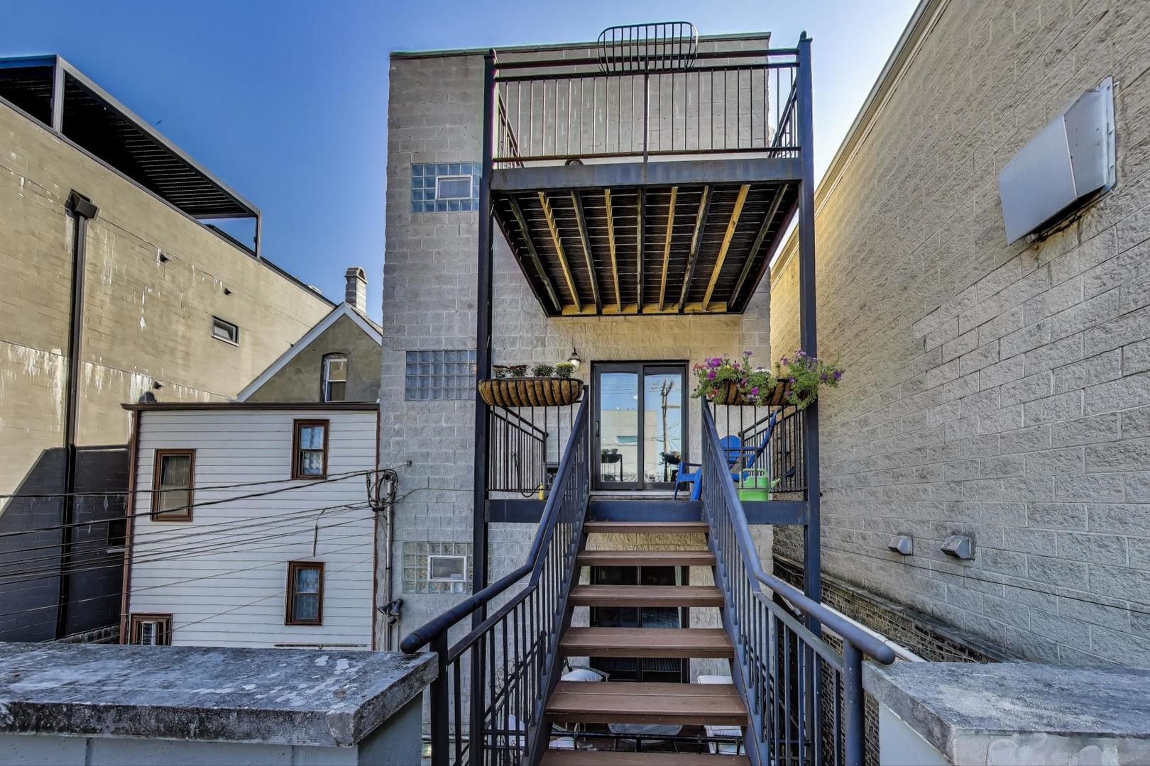 Set in the heart of East Village, this 2 bed, 2 bath condo pairs smart design with city living at its best. The open concept kitchen, living, and dining space is anchored by oversized windows and a cozy gas fireplace, with plenty of room for a large sectional, dining table, and a breakfast bar for casual meals. Tucked away at the back of the home, the primary suite is a true retreat with a walk-in closet fitted with an Elfa system and an en suite bath. Sliding doors open directly to your private balcony AND private garage rooftop deck-recently upgraded with Trex decking, a pergola, and a gas line for effortless grilling. A second bedroom, full guest bath, in-unit laundry, and generous storage (including a large in-unit storage closet and a dedicated basement storage room) round out the interior. Garage parking is included, though you may find yourself walking everywhere. Division Street’s restaurants and shops are just to the north, Chicago Avenue’s offerings to the south, and Kasama’s legendary breakfast sandwich is only a short stroll away.