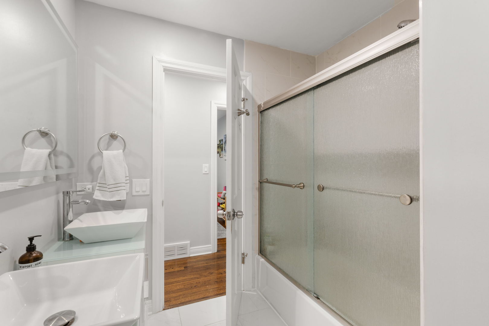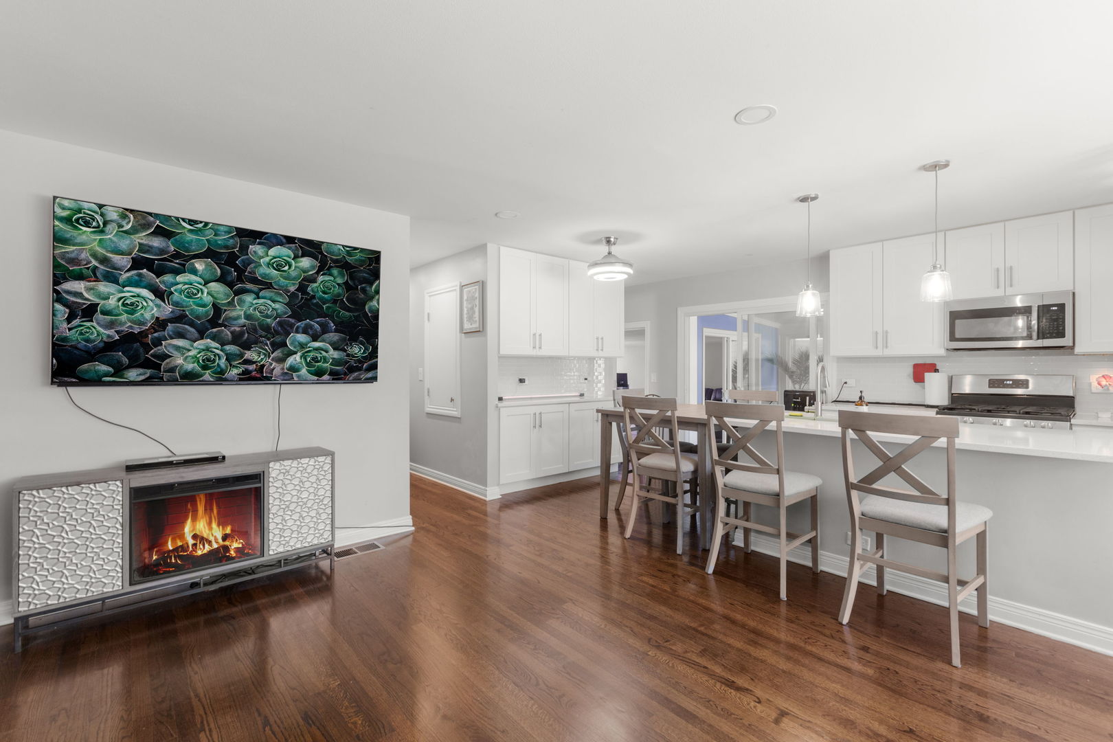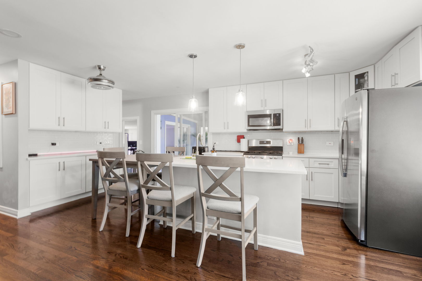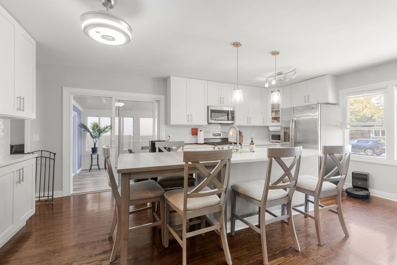 Welcome to this beautifully rehabbed 4-bedroom, 2-bath single-family home located in the heart of Northbrook. Offering a seamless blend of modern upgrades and timeless charm, this home is a true gem. Step inside to discover a spacious open layout, featuring refinished hardwood floors throughout and an abundance of natural light that flows into every room. The gourmet kitchen is a standout with sleek quartz countertops, brand-new stainless steel appliances, and upgraded cabinetry. The elegant glass subway tile backsplash adds a touch of sophistication, while the breakfast bar provides the perfect spot for casual dining or entertaining. Adjacent to the kitchen, the inviting family room offers a cozy space to relax and unwind, with easy access to the large, fully finished basement. Entertaining is a breeze in the newly added dining room. Three bedrooms and and a full bath with dual vanities are located down the main hallway. The versatile lower level includes an additional bedroom and bathroom, a spacious den, plenty of storage, and a huge entertainment area – ideal for hosting family and friends. The home also boasts new windows throughout, ensuring energy efficiency and year-round comfort. Step outside and enjoy the new maintenance free deck with direct access to the local bike path, perfect for a quick ride to nearby Skokie Blvd. for shopping, dining, and more – including Mariano’s and Trader Joe’s! A new asphalt driveway offers ample parking. With a prime location, award winning schools, stunning updates, and ample living space, this home is truly a must-see.