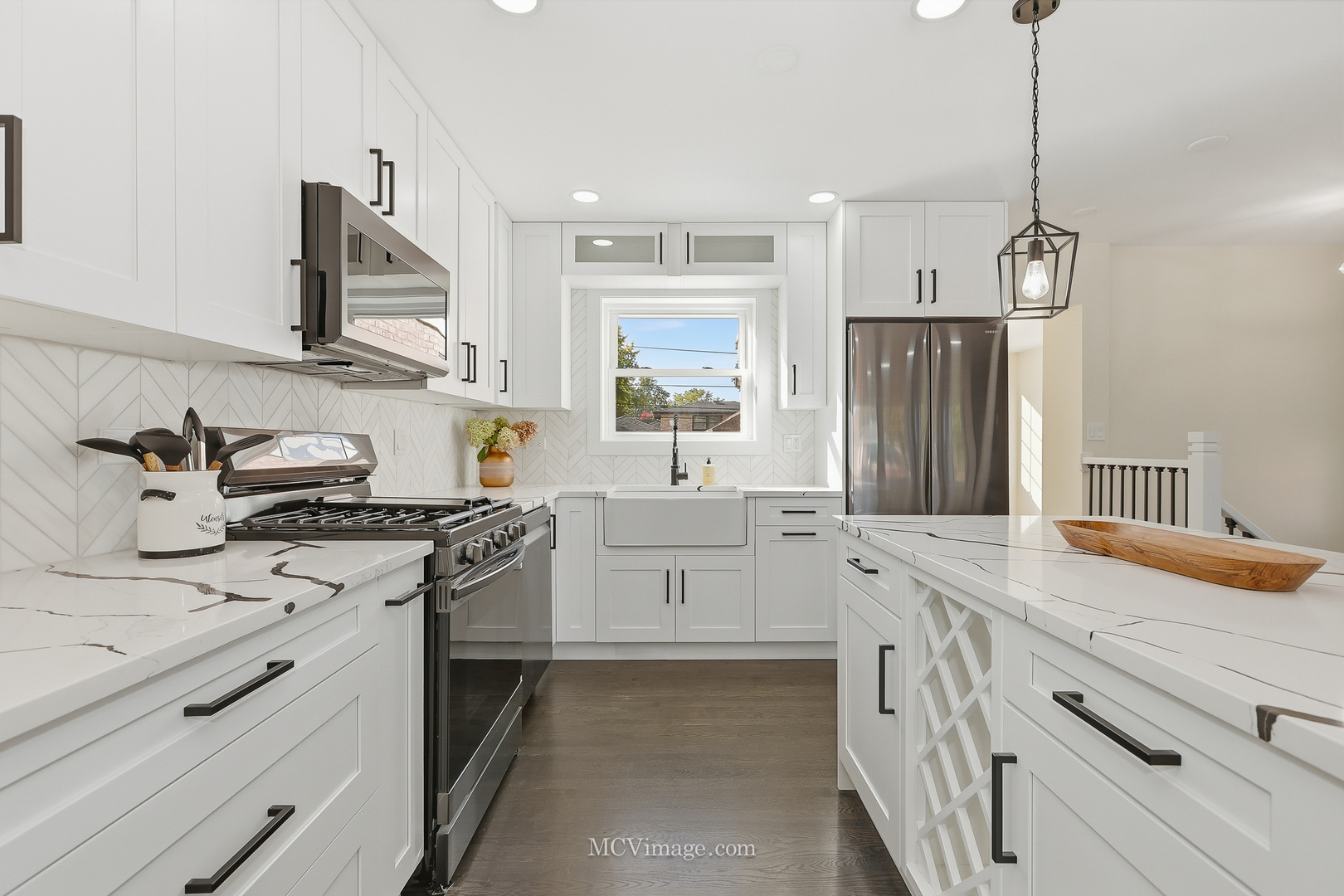 Live effortlessly in this gorgeous remodeled 5-bedroom, 4-bath home in the beautiful neighborhood of Evergreen Park. Plenty of room for multi-generational living, workspace, entertainment and room to spare. The main floor with hardwood flooring throughout features a sunny living room at the heart of the home with a cozy fireplace and open concept kitchen and dining. Black stainless appliances are a modern touch. Two bedrooms with a full main level bath and another additional flex space for work or play. The second story primary retreat with walk in closet and impressive ensuite bath, combines elegance and functionality. There are two additional bedrooms on this second floor with full bathroom and dual sinks. The finished basement is an expansive space left open to your imagination. A large cozy family room fit for a holiday party to remember or an exercise room with enough gym equipment to compete with that local membership. Too many options to list. In addition, a laundry and mechanical room, two storage spaces and yet another full bathroom that deserves to be seen with elegant finishes and plenty of space. Yet, there’s more. A tucked away area with plumbing already in place for a future wet bar, shampoo chair or a kitchenette. Feel at ease knowing the village has already completed the water service line replacement project at this address and will soon repair the parkway. Seller is offering a 1-year home warranty issued to you at closing. This home really has it all. We’d love for you to see it!