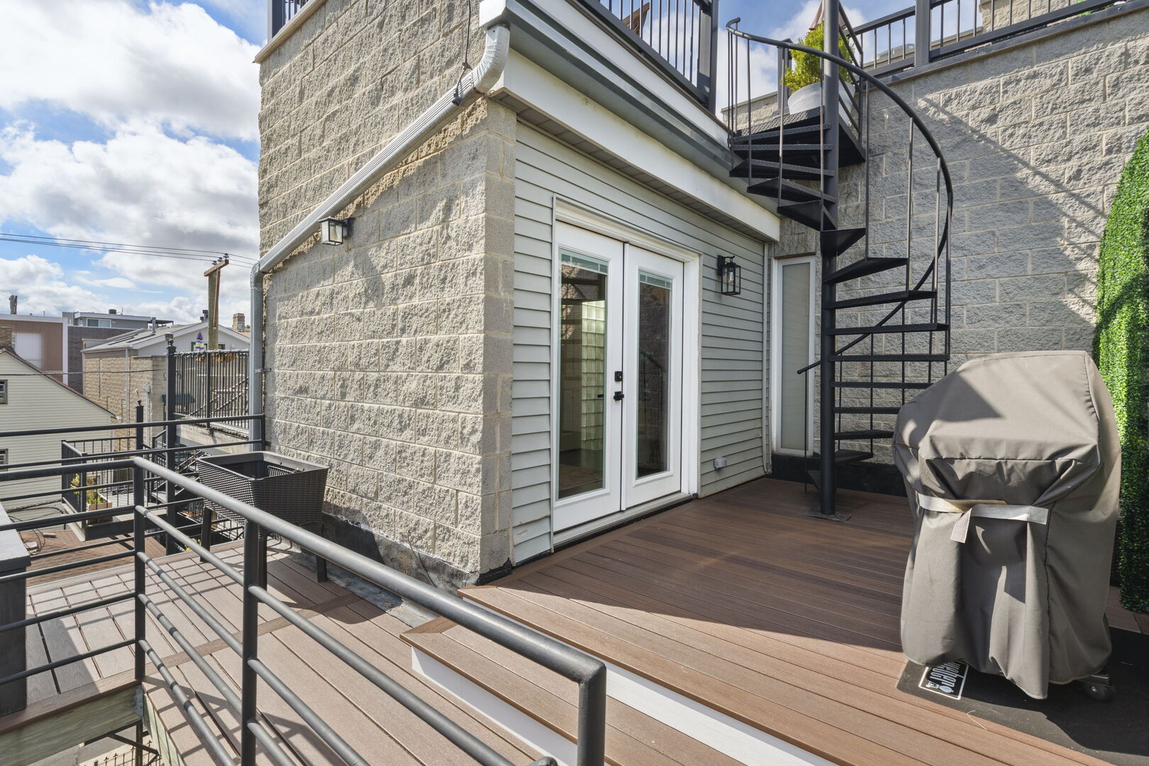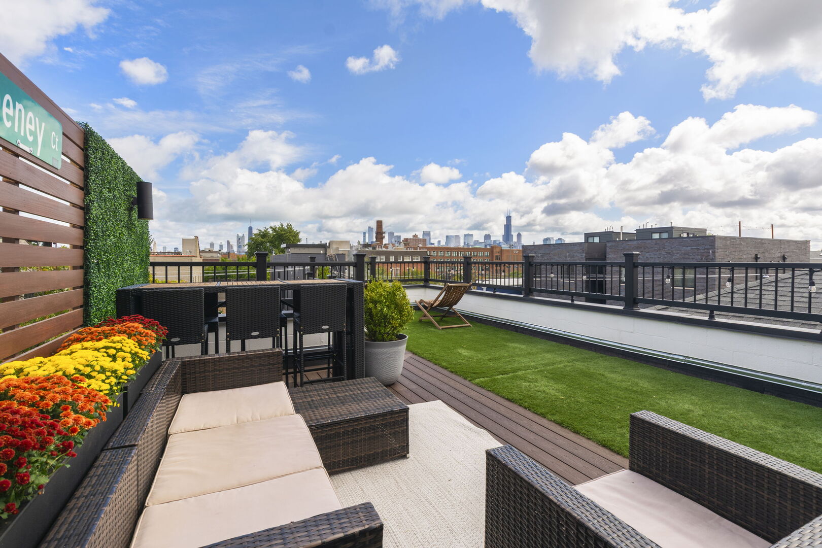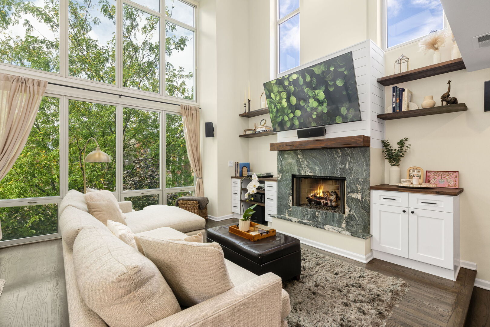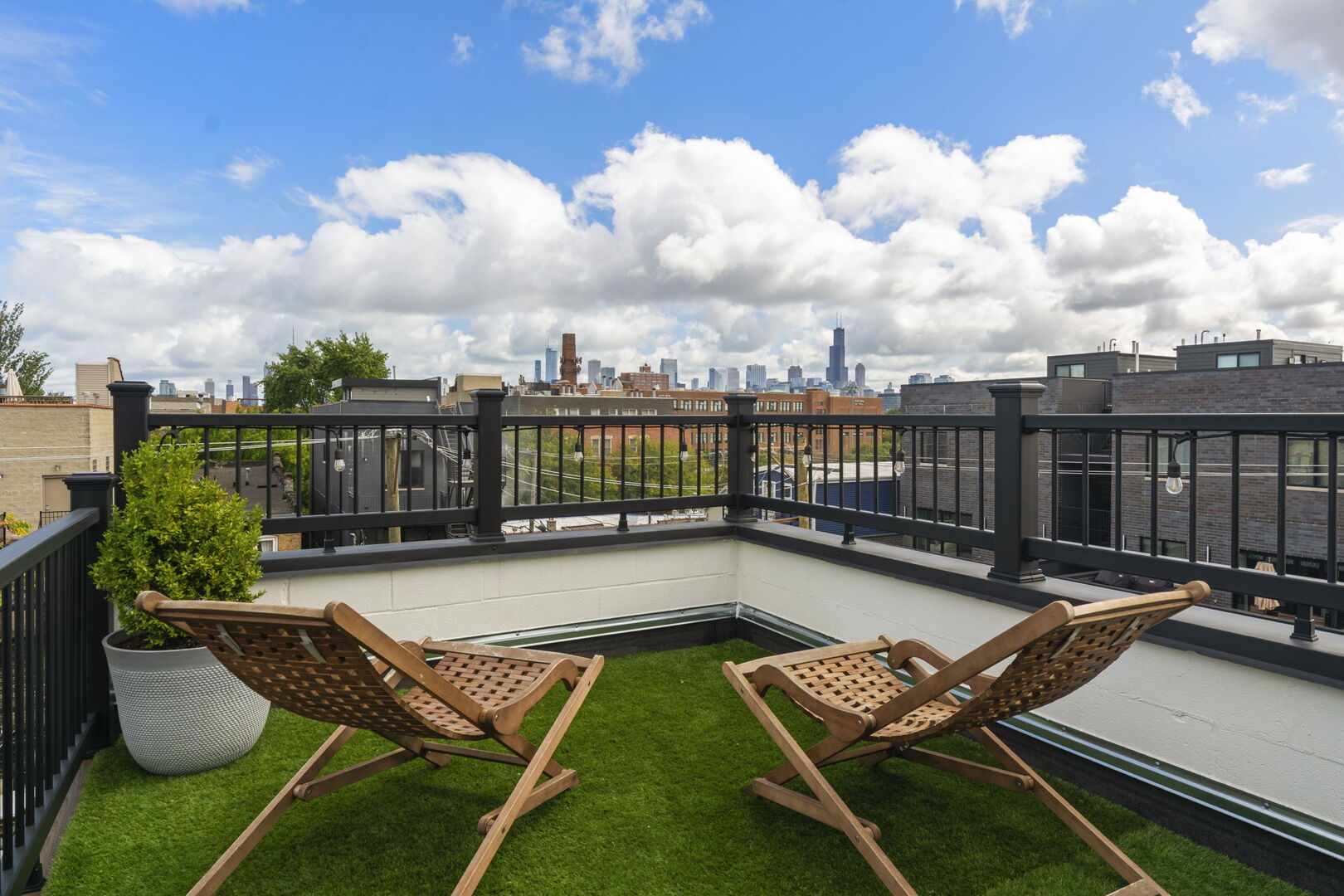 Live at the center of it all in this stunning duplex-up penthouse located in the heart of Wicker Park. This move-in ready, 3 bed, 2 bath home features a dramatic two-story living room with oversized windows, flooding the space with natural light and showcasing the open, airy layout with tree-top views. Living room has thoughtful built-ins maximizing storage including dry bar and 2 built-ins/shelving flanking the gas fireplace. Open kitchen features high-end appliances, island with breakfast bar, filtered water system & modern finishes. 2 bedrooms share newly redone bathroom on main level. Upstairs welcomes the gorgeous, completely renovated primary suite featuring high ceilings, custom built-in with quartz counters, ample closets. Beautiful primary bathroom features double sinks, glass shower, free standing tub and picture window highlighting the fantastic views. Enjoy two private outdoor spaces, including an ideal rooftop deck with jaw-dropping skyline views, perfect for entertaining or as your relaxing city oasis. 1 garage parking space included. Hardwood floors throughout. In-unit washer & dryer. Private entrance. Numerous updates throughout. Don’t miss this special home!