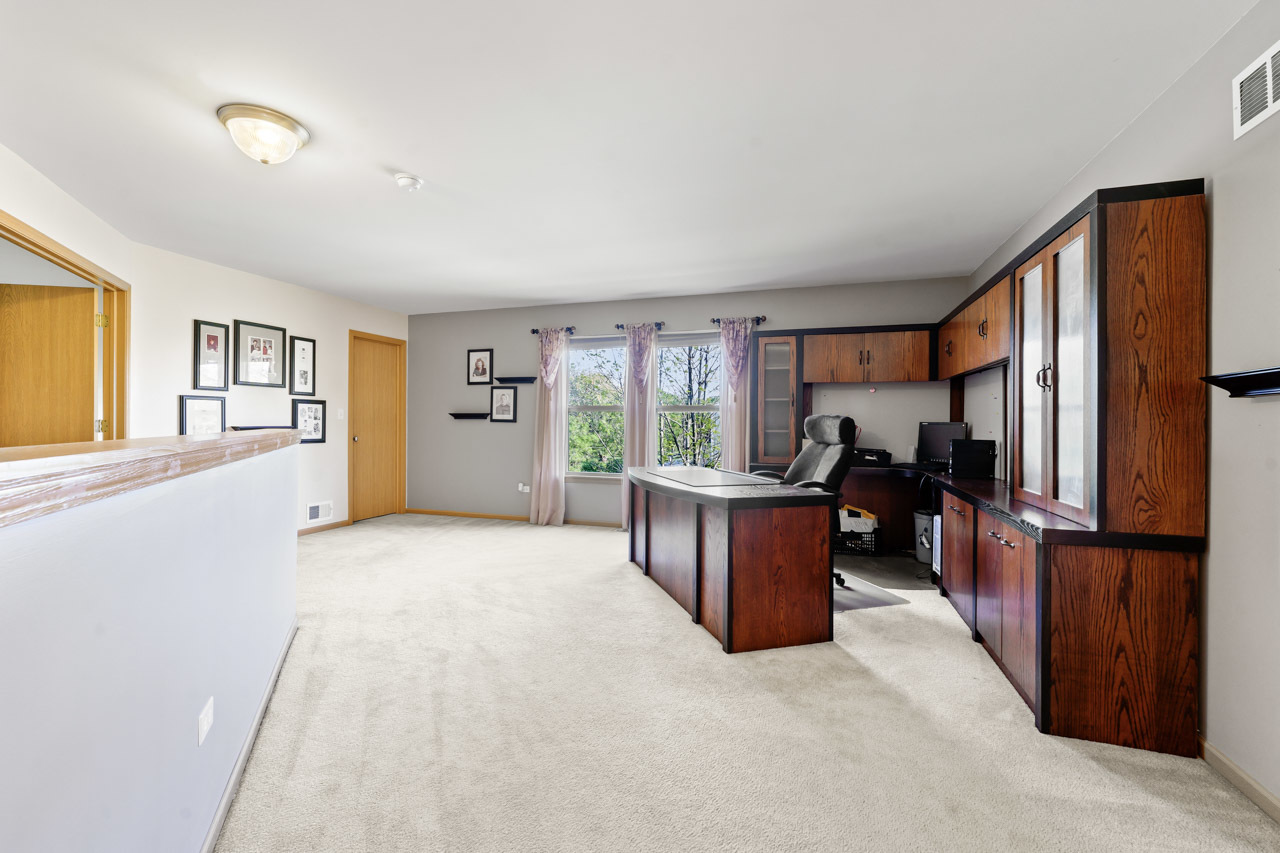 Spacious 4-Bedroom Home with Theater Room & Loft on over 1/4 acre in KIPLING ESTATES-Clubhouse community with pool, park and fitness center. Welcome to this expansive home offering approximately 4,600 sq ft of beautifully finished living space across three levels-perfect for comfortable everyday living and impressive entertaining. Featuring four bedrooms, a large loft, and a fully finished basement with a home theater, this property is move-in ready with fresh paint and numerous updates. As you enter, you’ll find stylish laminate flooring that flows throughout the main living areas, including the kitchen, family room, and sunroom. The sunroom, filled with natural light, opens to a concrete patio-ideal for outdoor gatherings. The kitchen is both functional and stylish, featuring abundant oak cabinetry with sleek black trim, granite and butcher block countertops, stainless steel appliances, a large island, and a generous walk-in pantry. Formal living and dining rooms are adjoined, providing ample space for holidays and entertaining. Upstairs, the spacious primary suite includes a private sitting area, an oversized walk-in closet with a center island dresser, and a luxurious en-suite bath with a walk-in shower and dedicated makeup area. The large loft offers versatile space-perfect for a home office, study area, or playroom. All three additional bedrooms are carpeted and include walk-in closets for ample storage. The fully finished basement adds even more functionality, featuring a dedicated theater room, a vast recreation area currently used as a gym, and a convenient half bath. The attached two-car garage includes storage cabinets along both walls for added organization. Major mechanical updates include a new furnace and sump/ejector pumps in 2024, a new water heater in 2023, and A/C replaced in 2020. This well-maintained home offers space, style, and flexibility-ready for you to move in and enjoy.