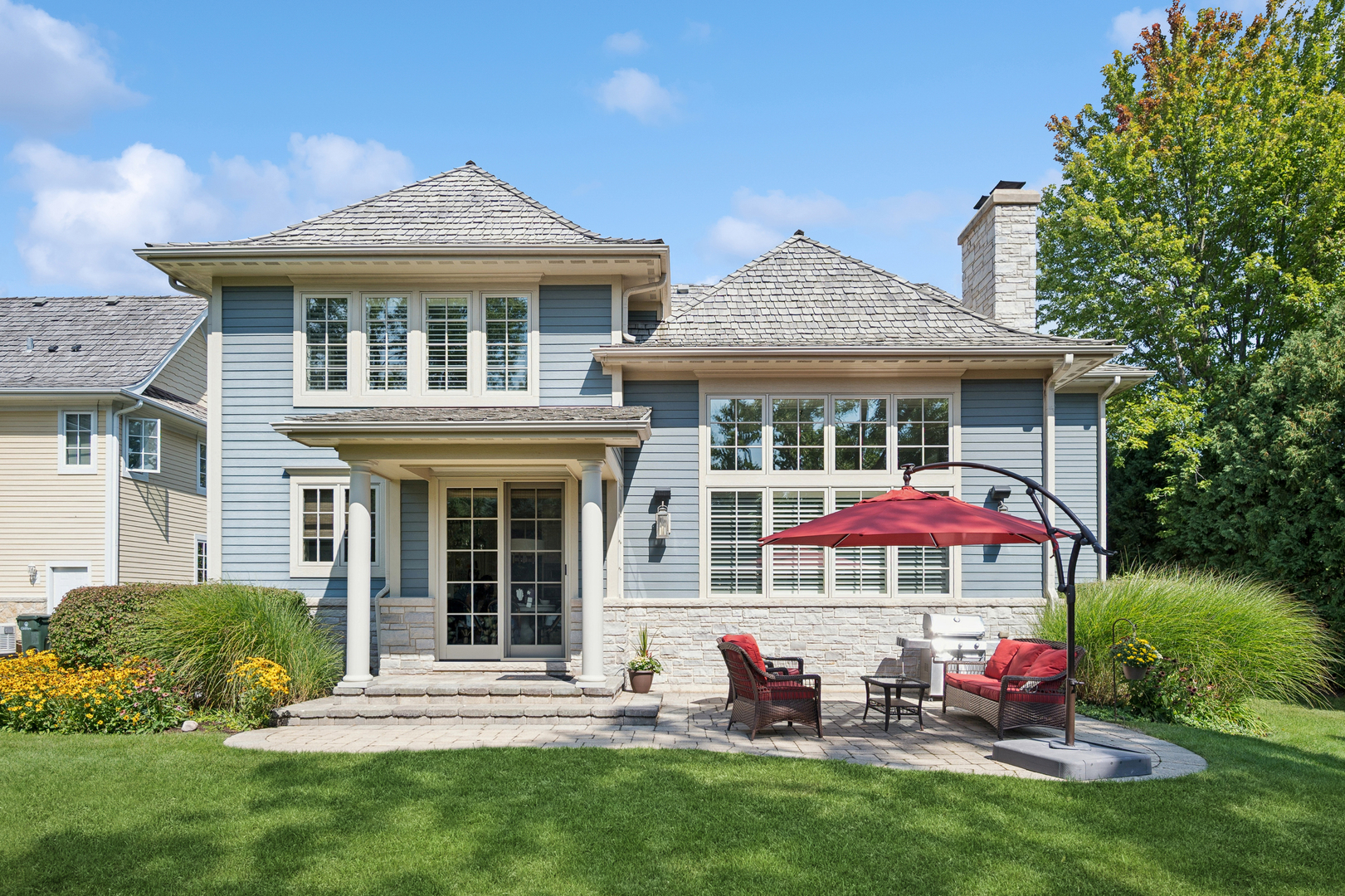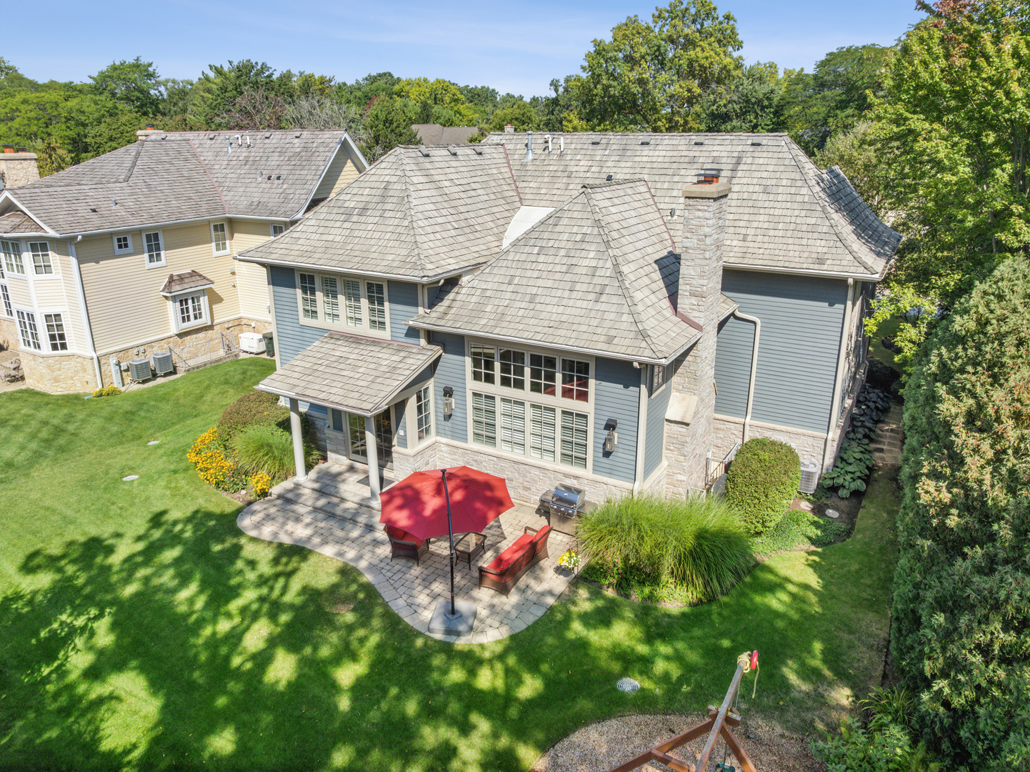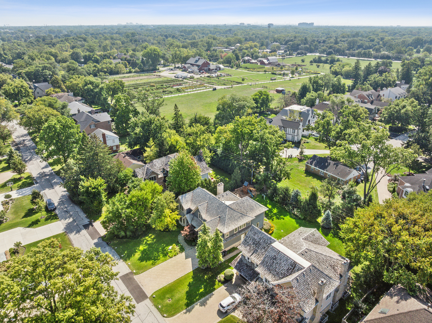 A newer, very special Glen Oak Acres home awaits! This inviting 3,300 sf stone and Hardie Board gabled 2012 residence offers the best of Glen Oak Acres living. The first floor welcomes you with a center foyer that sets the tone for the home’s thoughtful design and fine finishes. A quiet office provides an ideal space for work or study, while the elegant dining room includes a beverage station, perfect for entertaining. The gourmet kitchen, centered around a broad island with seating, features Viking professional appliances including a 6-burner cooktop with full oven below and a separate full-size oven-ideal for both everyday meals and entertaining. A built-in task desk adds convenience. The breakfast nook overlooks the backyard and opens to the patio, creating effortless indoor-outdoor flow. The kitchen connects to the dramatic story-and-a-half family room, where wood-beamed ceilings, a floor-to-ceiling stone fireplace, and soaring windows fill the space with natural light. Gleaming hardwood floors and beautiful millwork extend throughout, adding warmth and sophistication. A well-designed mudroom with custom cubbies, coat closet, garage access, and exterior door enhances function. Upstairs, the private living spaces are equally impressive. The primary suite is a retreat, with a coffered ceiling, generous walk-in closet, and spa-like bath featuring heated floors, a whirlpool tub, walk-in shower with rain dome, and double vanity. Two large bedrooms share a Jack and Jill bath, while the fourth enjoys its own ensuite. A conveniently placed laundry room completes the second floor. The finished basement adds 1,300 sf with high ceilings and radiant heat, creating a warm, inviting atmosphere. A spacious recreation room with stone fireplace offers the perfect gathering spot. The lower level also includes a fifth bedroom and full bath, an office or craft/flex room, and abundant storage. The heated two-car garage features an epoxy floor, EV charging station, and storage. Every detail reflects a floor plan designed with today’s modern family in mind. Ideally located near Cole Park, Wagner Farm, schools, both downtown Glenview and The Glen, with easy access to expressways leading to downtown or O’Hare.