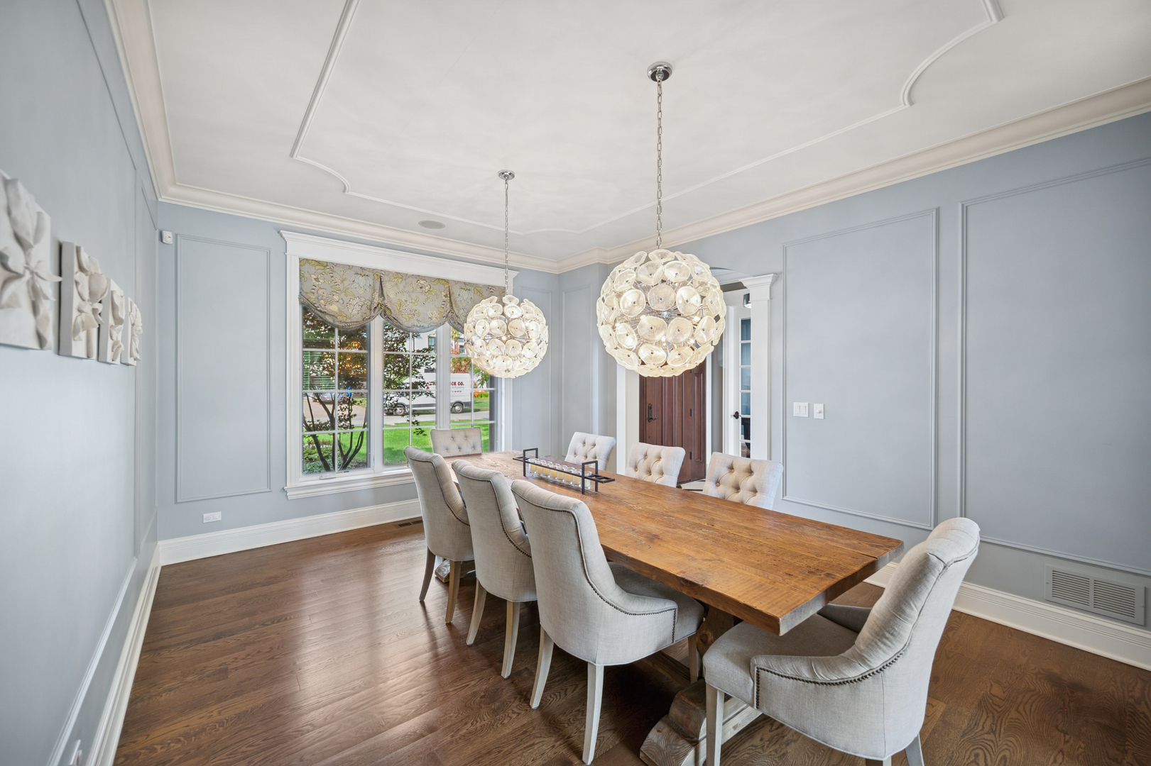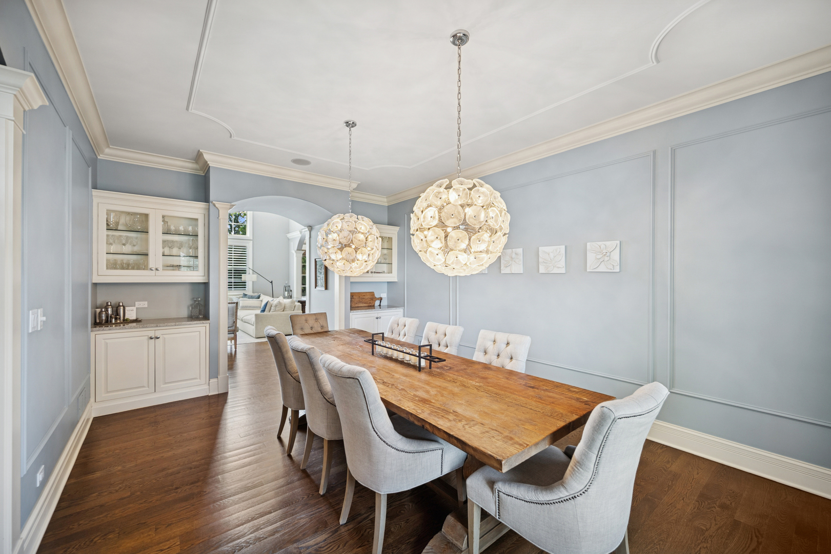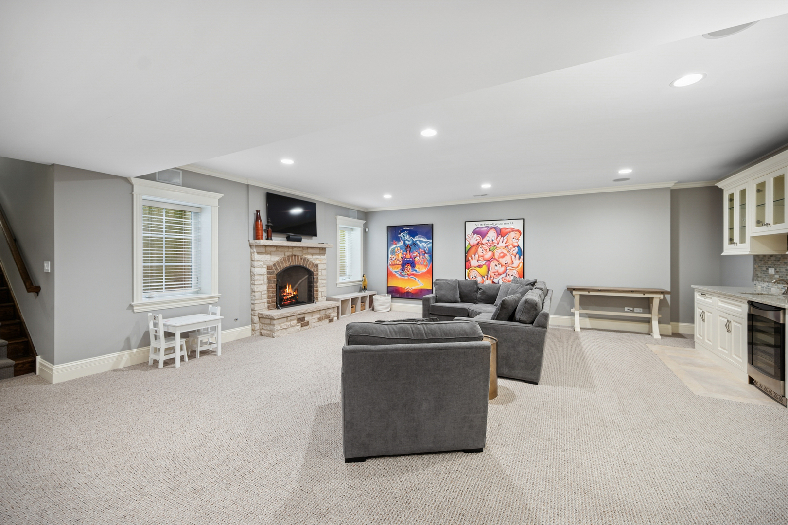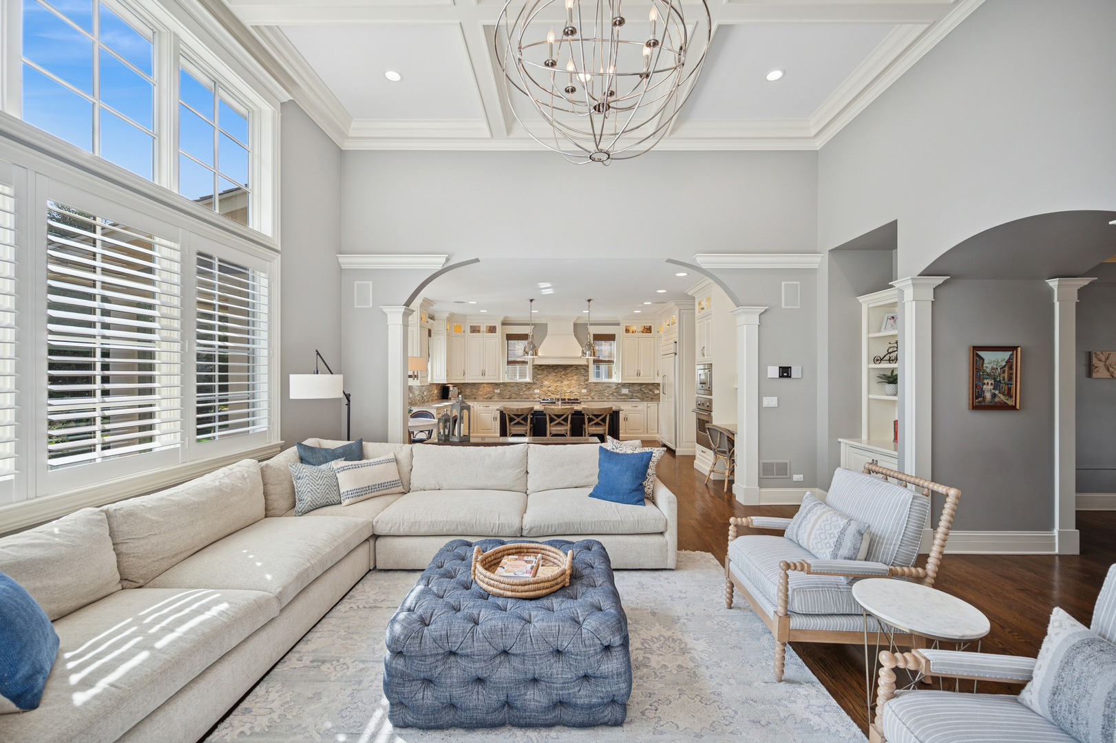 A newer, very special Glen Oak Acres home awaits! This inviting 3,300 sf stone and Hardie Board gabled 2012 residence offers the best of Glen Oak Acres living. The first floor welcomes you with a center foyer that sets the tone for the home’s thoughtful design and fine finishes. A quiet office provides an ideal space for work or study, while the elegant dining room includes a beverage station, perfect for entertaining. The gourmet kitchen, centered around a broad island with seating, features Viking professional appliances including a 6-burner cooktop with full oven below and a separate full-size oven-ideal for both everyday meals and entertaining. A built-in task desk adds convenience. The breakfast nook overlooks the backyard and opens to the patio, creating effortless indoor-outdoor flow. The kitchen connects to the dramatic story-and-a-half family room, where wood-beamed ceilings, a floor-to-ceiling stone fireplace, and soaring windows fill the space with natural light. Gleaming hardwood floors and beautiful millwork extend throughout, adding warmth and sophistication. A well-designed mudroom with custom cubbies, coat closet, garage access, and exterior door enhances function. Upstairs, the private living spaces are equally impressive. The primary suite is a retreat, with a coffered ceiling, generous walk-in closet, and spa-like bath featuring heated floors, a whirlpool tub, walk-in shower with rain dome, and double vanity. Two large bedrooms share a Jack and Jill bath, while the fourth enjoys its own ensuite. A conveniently placed laundry room completes the second floor. The finished basement adds 1,300 sf with high ceilings and radiant heat, creating a warm, inviting atmosphere. A spacious recreation room with stone fireplace offers the perfect gathering spot. The lower level also includes a fifth bedroom and full bath, an office or craft/flex room, and abundant storage. The heated two-car garage features an epoxy floor, EV charging station, and storage. Every detail reflects a floor plan designed with today’s modern family in mind. Ideally located near Cole Park, Wagner Farm, schools, both downtown Glenview and The Glen, with easy access to expressways leading to downtown or O’Hare.