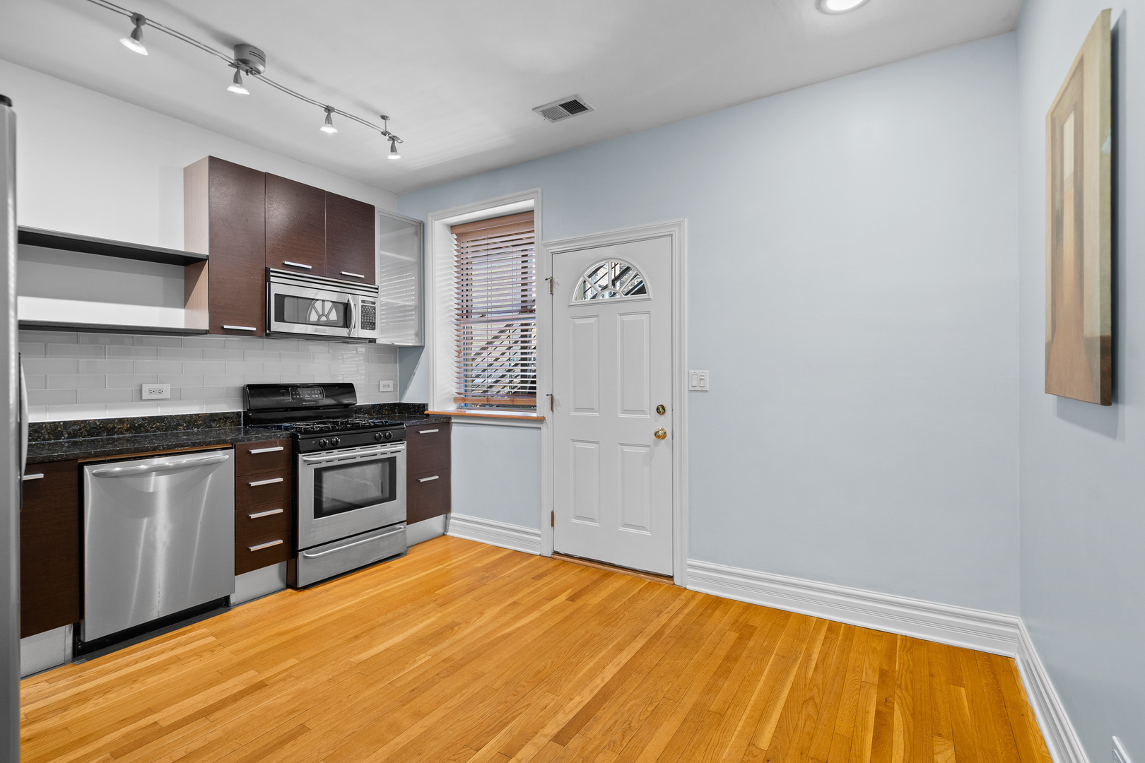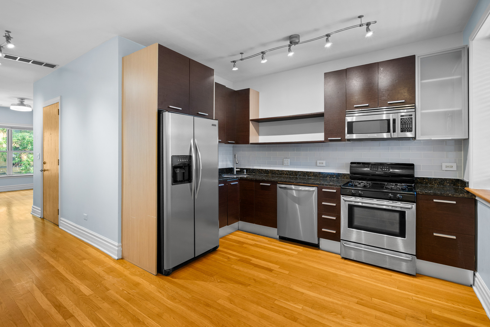 Just one block from the lakefront, at the vibrant intersection of Uptown and Edgewater, this stunning 2 bed, 2 bath condo offers the perfect blend of character and modern comfort. Flooded with natural light through oversized windows, this home features high ceilings, warm exposed brick, and a cozy gas fireplace-creating a welcoming, loft-like ambiance. The spacious, eat-in gourmet kitchen is equipped with stainless steel appliances, granite countertops, a custom tile backsplash, and direct access to a private balcony-ideal for morning coffee or evening relaxation. The desirable split-bedroom floorplan provides excellent privacy, with two generously sized bedrooms and two full bathrooms. The primary suite boasts a private balcony and a luxurious en suite bathroom with a whirlpool tub. Additional highlights include in-unit washer and dryer, brand new central A/C and heat (2024), and hardwood floors throughout. Enjoy unbeatable access to the lakefront, the newly renovated Argyle Red Line station, multiple bus lines, and all the dining, shopping, and nightlife of nearby Andersonville-just four blocks away. This well-maintained, gated building features beautiful wrought iron fencing, deeded parking, a bike/storage room, and lightning-fast fiber internet for just $30/month via the HOA. A truly exceptional home in one of Chicago’s most desirable neighborhoods-schedule your private showing today!