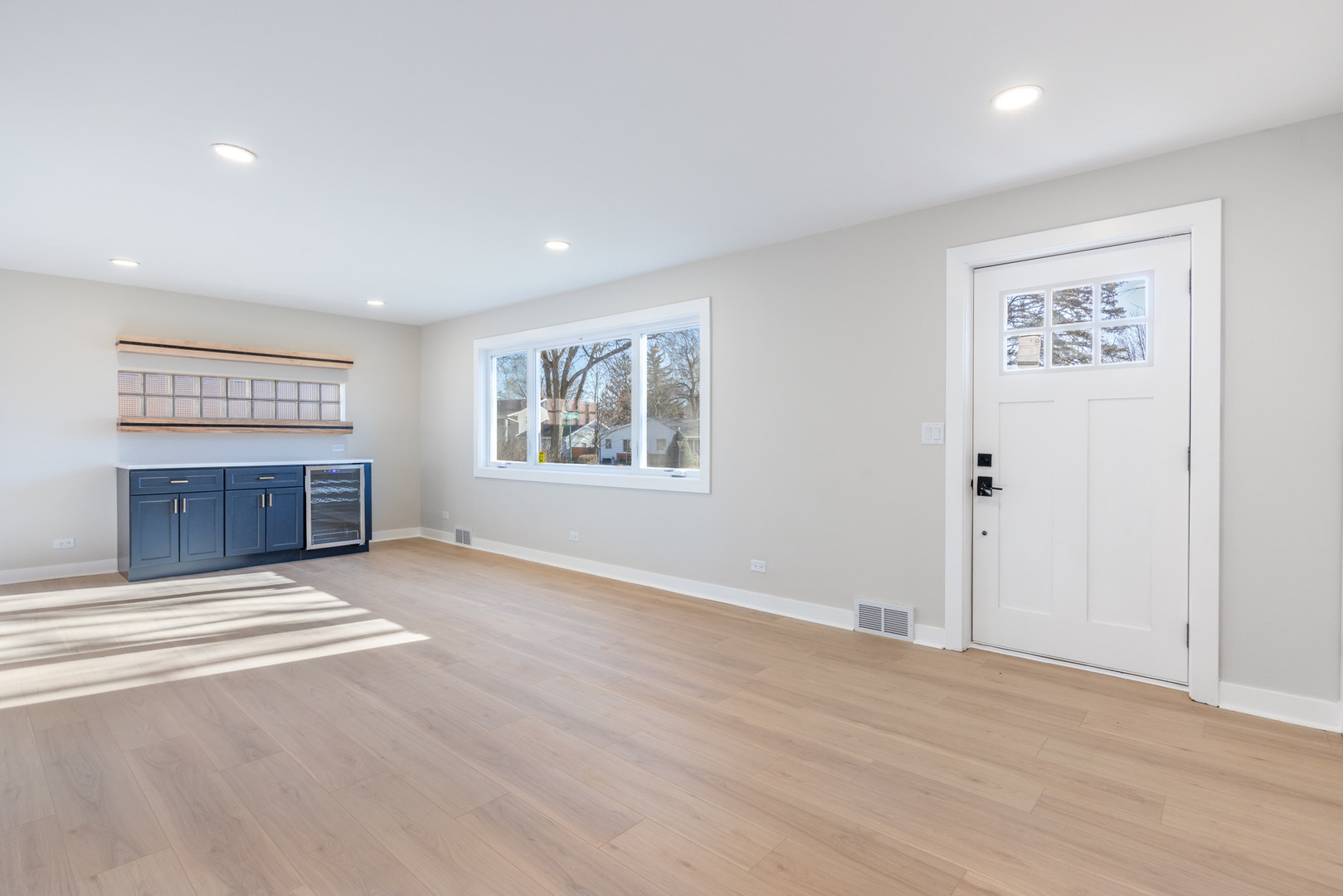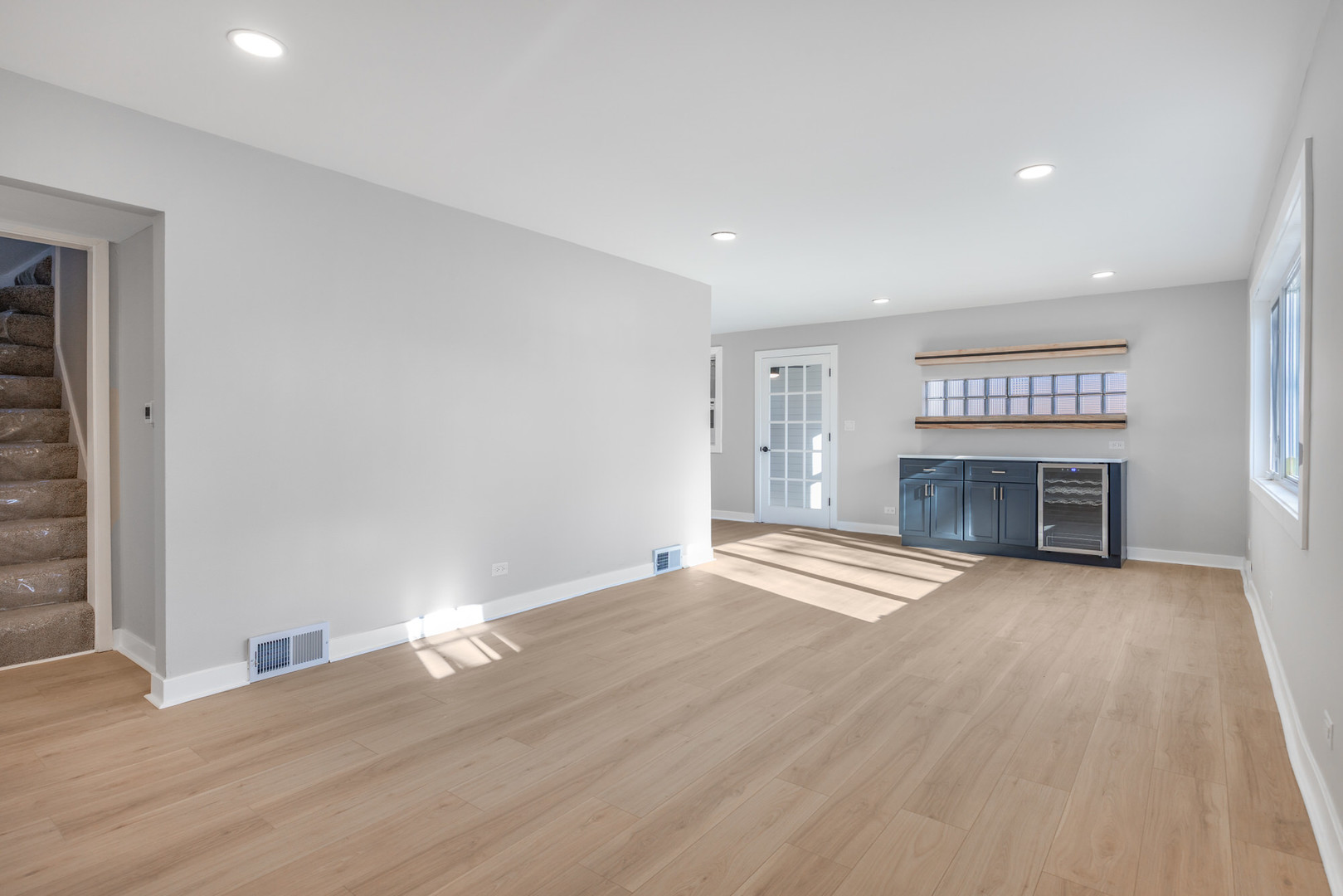 Complete top to bottom rehab in great Lombard neighborhood. New items include tear off roof, windows, tuckpointing, hardie board siding, asphalt driveway and all new landscaping. Enormous yard on corner lot for all your future expansion ideas. Inside features 2 new bathrooms, new kitchen with white shaker cabinets, stainless steel appliances, quartz countertops, and glass tile backsplash. Front room also features dry bar with built in bev/wine fridge. All new mudroom between garage and house has custom built open coat closet. 2 bedrooms and bath on each floor. All new flooring throughtout; LVT first floor and basement, carpet on second floor. Basement has large open area for additional living space, plus utility/laundry room. Broker Owned.