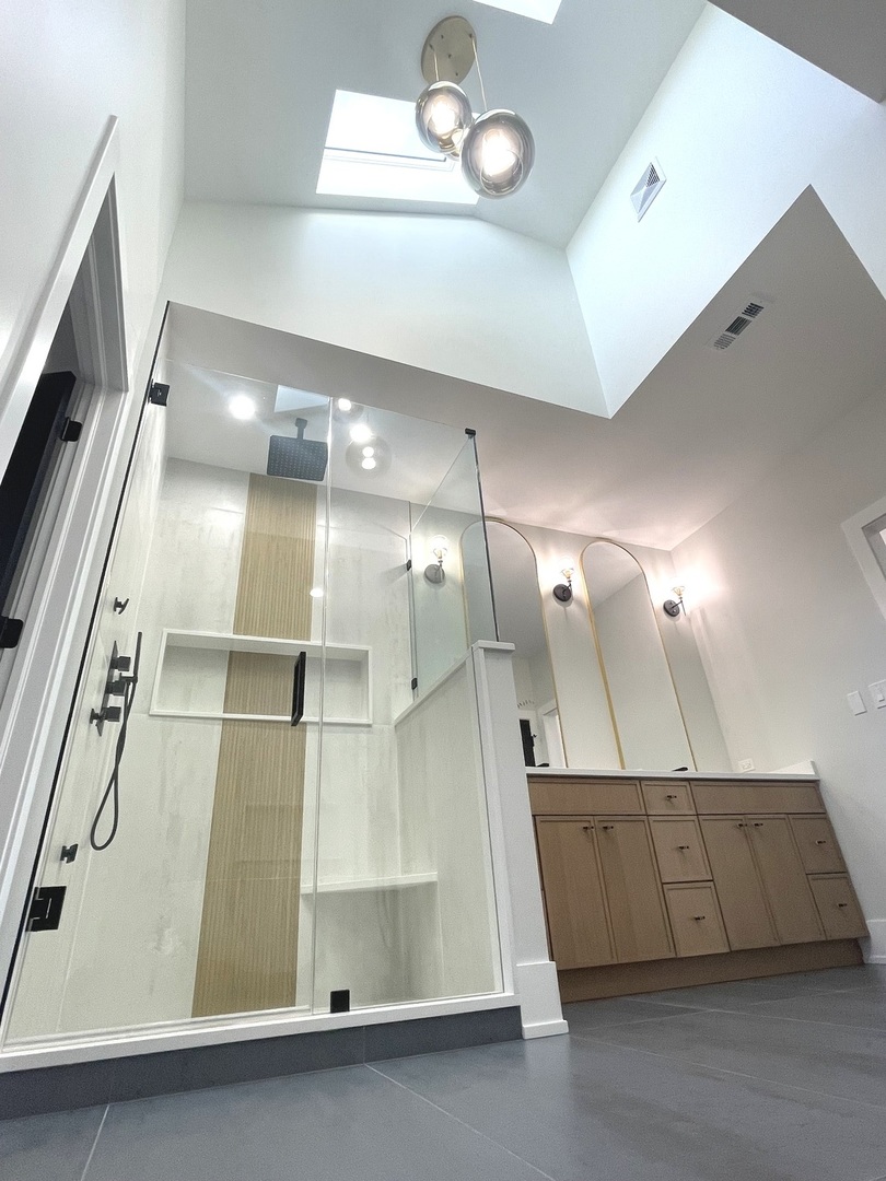 This stunning new construction home blends modern design with exceptional functionality, offering 5 bedrooms and 3.5 bathrooms in a spacious, light-filled layout. The main level showcases 10-foot ceilings, tall windows, hardwood floors, and a dramatic two-story family room with 20-foot ceilings and a gas fireplace, as well as a versatile office or fifth bedroom. The kitchen is a true centerpiece, featuring custom two-tone cabinetry, ZLINE professional appliances, an oversized island, and a walk-in pantry with a second sink and full size refrigerator. From the kitchen, enjoy seamless access to a 12′ x 24′ covered Trex composite deck; perfect for outdoor dining and entertaining. A large dining room and a separate, stylish living room complete the main level. Upstairs, the primary suite offers two walk-in closets and an elegant bath with a freestanding soaking tub, dual vanities, a walk-in shower with body jets, and an enclosed toilet for added privacy. Three additional bedrooms include one with its own private bath and two connected by a Jack & Jill bathroom. A custom glass-panel staircase railing emphasizes the home’s modern style. Outdoor living is further enhanced by a welcoming front porch and the expansive covered deck overlooking the backyard. Additional highlights include two HVAC systems, a full unfinished basement with optional radiant heated floors, a 75-gallon water heater with hot water circulation, foam insulation, two drain tile systems, pre-wiring for a speaker system, fire sprinklers, and a 220V outlet for an electric vehicle charger. The oversized two-car garage features an 18-foot ceiling and optional radiant heat. Quality finishes throughout make this custom home the perfect blend of style, comfort, and functionality. All of this in an award winning North Palos School District 117, along with easy access to Highways I-55 & I-294, Harlem Ave, and LaGrange Rd. Welcome home!