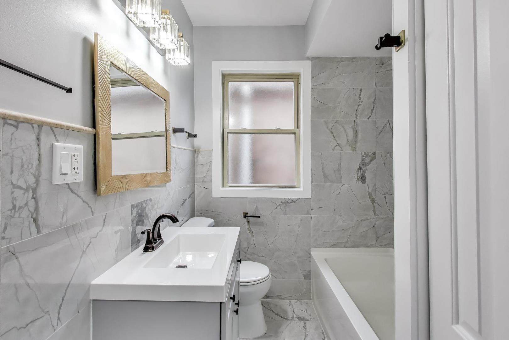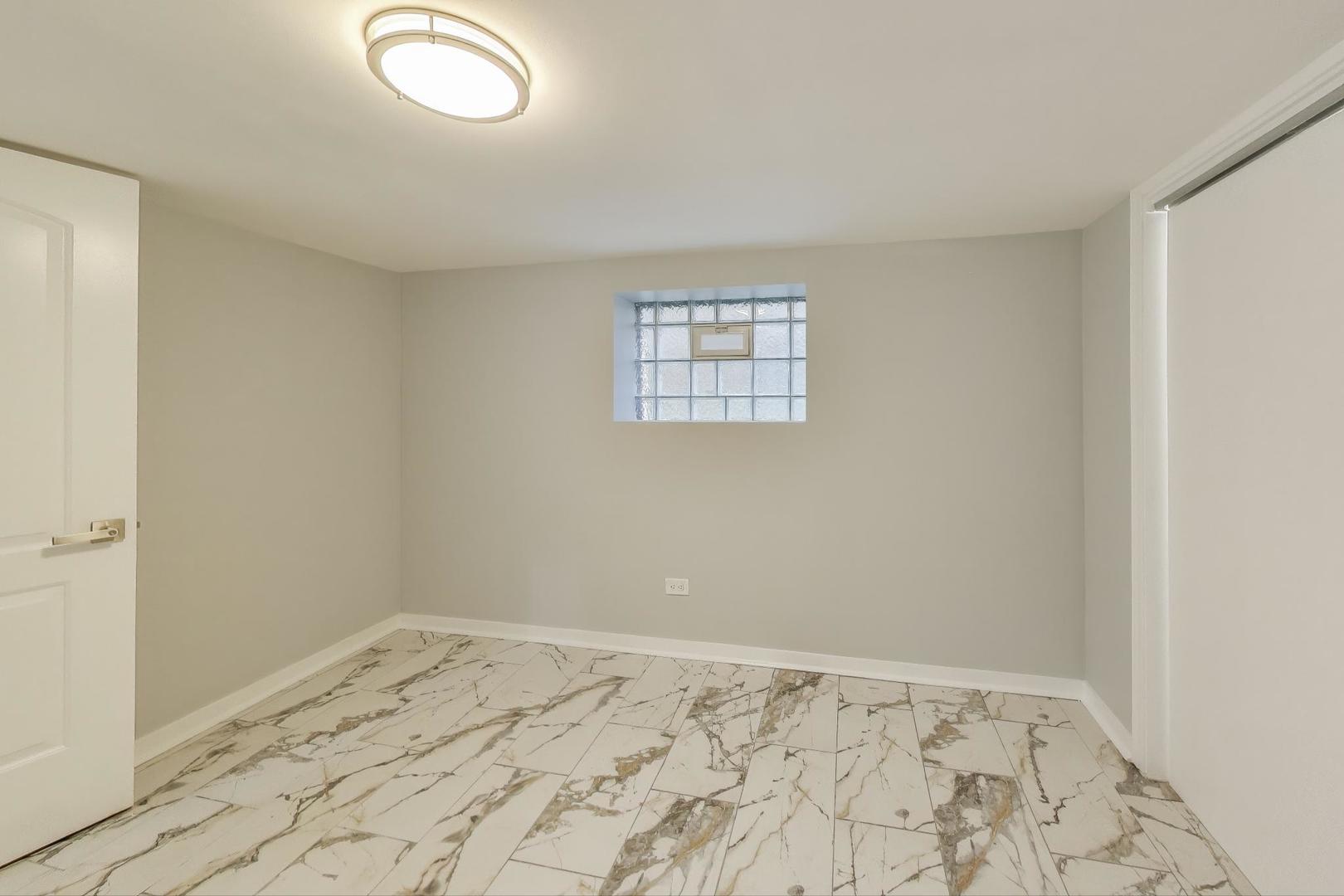 Welcome to this beautifully updated 4-bedroom, 2-bath home on a quiet, tree-lined block! The main level features an open floor plan with two spacious bedrooms, a full bath and an attached office. Entertain guests by the cozy electric fireplace in the bright living room with gleaming hardwood floors and a stylish accent-walled dining area. The chef’s kitchen boasts an island bar, top-of-the-line stainless steel appliances, quartz countertops, and rich cherry wood cabinetry with high-end fixtures throughout. The upper level offers an additional bedroom with a sitting area. The finished basement includes a large bedroom, a full bath, a separate laundry room, and generous entertainment space. Enjoy summer BBQs in the expansive backyard. A perfect blend of comfort, style, and modern design – move right in and make it yours!
