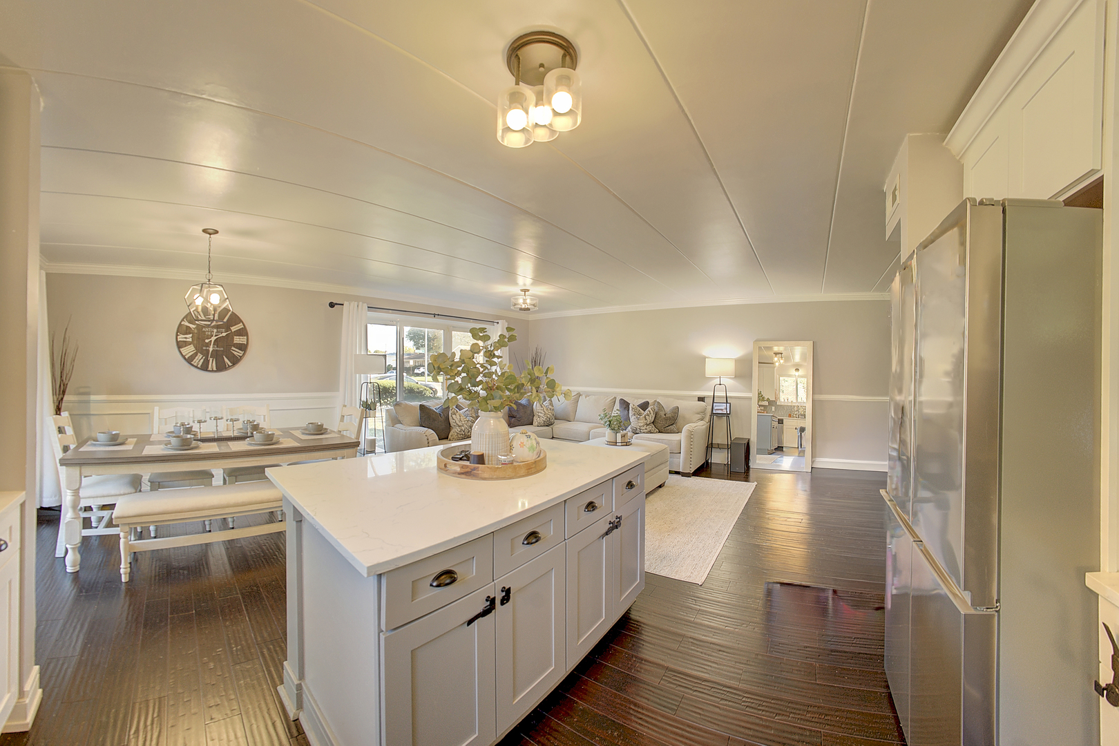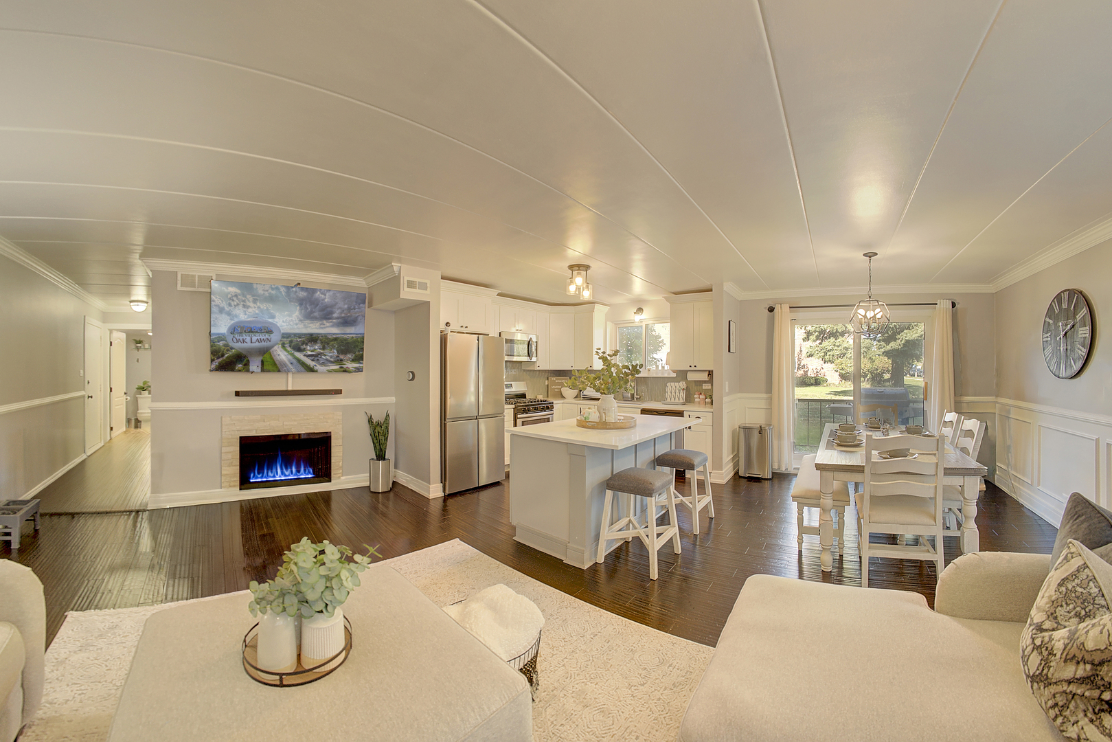 Experience stylish living in this beautifully remodeled 2-bedroom, 1.5-bath condo, featuring a thoughtful open floor plan and high-end finishes throughout. Completely renovated in 2018 and further enhanced with hardwood floors installed in 2021, this home perfectly blends modern design with everyday comfort. The contemporary kitchen boasts sleek modern cabinetry, quartz countertops, a spacious island, stainless steel appliances, and a touch-activated faucet. The open kitchen, dining, and living area creates an inviting space ideal for entertaining, complemented by a built-in electric fireplace for a warm and cozy ambiance. Both bathrooms have been tastefully remodeled, and the two generously sized bedrooms offer large closets and plenty of natural light. Enjoy the convenience of in-unit laundry and two sliding glass doors that fill the home with sunlight-one leading to a private balcony off the dining room. Bright, elegant, and move-in ready, this condo is the perfect place to call home.