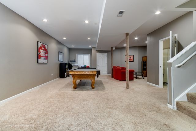 Beautifully renovated, well maintained two story with four bedrooms, first floor office, and two and a half bathrooms. Full, finished basement with rec room, playroom and full bath. Kitchen has dark shaker cabinets, granite countertops and ceramic tile floor. Stainless steel appliances. Updated ceramic tile baths with soaker tub in the master bath. Two story foyer. Gas fireplace with ceramic logs in the living room. Huge dining room ready for those holiday parties. White wood trim and white paneled doors. Newer 40 foot stamped concrete patio with pergola and fenced yard. Covered front porch. Interior security cameras present but do not stay. Nest thermostat and Ring doorbell will stay! UNDER 5 YEARS OLD = ROOF, FURNACE AND CENTRAL AIR UNIT. No video recording and no love letters please.