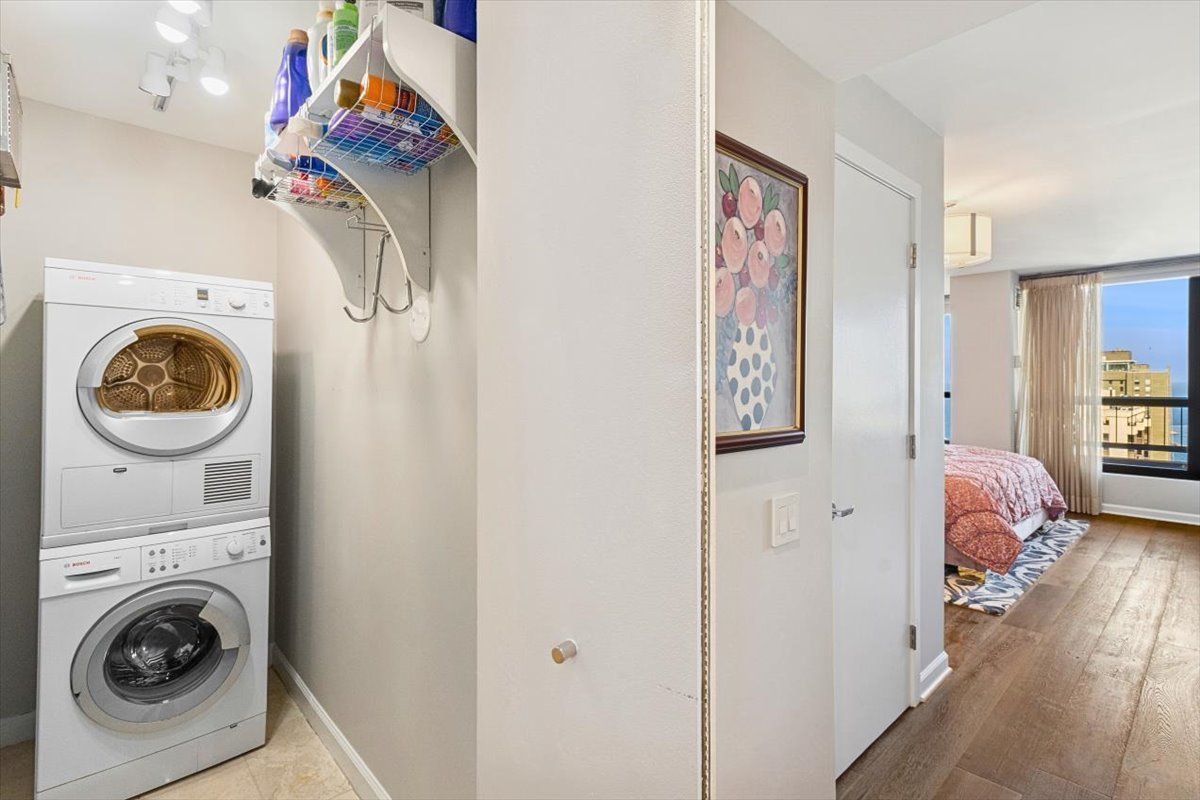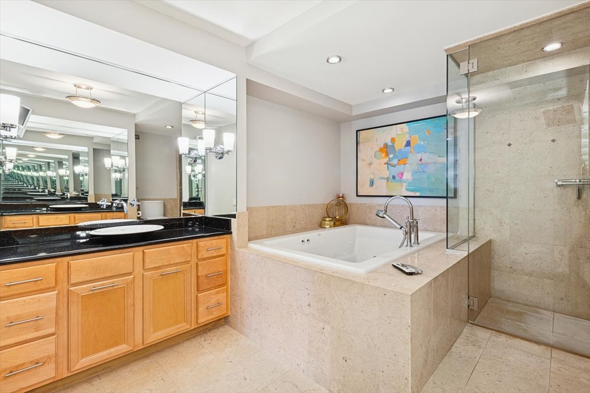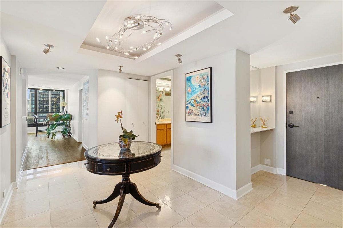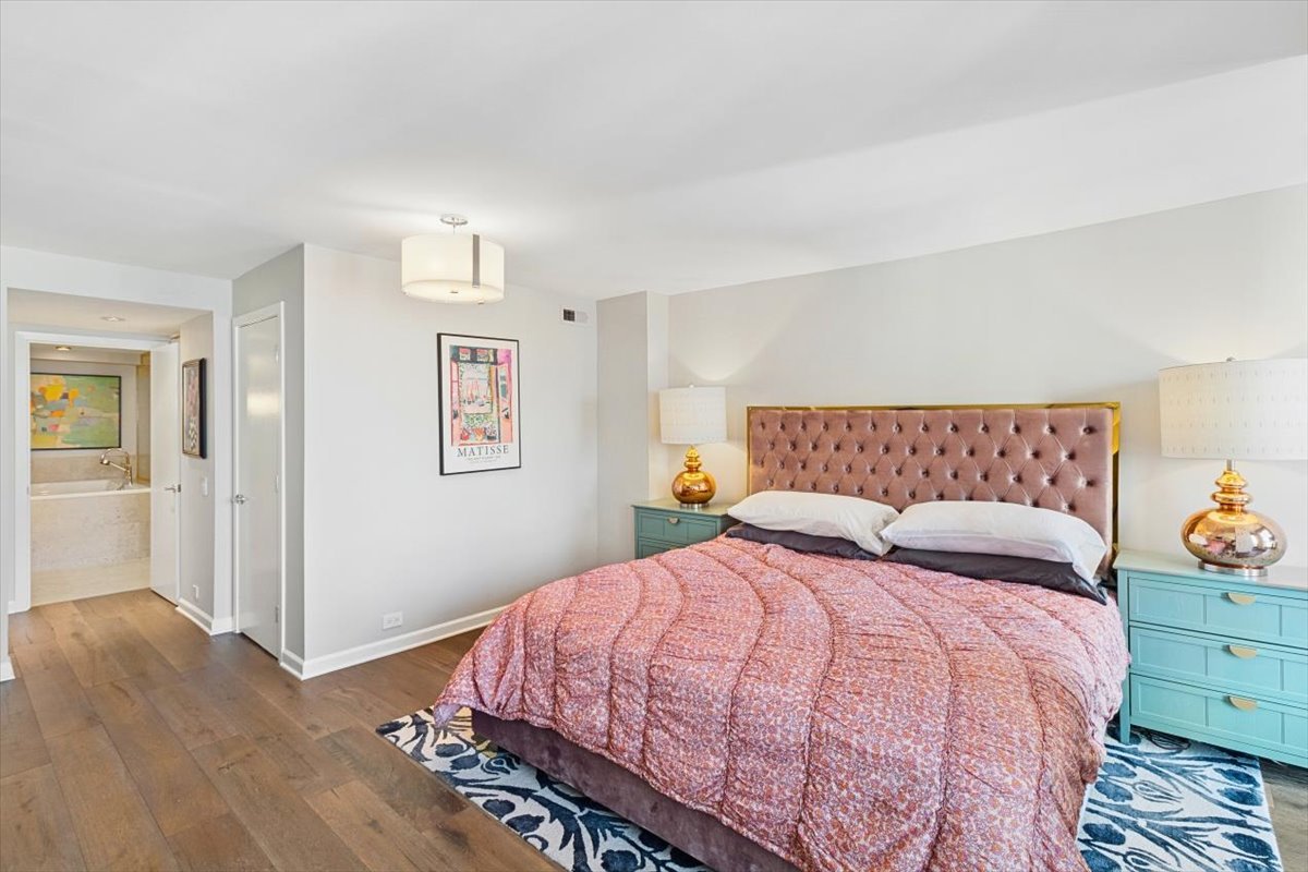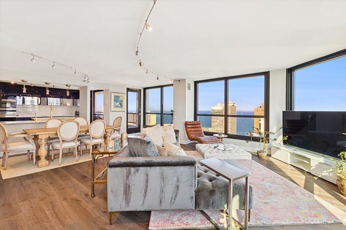 Breathtaking Corner Residence at Newberry Plaza Wake up to sunrise views over Lake Michigan and enjoy sweeping eastern and southern skyline vistas from every room in this stunning corner home. The smart split-bedroom layout offers privacy and space for both bedrooms. The primary suite is a true retreat, featuring a walk-in closet, additional reach-in closet, in-unit laundry, and a spa-like bath with a soaking tub, steam shower, and dual vanities. Step directly onto the 25-foot balcony from the primary suite and take in the unobstructed, panoramic views. The window-lined kitchen overlooks the Gold Coast and lake, filled with natural light and equipped with generous counter space and high-end stainless steel appliances, including a Wolf oven, perfect for any home chef. The expansive living and dining area is ideal for entertaining, offering corner views to the south and east with balcony access. It’s equally stunning during the day or lit up at night. Recent updates include new hardwood floors and an updated kitchen. Newberry Plaza provides professional management, strong reserves, 24-hour door staff, and amenities including a stunning outdoor pool, courtyard, fitness center, package room, and updated lobby. All of this is just steps from Gibsons, Maple & Ash, Oak Street shopping, the lakefront, and more. Quintessential city living at its finest.