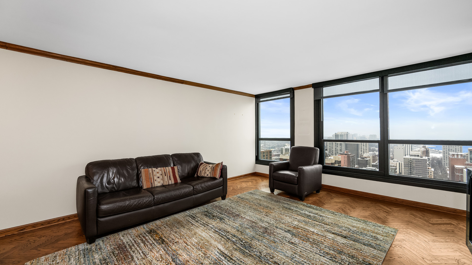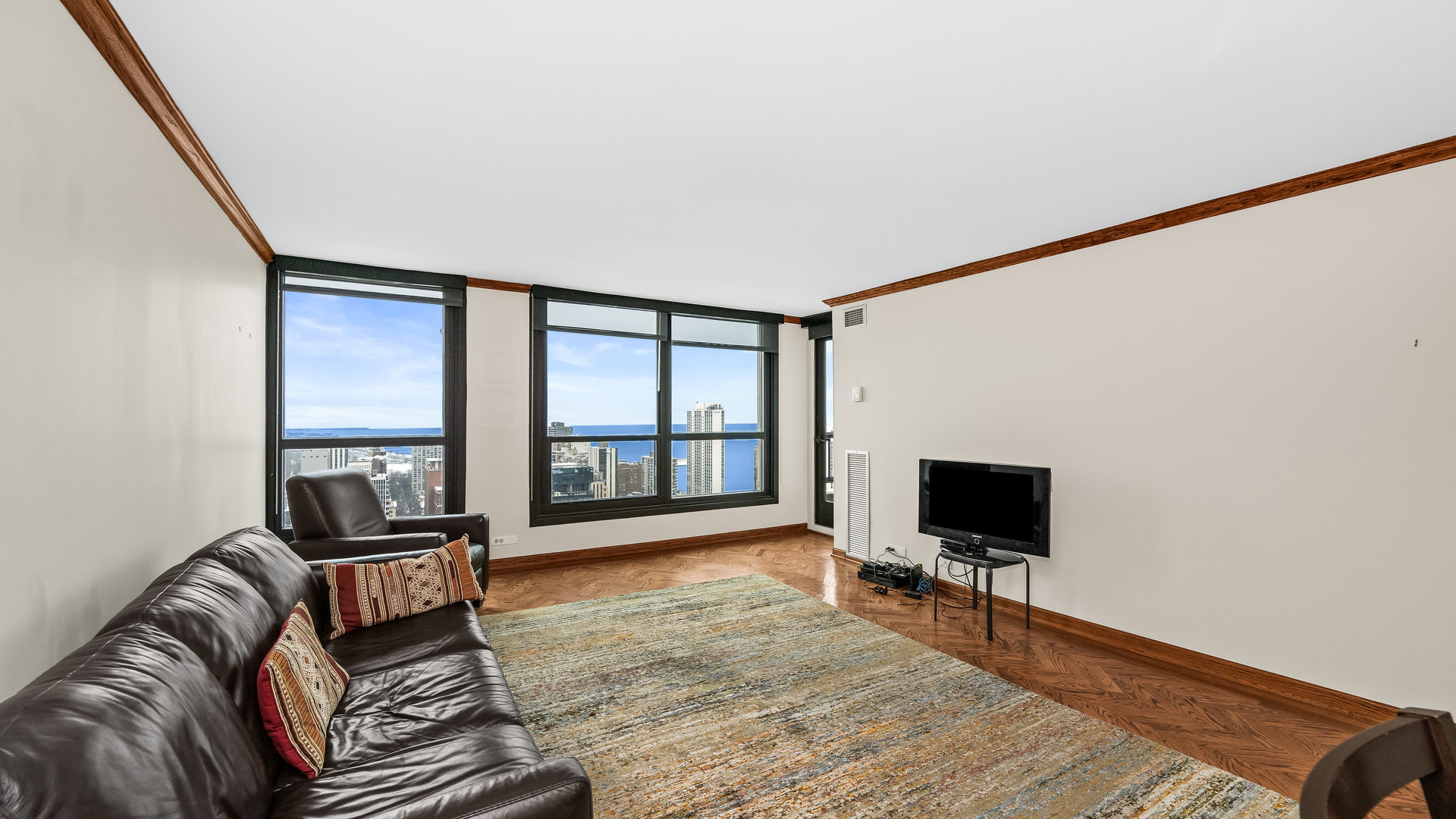 Walk into unobstructed gorgeous day and night North, East and West forever views of the Lake, City all the way past Lincoln Park. Perfect location for watching the Air and Water show! Enjoy morning coffee or grilling on your private North facing balcony. Wonderful space for entertaining! Beautiful and spacious home with not a bit of wasted space. Open stainless-steel kitchen with wood cabinetry. Breakfast bar easily seats three. Main living area, dining area and bedroom with beautiful modern herringbone flooring. Great organized closet space, walk-in closet in the bedroom with separate utility and linen closets. Delightful bathroom with large shower and pretty shower surround. Storage on the same floor as unit. Full amenity building with 24/7 door staff, fitness room, outdoor pool, sundeck, all purpose room, bike storage, 7 day a week receiving room and very large laundry room. Building does allow washer/dryer to be installed in your unit. Close to everything your heart desires. Restaurants, shopping, entertainment, lakefront and the bike paths. Easy transportation to every end of the city just outside your door.