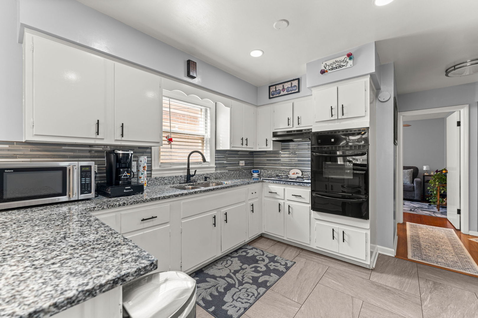 Price Improvement and New Roof! Beautifully Maintained All-Brick Home in Chicago’s East Side Neighborhood! Welcome to this impeccably cared for 3-bedroom, 2-bathroom brick ranch on a fully finished basement offering comfort, updates, and functionality in every space. Step inside to a spacious living room with a custom fireplace, crown mold lighting that creates a warm, inviting atmosphere. The updated main floor kitchen features granite countertops, modern backsplash, a new refrigerator, and recessed lighting-perfect for cooking and entertaining. The finished basement expands your living space with a second kitchen, full bath, laundry area, and plenty of room for gatherings or additional living needs. The washer and dryer are newer and are included with the home. Behind the classic paneling you’ll find drywall already in place, making updates easy if desired. The basement is dry and the entire home has been kept exceptionally clean. Enjoy outdoor living year-round with covered front and rear porches, a backyard patio with solar lighting, and a landscaped yard ideal for relaxing or entertaining. The garage is a standout-offering two overhead doors, epoxy-coated flooring, and ample storage space. Key updates include a newer sump pump, updated electrical, an updated main floor kitchen, no carpeting throughout with hardwood and tile floors for easy care, and a newer washer and dryer included. Pride of ownership shines throughout-this home has been lovingly maintained by the same owner since the 1960s. This home is truly move-in ready and showcases care inside and out. Conveniently located near shopping, schools, parks, and transportation. Sold As-Is.