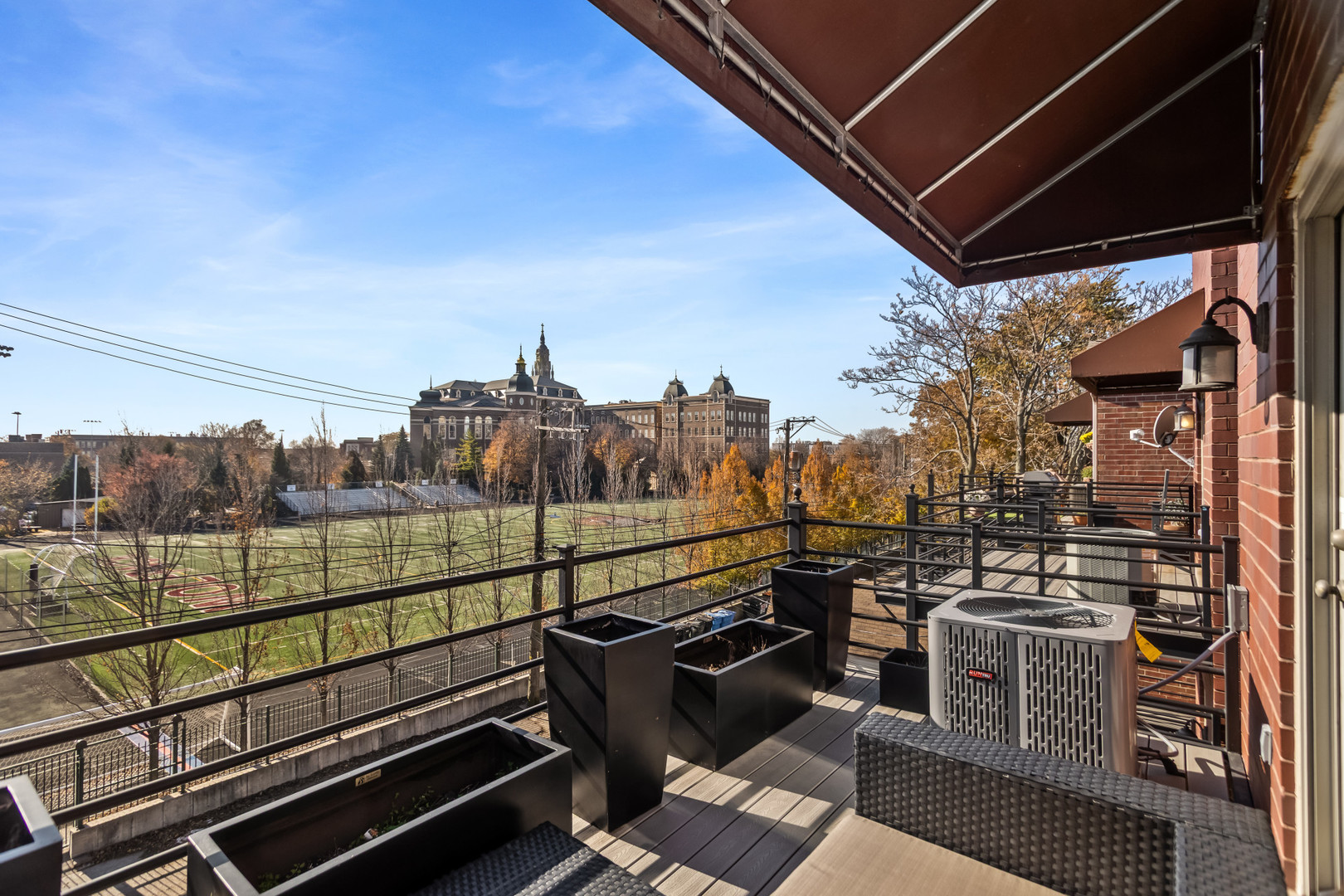 Bright and inviting top-floor 2-bedroom, 2-bath residence on Taylor Street in the heart of Little Italy, offering captivating skyline vistas and an unbeatable location just moments from UIC and St. Ignatius College Prep. This tastefully updated condo showcases rich hardwood flooring throughout, dramatic vaulted ceilings in the main living space, a warm wood-burning gas fireplace, and expansive windows with a charming French balcony. The newly refreshed kitchen includes crisp white shaker cabinetry, a spacious stone-topped peninsula, premium stainless steel appliances-featuring a Viking oven with hood + refrigerator-and an elegant tile backsplash. The primary suite includes a private bathroom with dual sinks and direct access to an intimate outdoor deck presenting striking city views. The deck has been upgraded with long-lasting luxury composite materials, and the AC condenser has been fully replaced. A tandem exterior parking space (accommodating two vehicles) and an additional storage closet are included in the price. Enjoy everything that Taylor Street and Little Italy have to offer, with easy access to the Illinois Medical District and the CTA Blue & Pink Lines. Minutes to Arrigo Park, Sheridan Park, and surrounding green spaces and steps from renowned Italian bakeries, cafes, and award-winning restaurants.