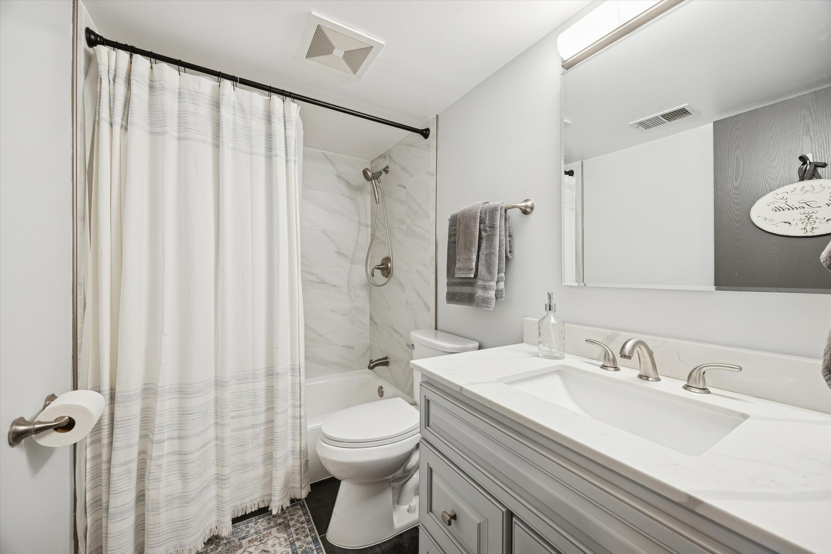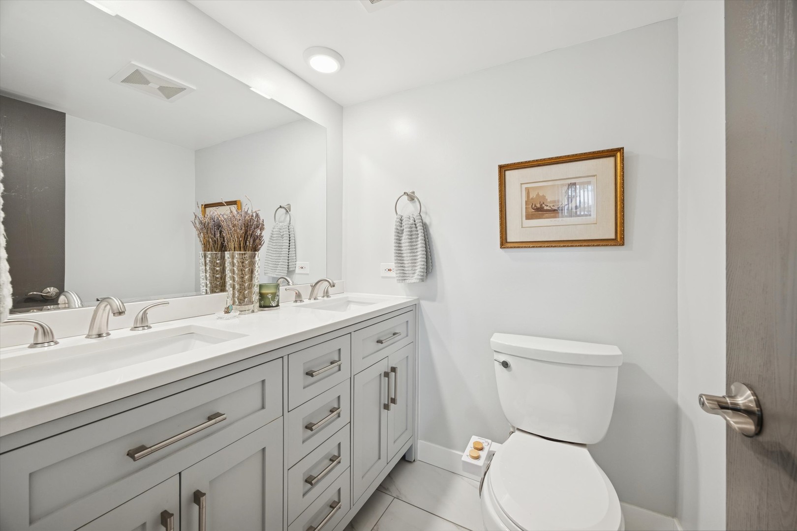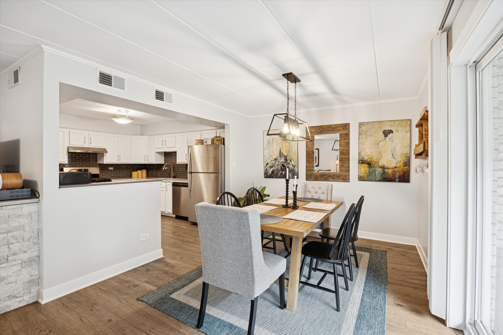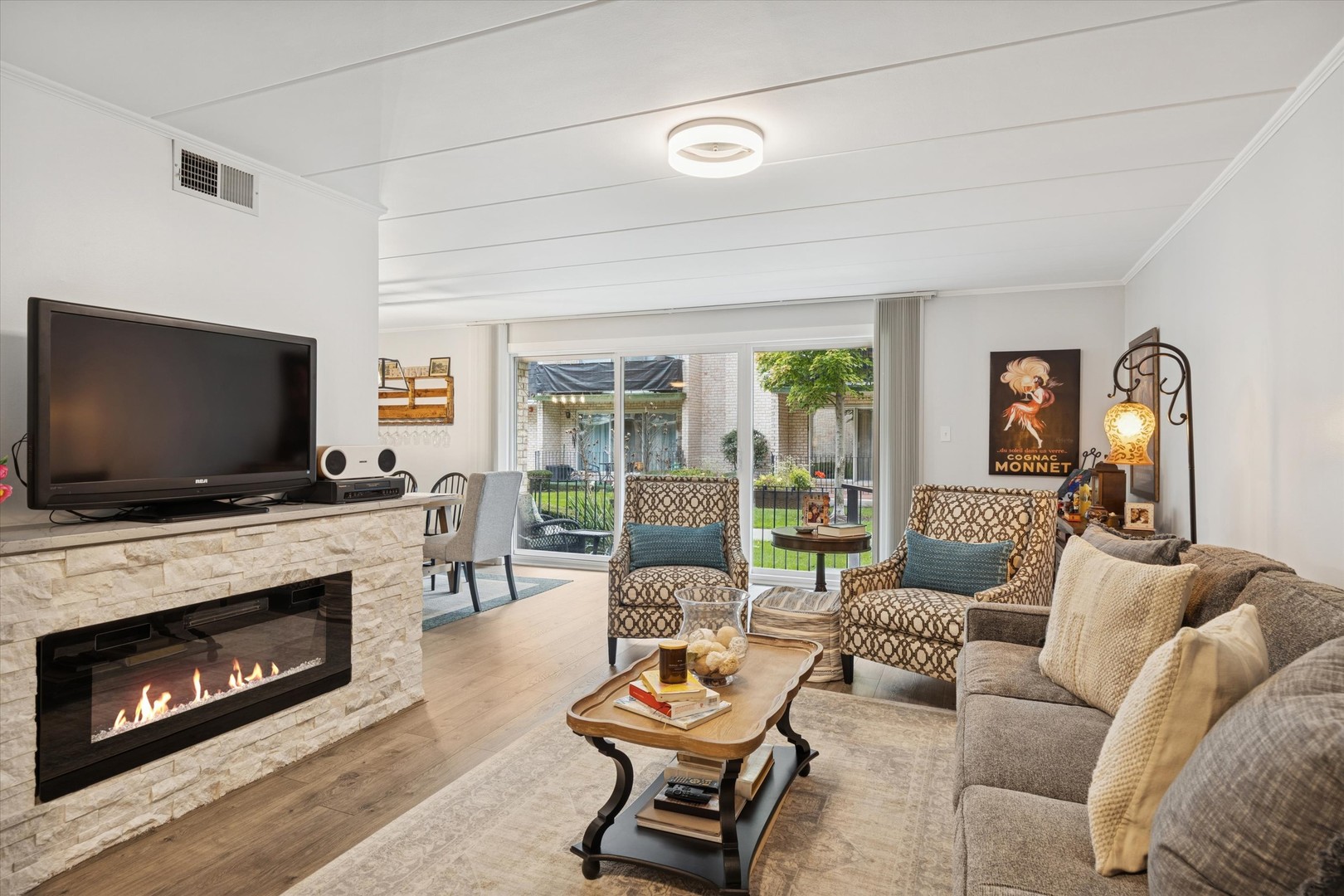 Tastefully appointed 2 bedroom condominium, centrally located within a two block radius of Oak Lawn Racquet & Fitness Center and shopping mall. Updated in 2022 with laminate wood flooring spanning throughout the entire unit. Open concept is ideal for entertaining, allowing sightlines from kitchen into the dining room, which can accommodate seating for 6+guests. The living room’s stone facade fireplace creates an inviting environment. Private balcony accessible off the living room provides an addition 70 square feet of living space, looking onto the courtyard. Spacious kitchen is designed with stainless steel appliances, durable granite countertops and functional 5 foot coffee bar. Primary bedroom offers abundance of storage with two double door closets and an en suite bathroom equipped with a double vanity. Both generously sized bedrooms can fit a queen size bed or larger. Dedicated laundry room conveniently situated in-unit and includes Samsung Washer (2022), Dryer (2022) and utility sink. Large Basement Storage (22X13) and exterior Parking Space included.