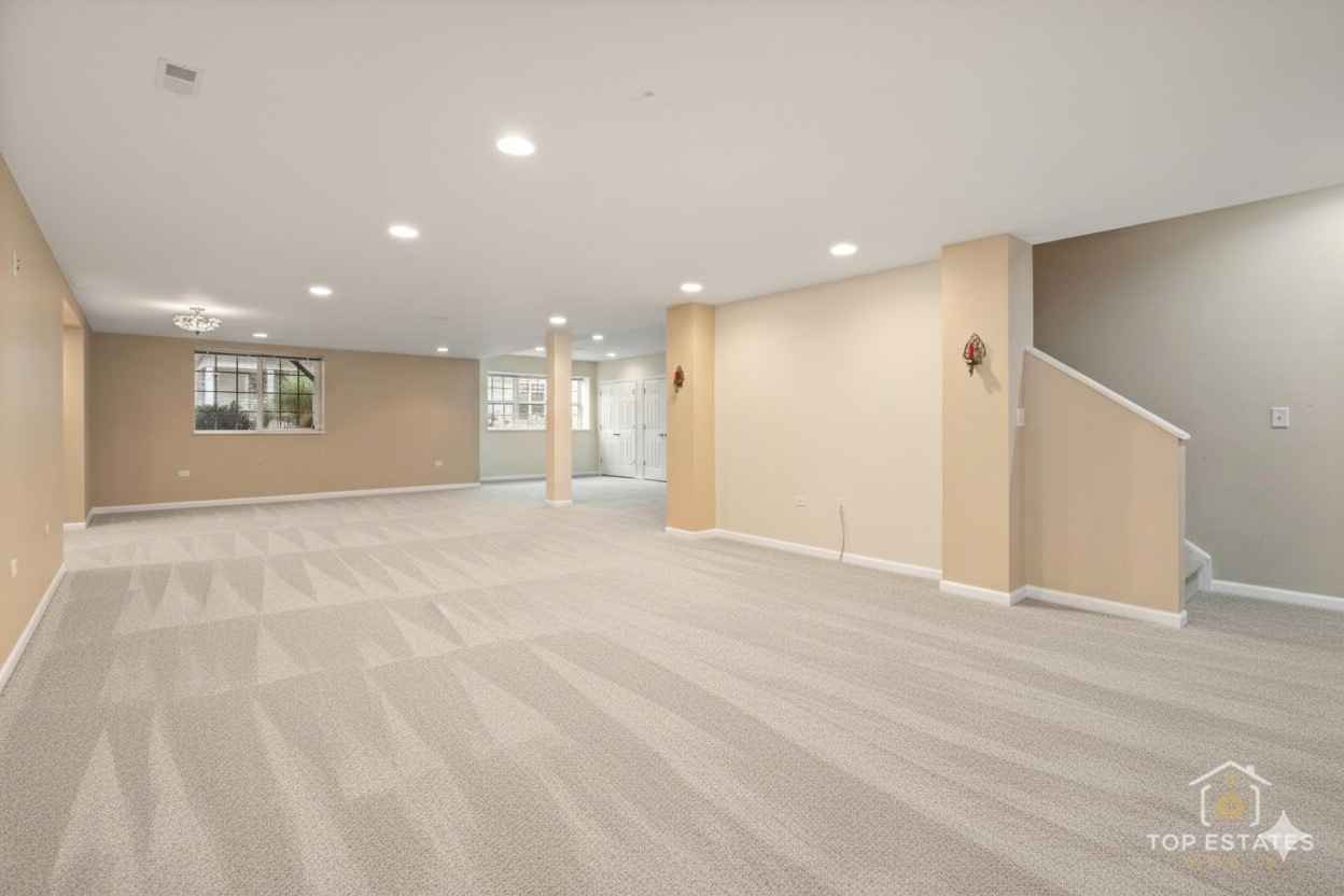 Beautifully updated and VERY RARE RANCH END-UNIT with a full finished English basement in the highly sought-after active adult 55+ community of Bowes Creek! Enjoy resort-style living with an award-winning Rick Jacobson 18-hole golf course, clubhouse with fitness & party rooms, outdoor pool, restaurant, and miles of walking/bike trails. This spotless, move-in-ready home offers a bright open layout with fresh paint, hardwood floors, cathedral ceilings, and quality millwork. The great room features a bay window, recessed lighting, and access to the covered deck-perfect for morning coffee or evening relaxation. The chef’s kitchen boasts granite countertops, rich cherry cabinetry, high-end stainless appliances, breakfast bar, and a sun-filled dining nook. The luxurious primary suite includes a tray ceiling, sitting area, two closets, and a beautifully updated spa bath with double vanity, soaking tub & separate shower. Main-level laundry & a nicely sized second bedroom complete the first floor. The expansive English basement offers a full second living space-ideal for guests or grandkids-with a large recreation area, bath, and impressive storage with built-in shelving. Extra storage in the finished 2-car garage as well. Prime location near Randall Road shopping/dining, easy interstate access, and just minutes to the Fox River & downtown St. Charles. A perfect blend of comfort, style, and low-maintenance living!