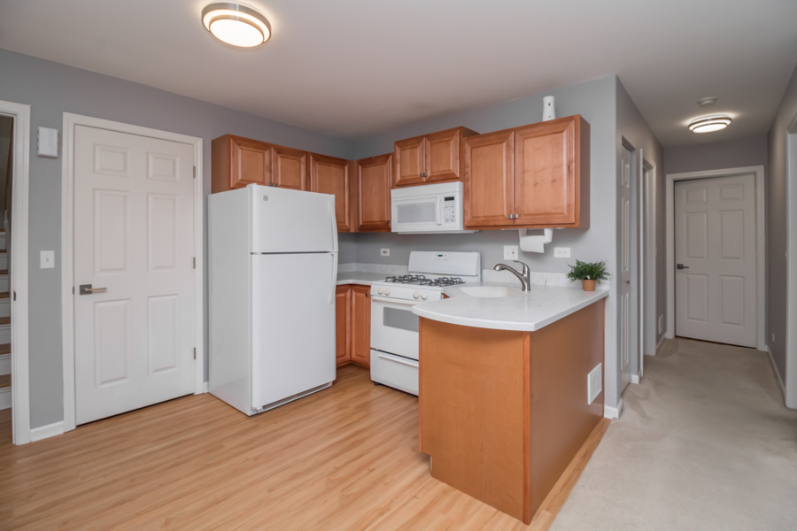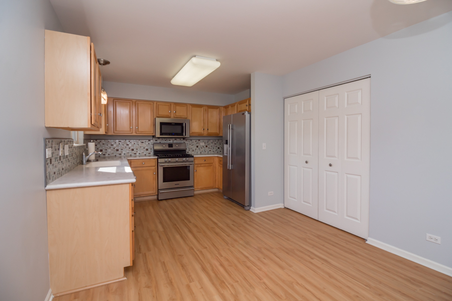 Welcome to 1040 Fairway Drive in Woodland Green! Nestled on a quiet cul-de-sac with scenic golf course views, this beautifully updated 2-bedroom, 2.5-bath townhome offers the perfect blend of comfort and design. Step into the spacious main living area featuring soaring vaulted ceilings, custom built-ins, and a cozy fireplace-ideal for relaxing or entertaining. The kitchen boasts Corian countertops, a generous pantry, newer stainless steel appliances, and easy-care vinyl plank flooring. A separate dining area just off the kitchen provides a great space for meals and gatherings. The large primary suite impresses with vaulted ceilings, two closets (including a large walk-in), and a spa-like en-suite bath with a whirlpool tub, separate shower, and dual vanities. Downstairs, the walk-out basement offers excellent in-law potential with a full SECOND kitchen, full bathroom, bedroom, laundry room with newer washer/dryer and direct access to the two car garage. The bright family room space opens to a newer concrete patio with tranquil golf course views. Don’t miss your chance to own this exceptional property in a prime location, just minutes from shopping, dining, the Metra train, and Chain O’ Lakes State Park.