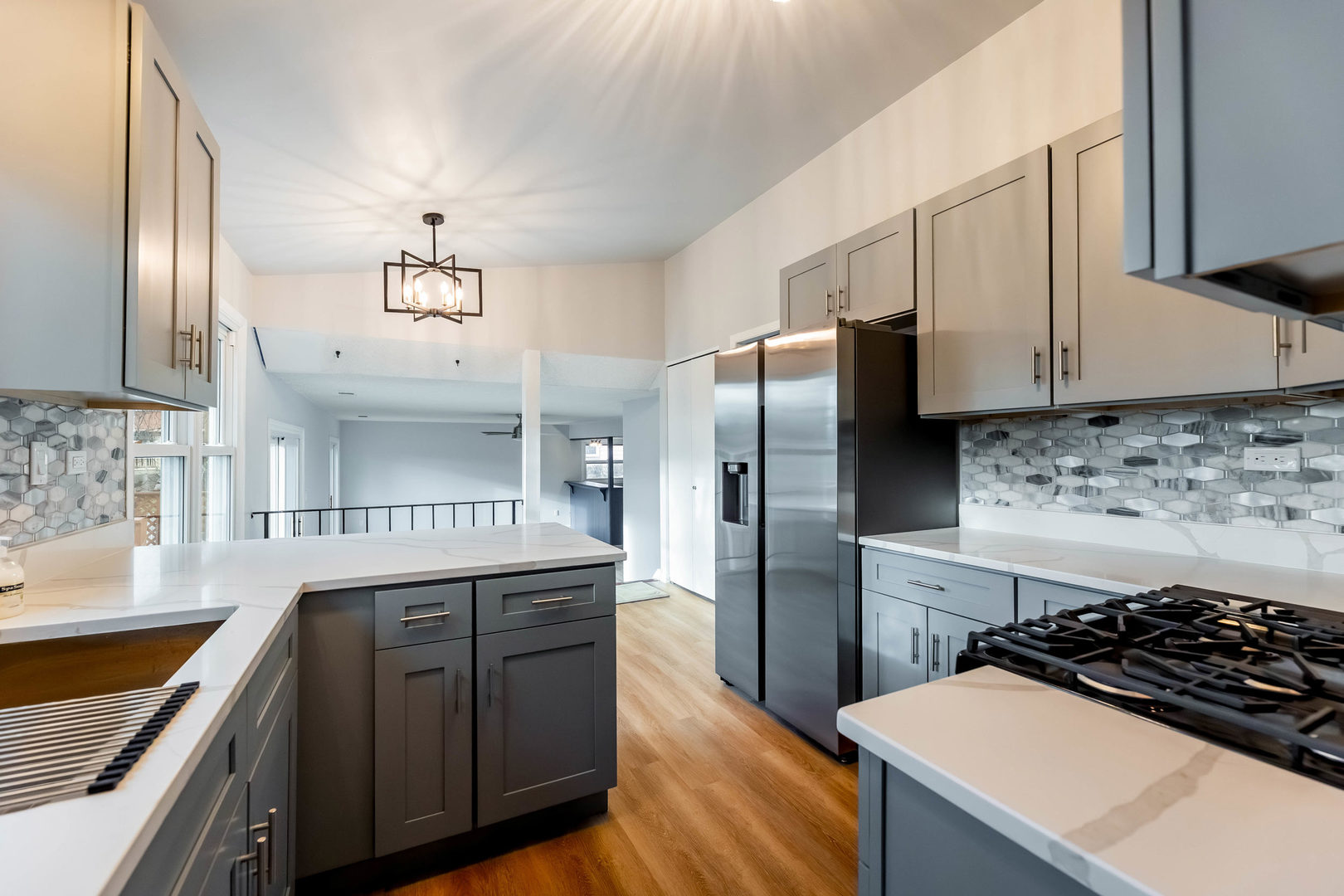Beautifully Renovated Split-Level on a Quiet Cul-de-Sac! Welcome to this stunning 3-bedroom, 2.5-bath home featuring a modern open layout and stylish updates throughout. The heart of the home is a brand-new kitchen with contemporary finishes, complemented by new flooring and a spacious dining area perfect for entertaining. Retreat upstairs to your private primary suite, complete with a luxurious en-suite bath and walk-in closet. The lower level offers a large bonus room with a built-in bar/smoothie area and sink ideal for hosting gatherings or relaxing after a long day. Additional highlights include a new garage door, ample storage, and a desirable cul-de-sac location that offers privacy and minimal traffic. This home seamlessly combines comfort, function, and modern design truly move-in ready!