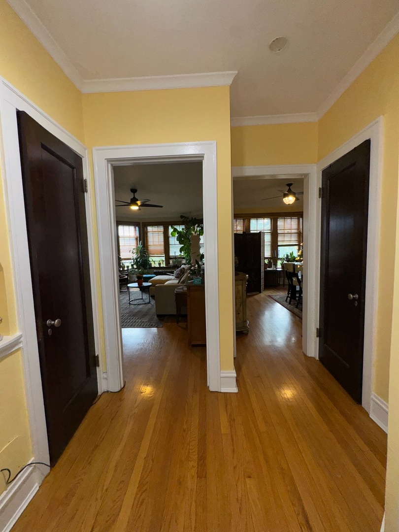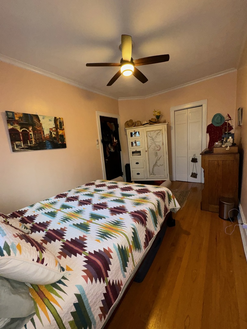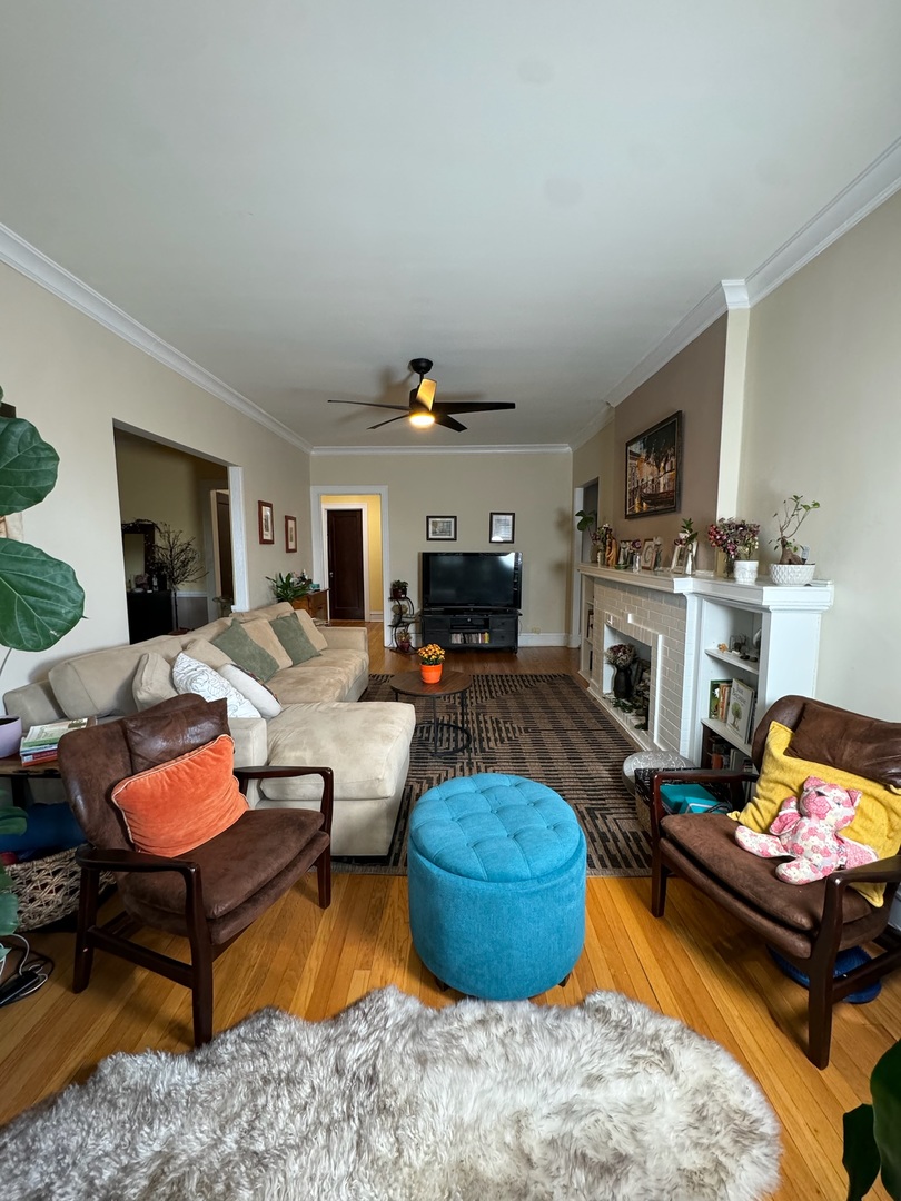 Beautiful vintage condo in the heart of Oak Park! This charming unit is full of character and timeless details featuring gleaming hardwood floors, solid wood doors, a decorative fireplace with built-in bookcases, and elegant crown moulding. The kitchen offers tall cabinetry, stainless steel appliances, and a walk-in pantry for extra storage. Enjoy very spacious rooms, generous closet space, and a bright, inviting layout. This pet-friendly building includes a lovely courtyard, free laundry, and private storage in the basement. Conveniently located near shopping, restaurants, and public transportation a true Oak Park gem!